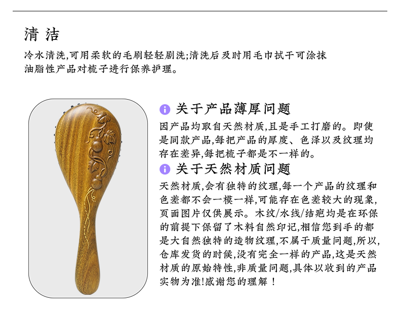 周广胜天然沉贵宝木合木按摩木梳子女士长发便携顺发护发蓬发梳