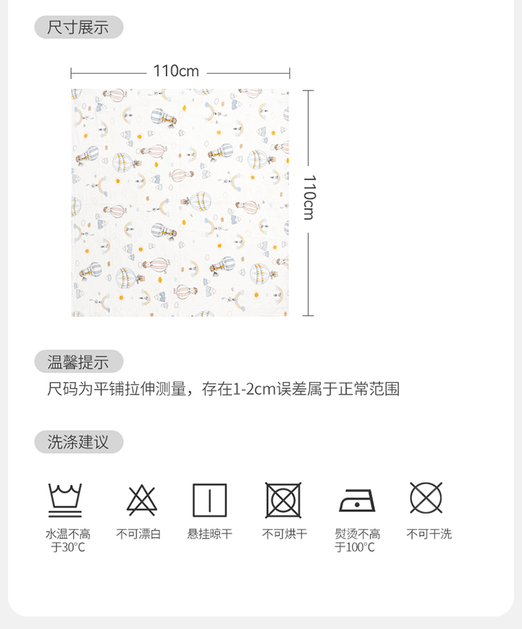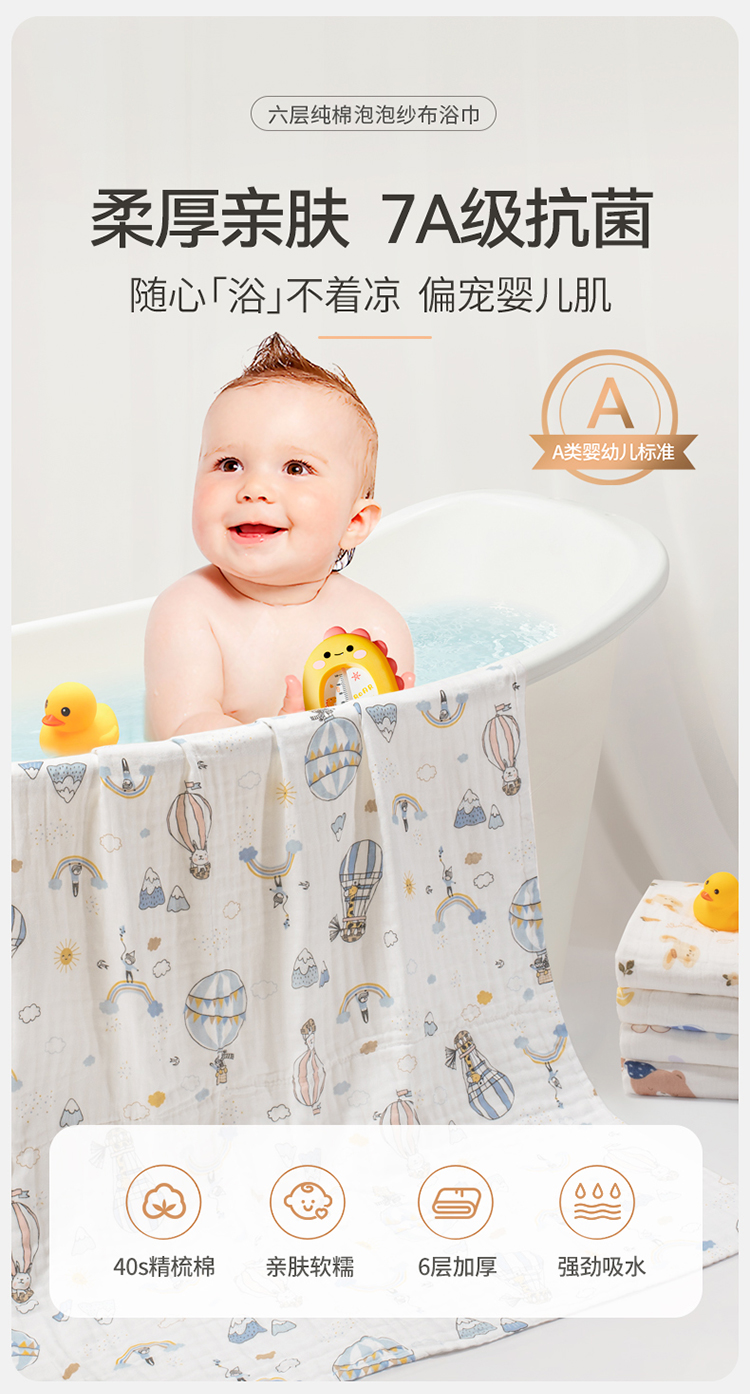 【💥买一送一选2件】婴幼儿纯棉纱布浴巾7A抗菌110*110cm