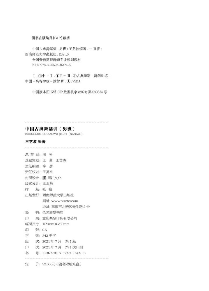 *书名:中国古典舞基训(男班) | *ISBN:978-7-5697-0209-5 |