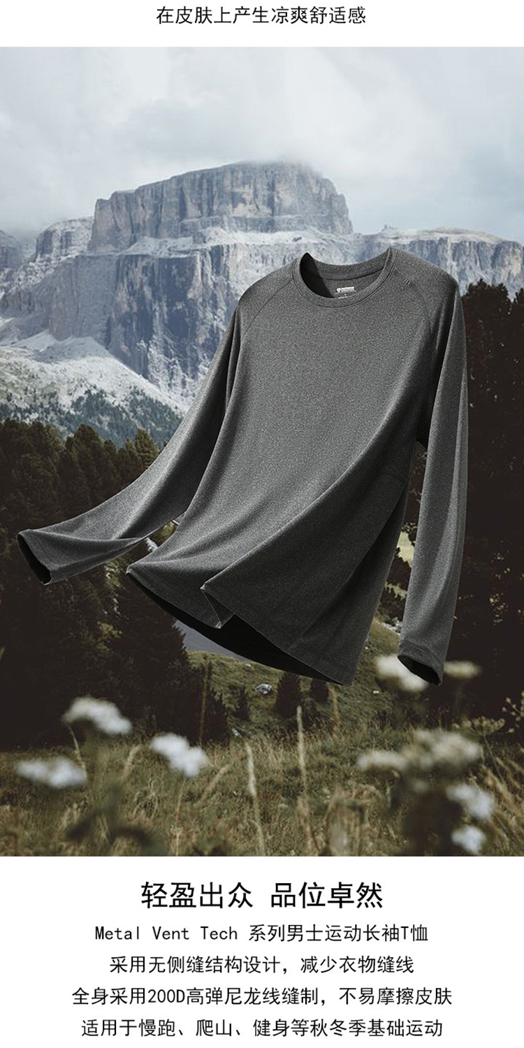 【无骨缝制 磨毛暖皮 腋下散热孔】PATERND专柜正品 Metal Vent Tech男士运动磨绒长袖T恤#2828(下单3-7天发货)
