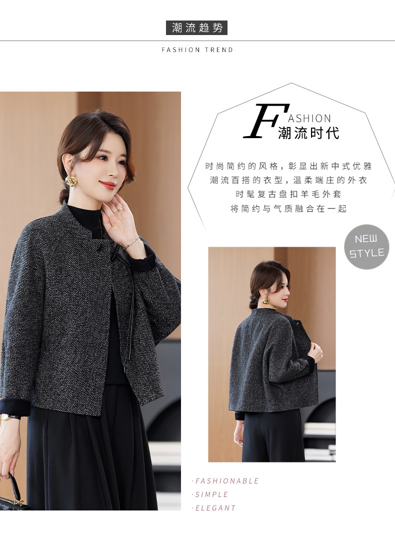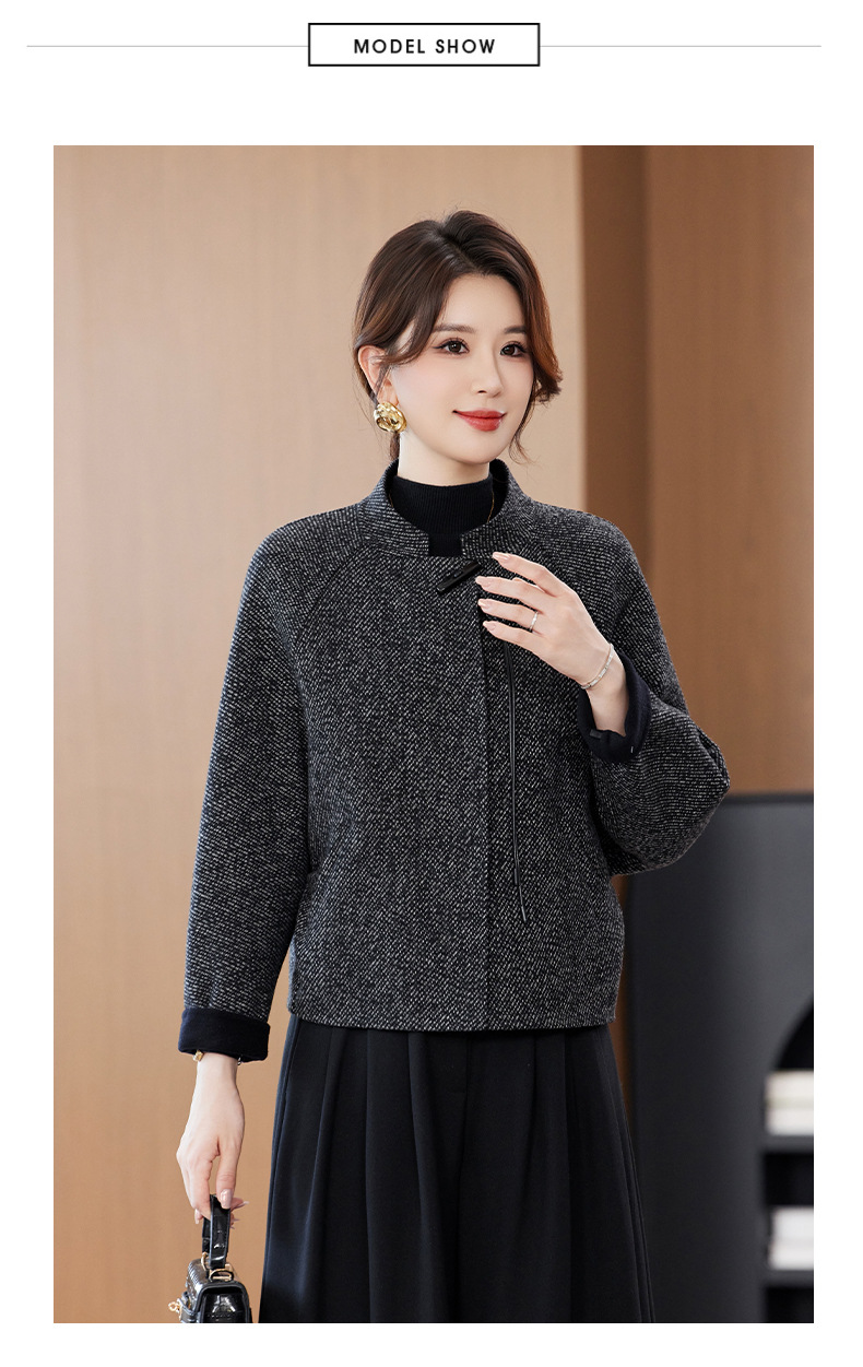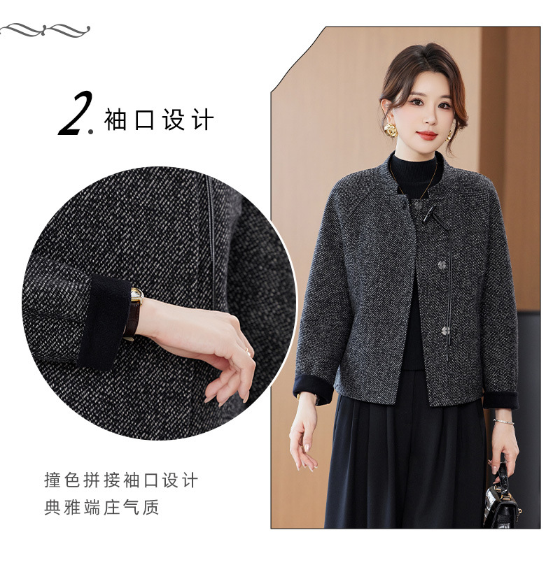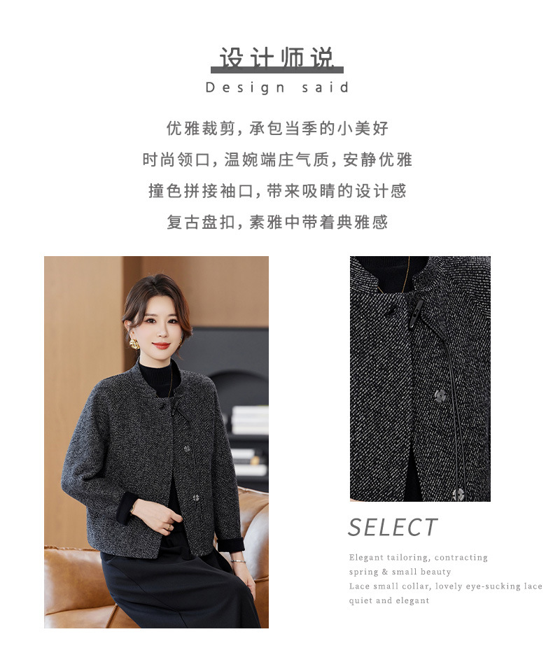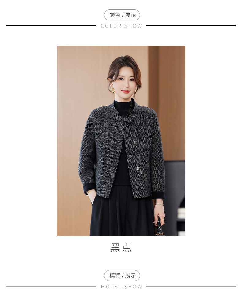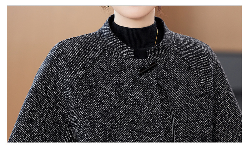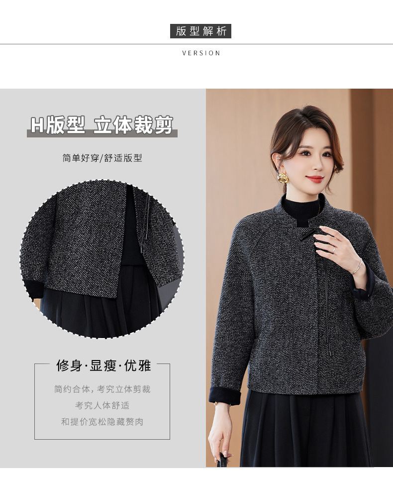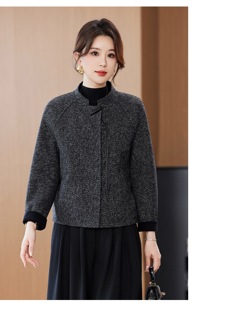OSL 2501LN双面尼羊毛大衣小个子立领气质人字纹毛呢外套