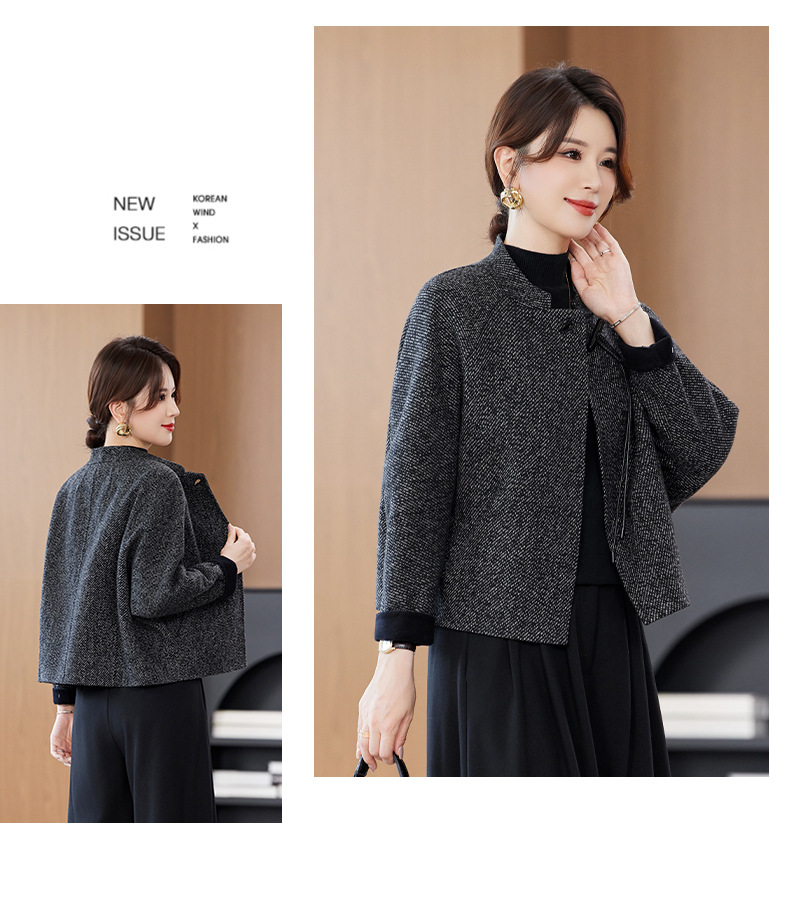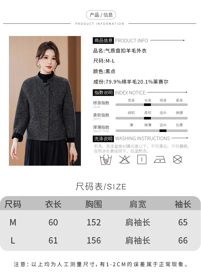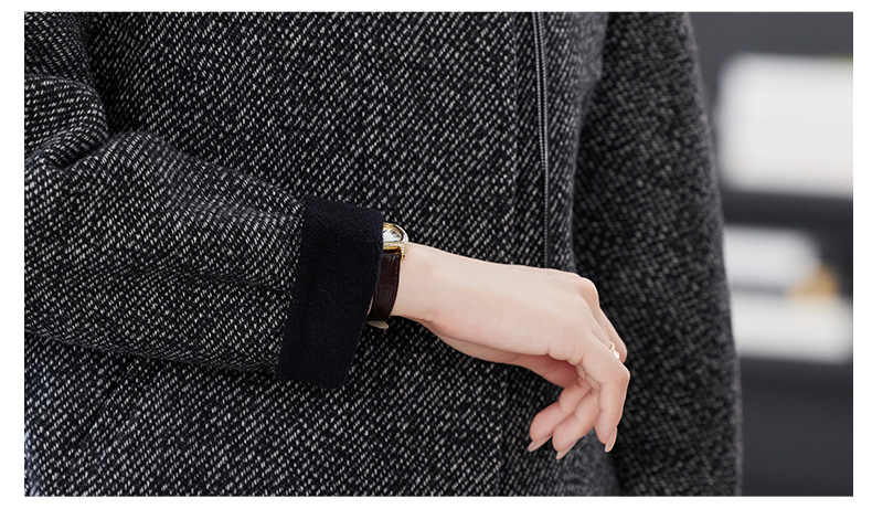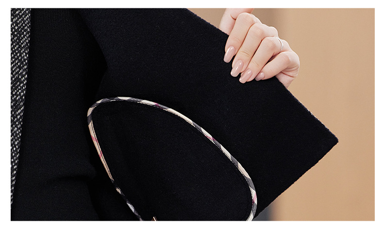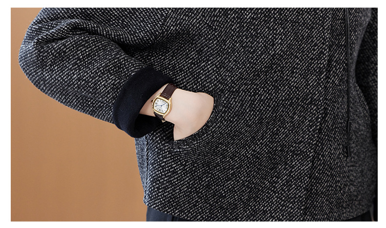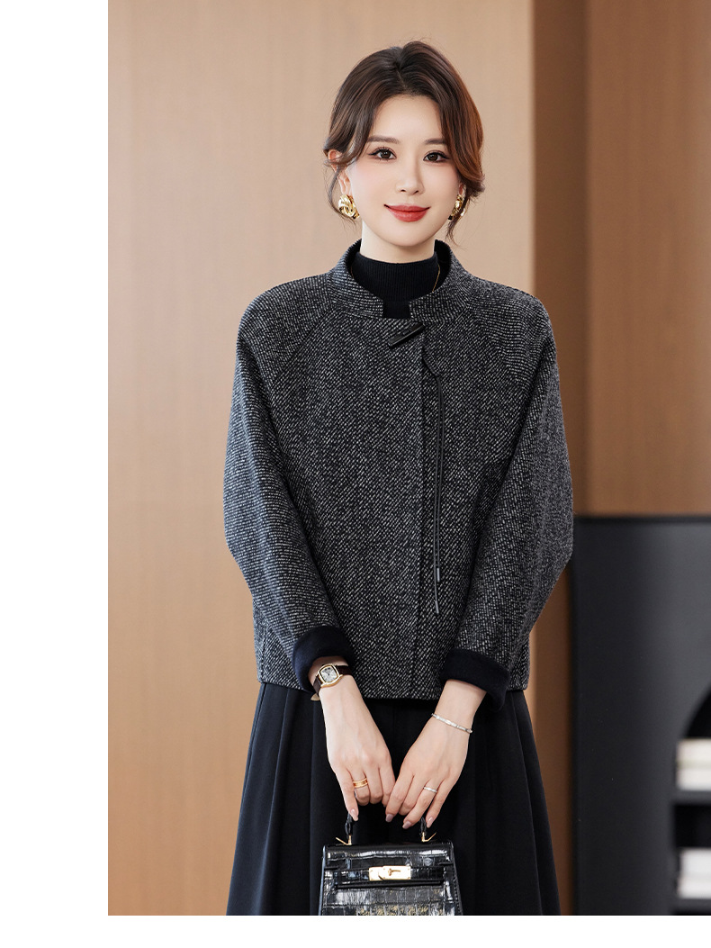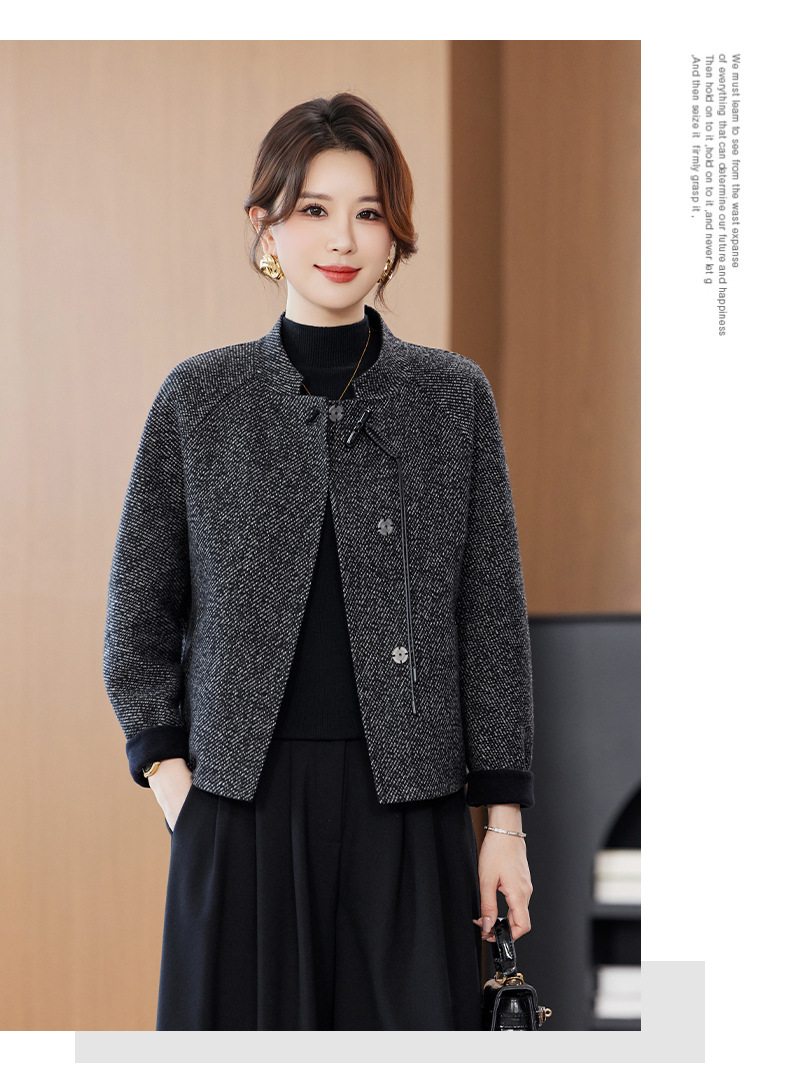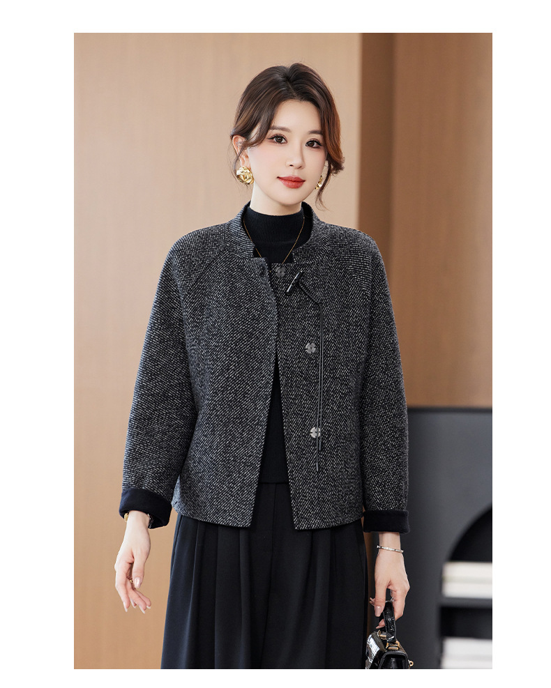 OSL 2501LN双面尼羊毛大衣小个子立领气质人字纹毛呢外套
