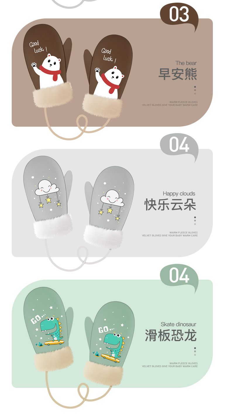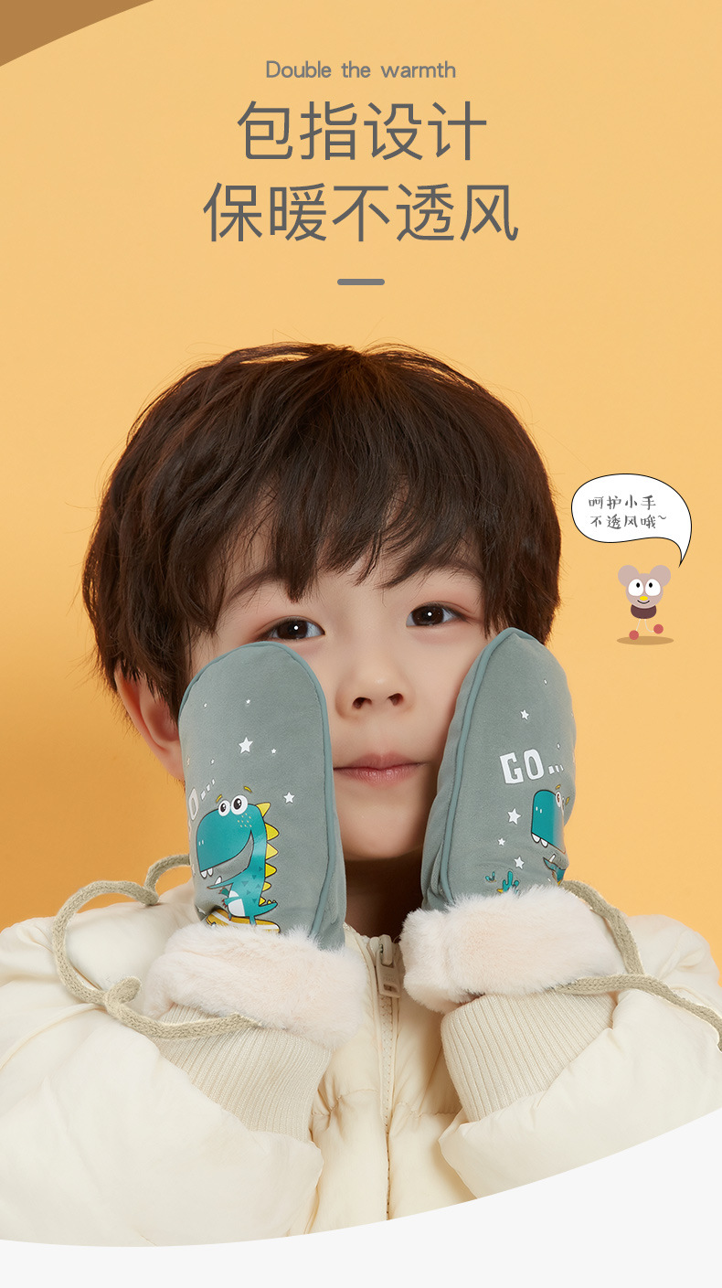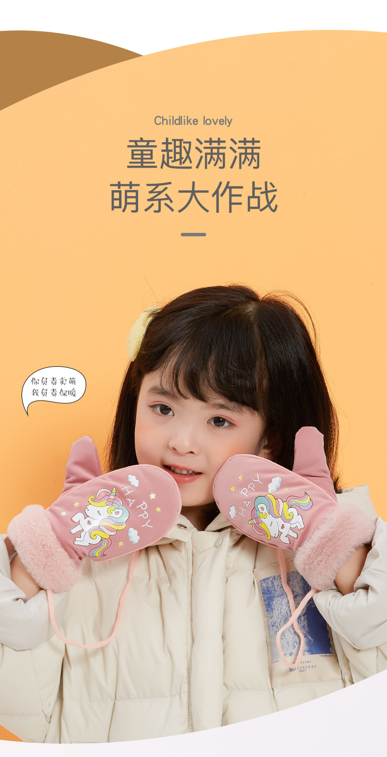 【亲肤保暖!加绒加厚儿童手套】户外防风防冻,挂绳防丢保护!立体卡通图案设计,萌趣可爱到犯规!全指3-12岁冬季男童女童宝宝手套-QQ