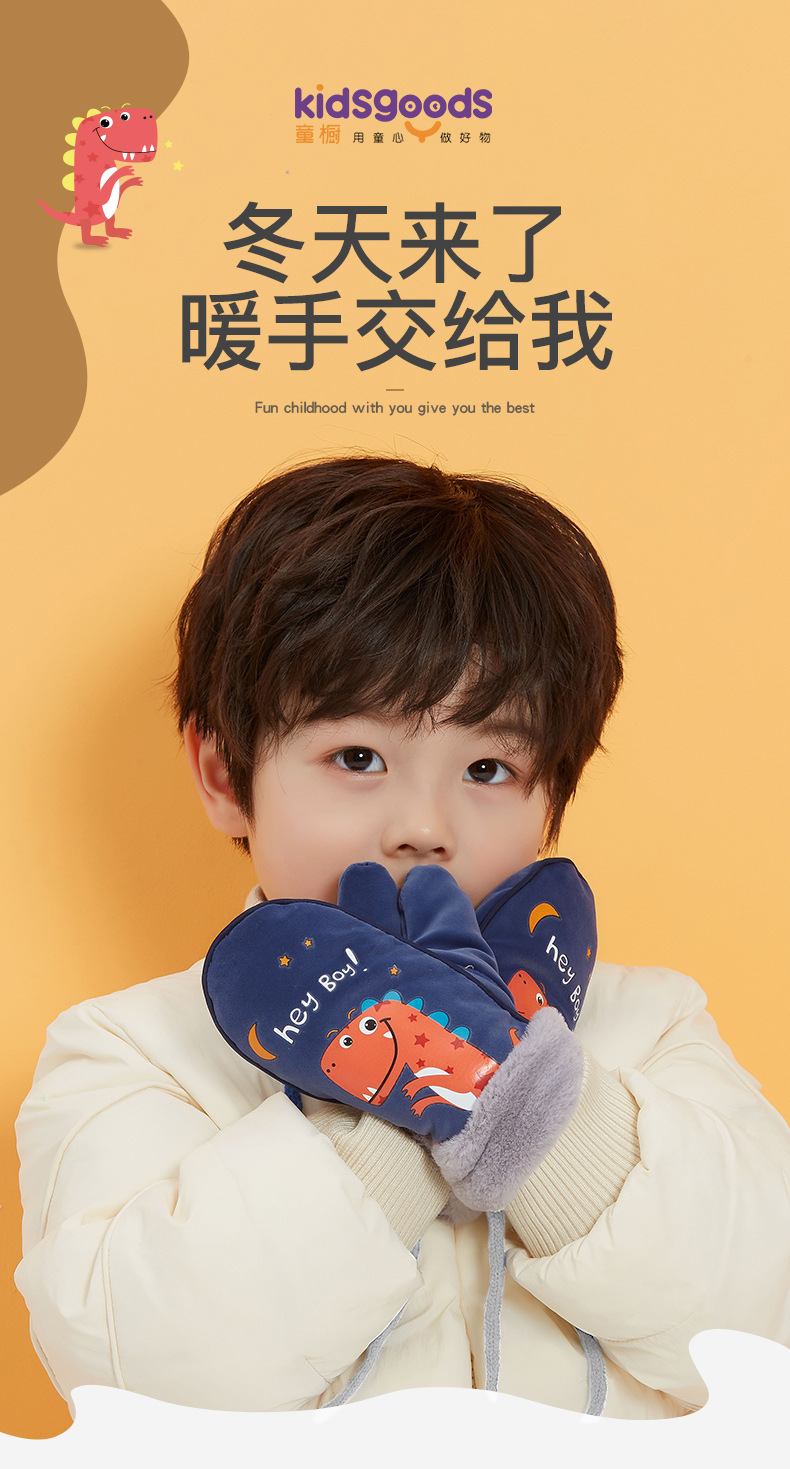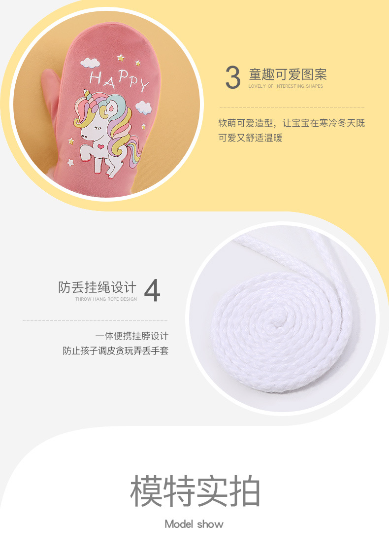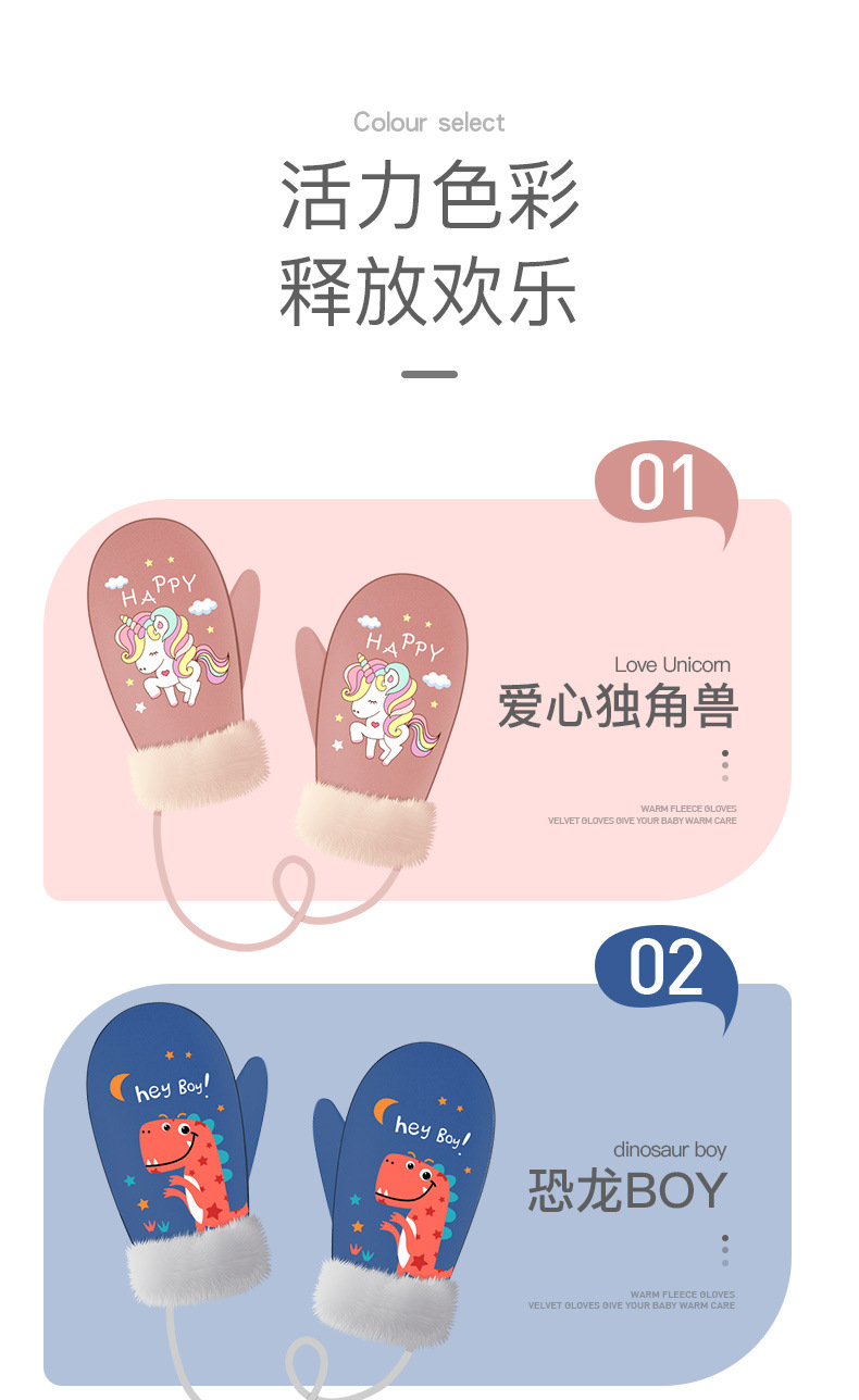 【亲肤保暖!加绒加厚儿童手套】户外防风防冻,挂绳防丢保护!立体卡通图案设计,萌趣可爱到犯规!全指3-12岁冬季男童女童宝宝手套-QQ