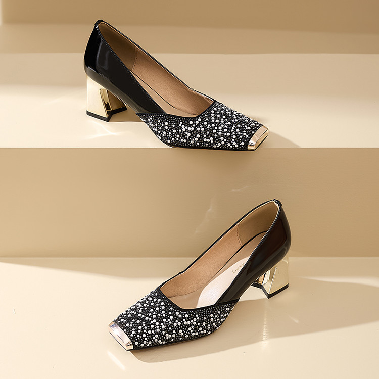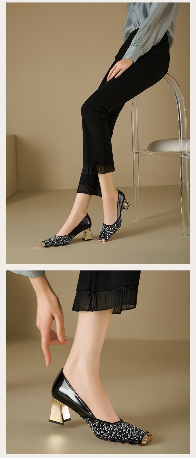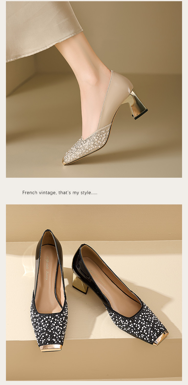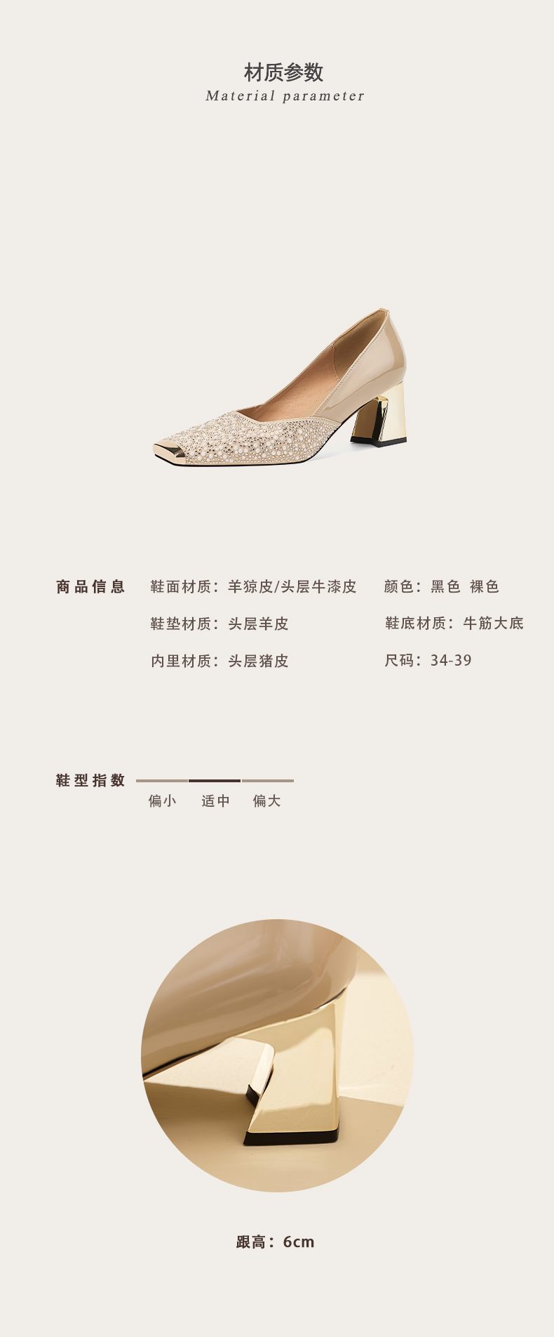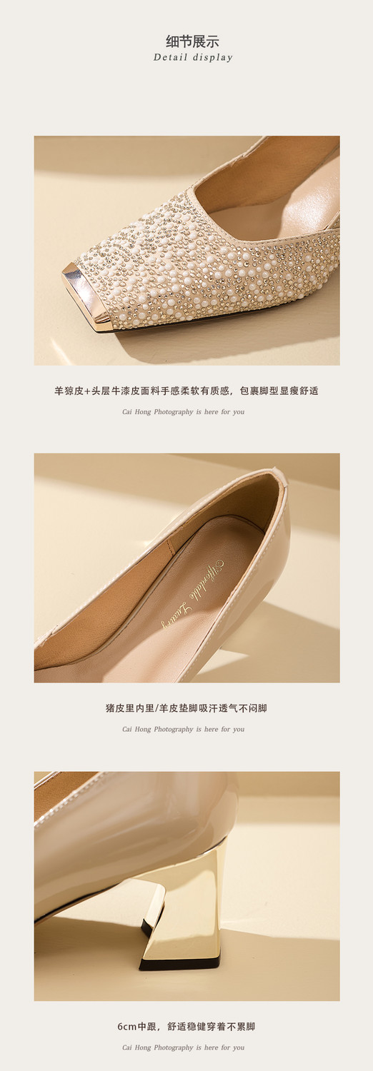 【预售5天】法式优雅水钻浅口玛丽珍单鞋通勤气质防踢金属方头6cm粗高跟鞋女MBJR&A758