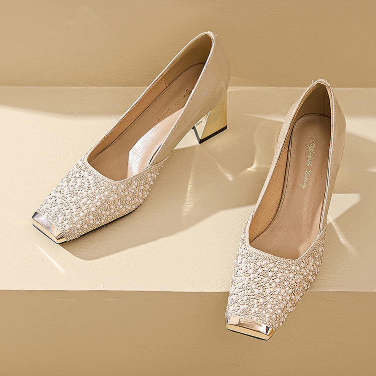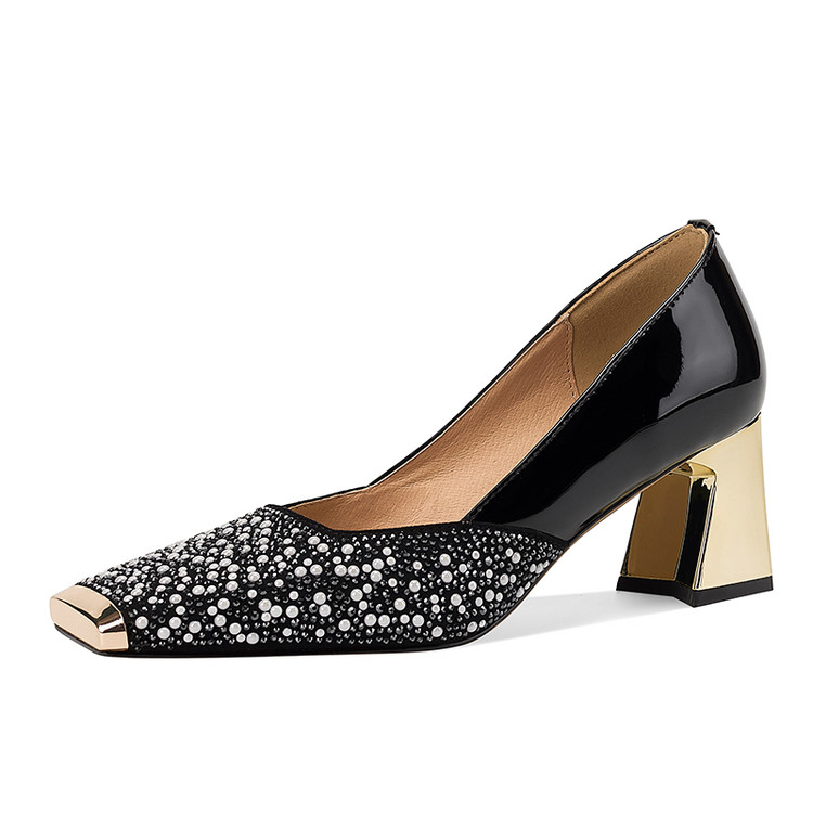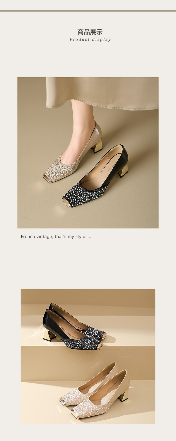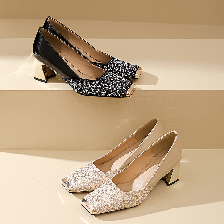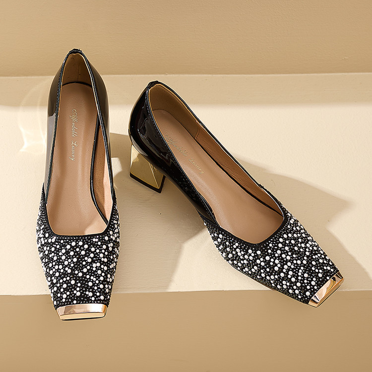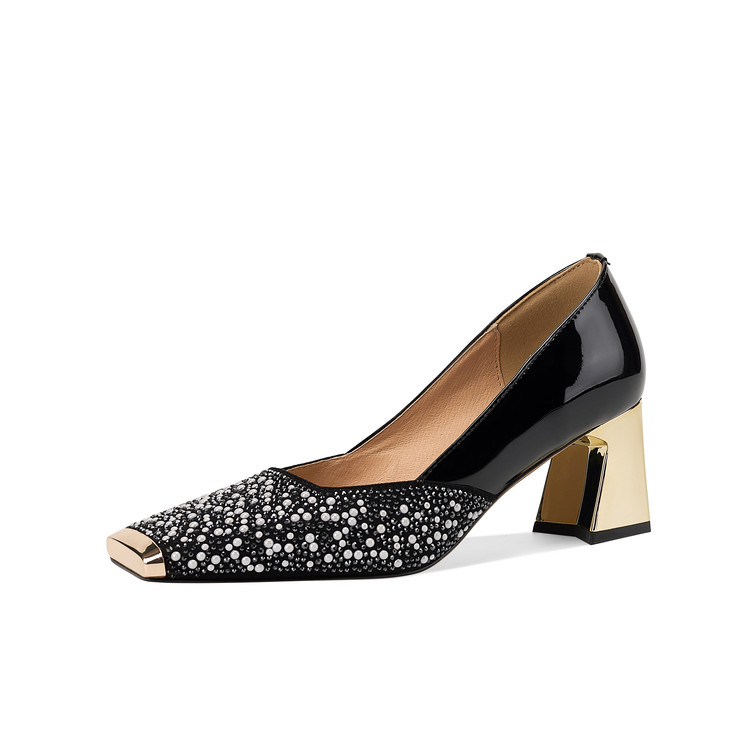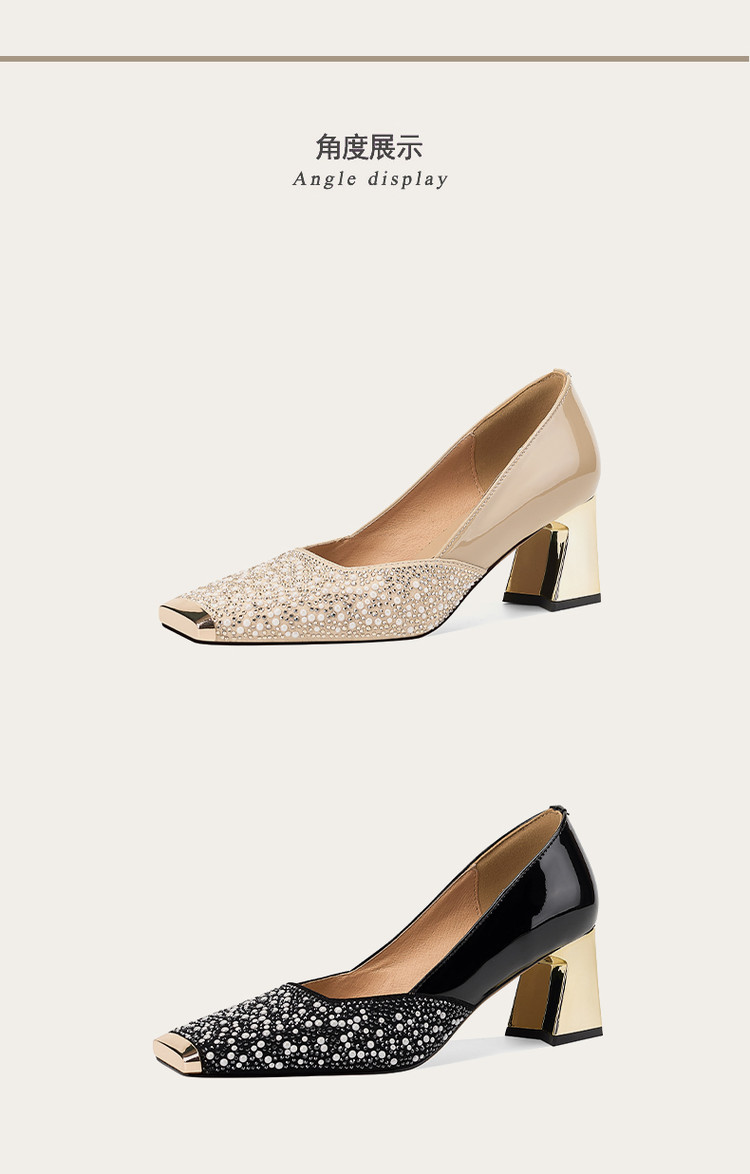 【预售5天】法式优雅水钻浅口玛丽珍单鞋通勤气质防踢金属方头6cm粗高跟鞋女MBJR&A758