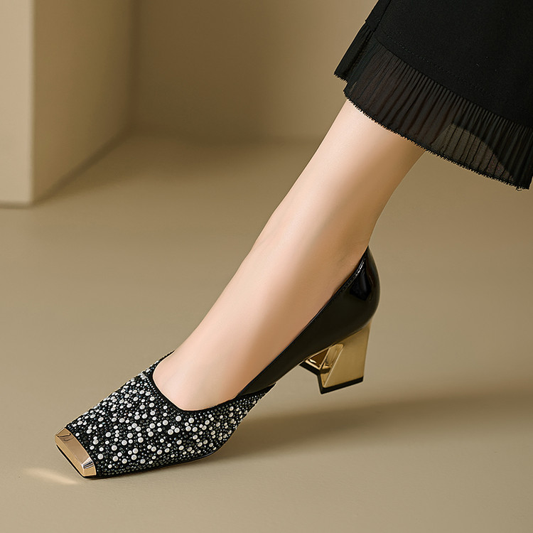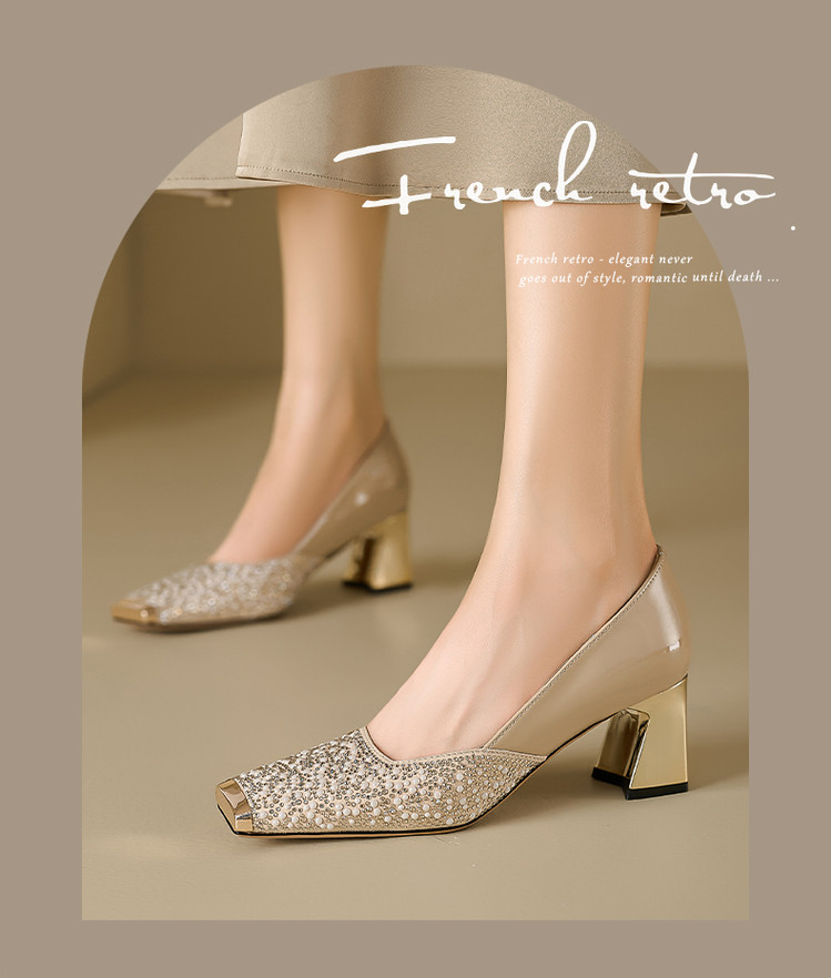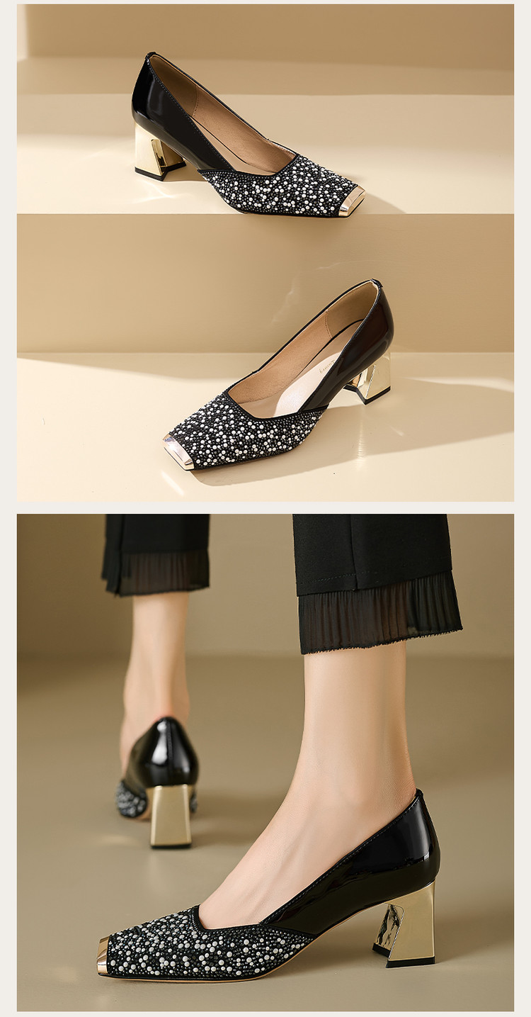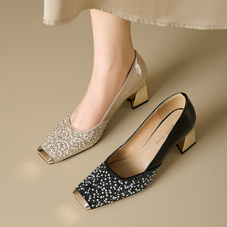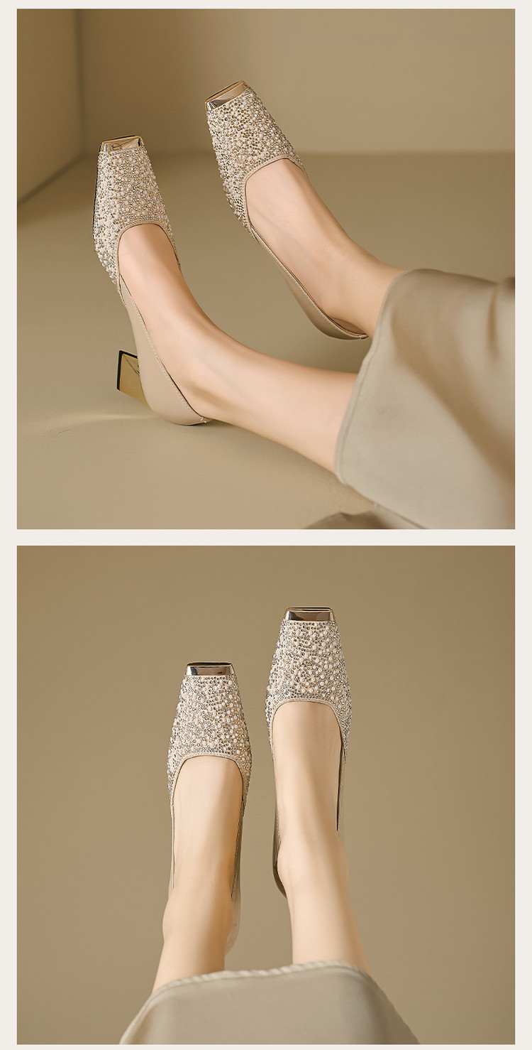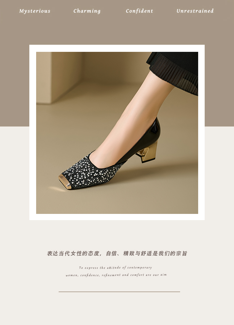 【预售5天】法式优雅水钻浅口玛丽珍单鞋通勤气质防踢金属方头6cm粗高跟鞋女MBJR&A758
