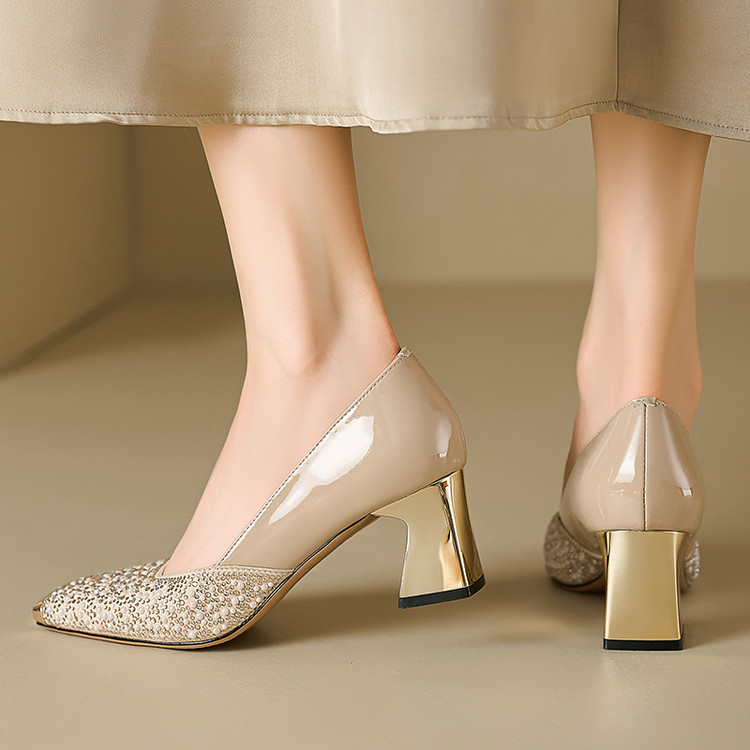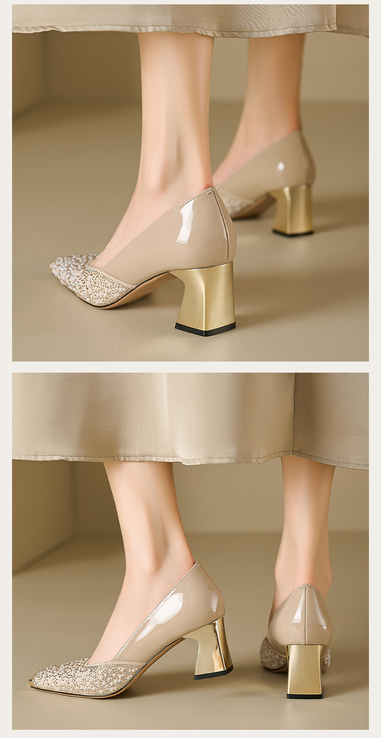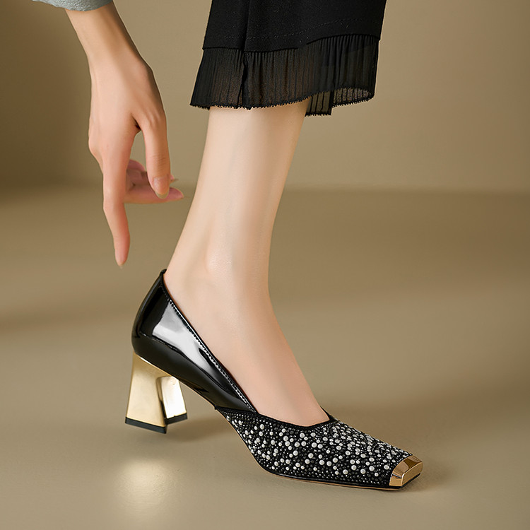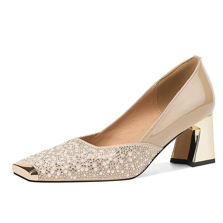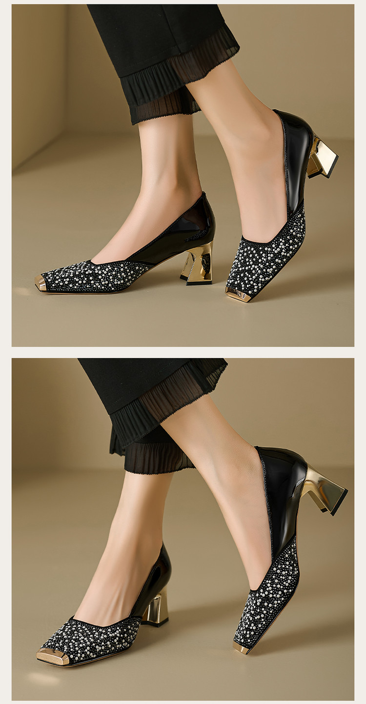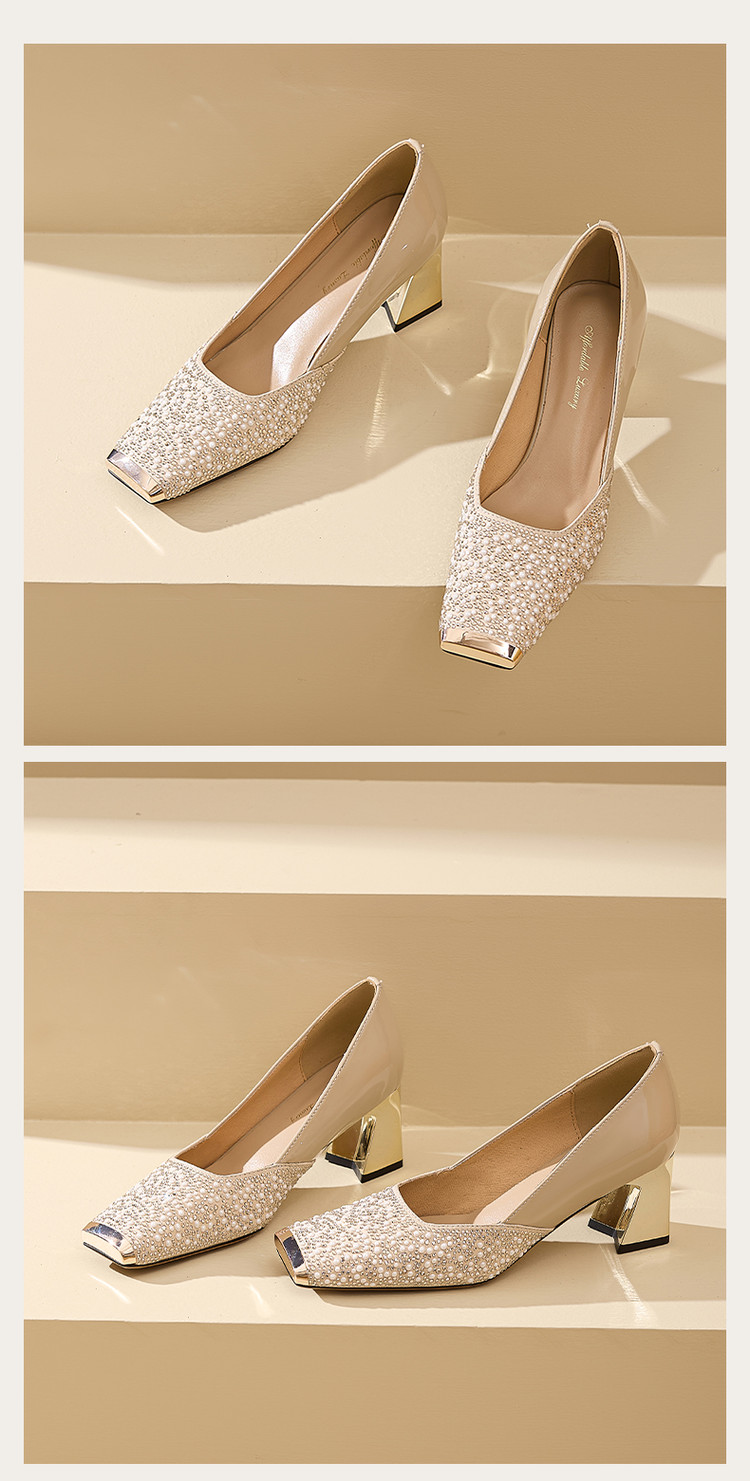 【预售5天】法式优雅水钻浅口玛丽珍单鞋通勤气质防踢金属方头6cm粗高跟鞋女MBJR&A758