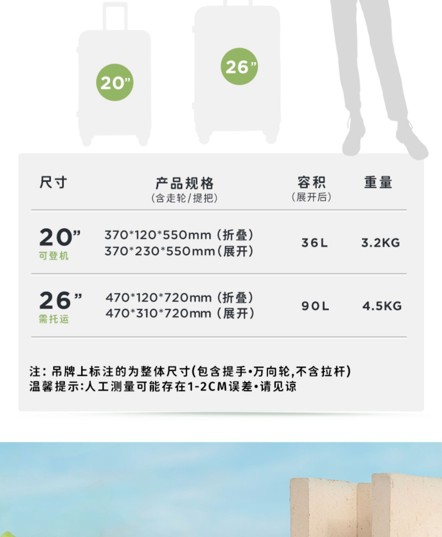 CONWOOD小木 可折叠旅行箱万向轮密码行李箱拉杆箱登机箱