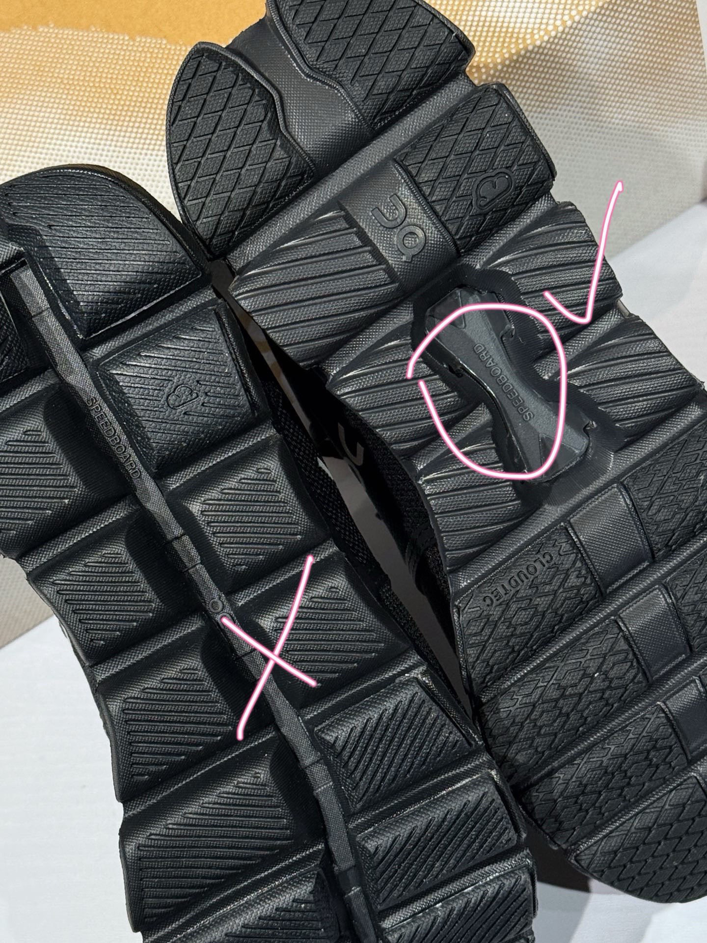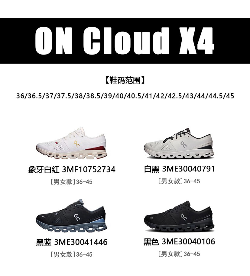 市面上的软塌塌皱巴巴没有光泽,编织密度也很小,鞋舌位置弹力布也和我们的不一样,我们用的是正儿八经的佳积布 没有明显的纹理!更光滑细腻亲肤代工原单On❗️大大大爆款𝐜𝐥𝐨𝐮𝐝 𝐱𝟒综训跑鞋