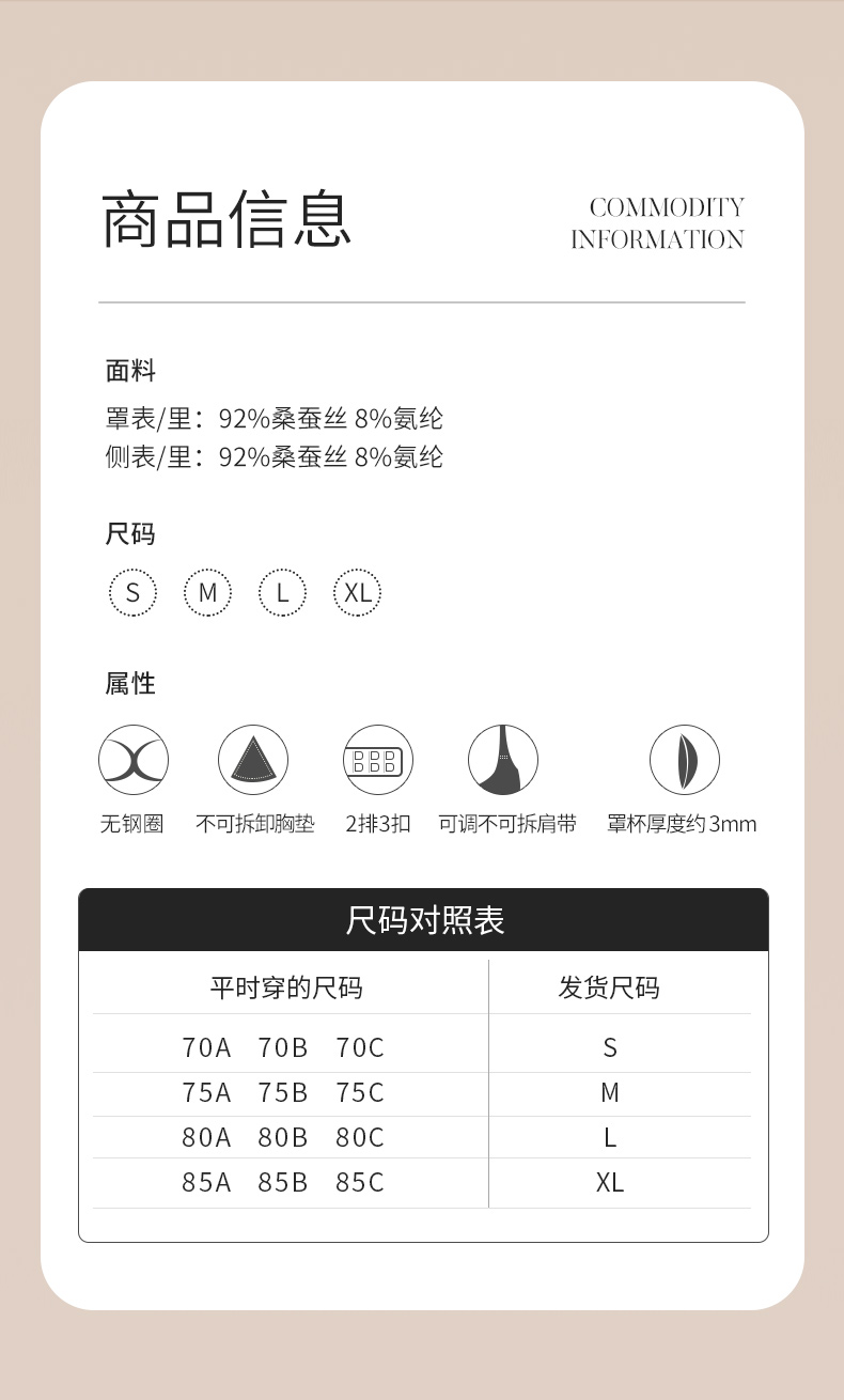 金三塔 女真丝缎面无钢圈内衣 NZFCC303