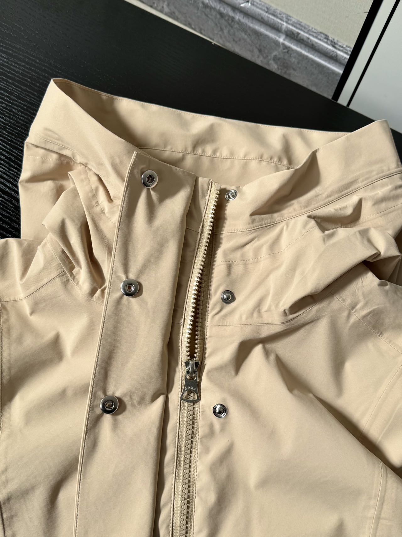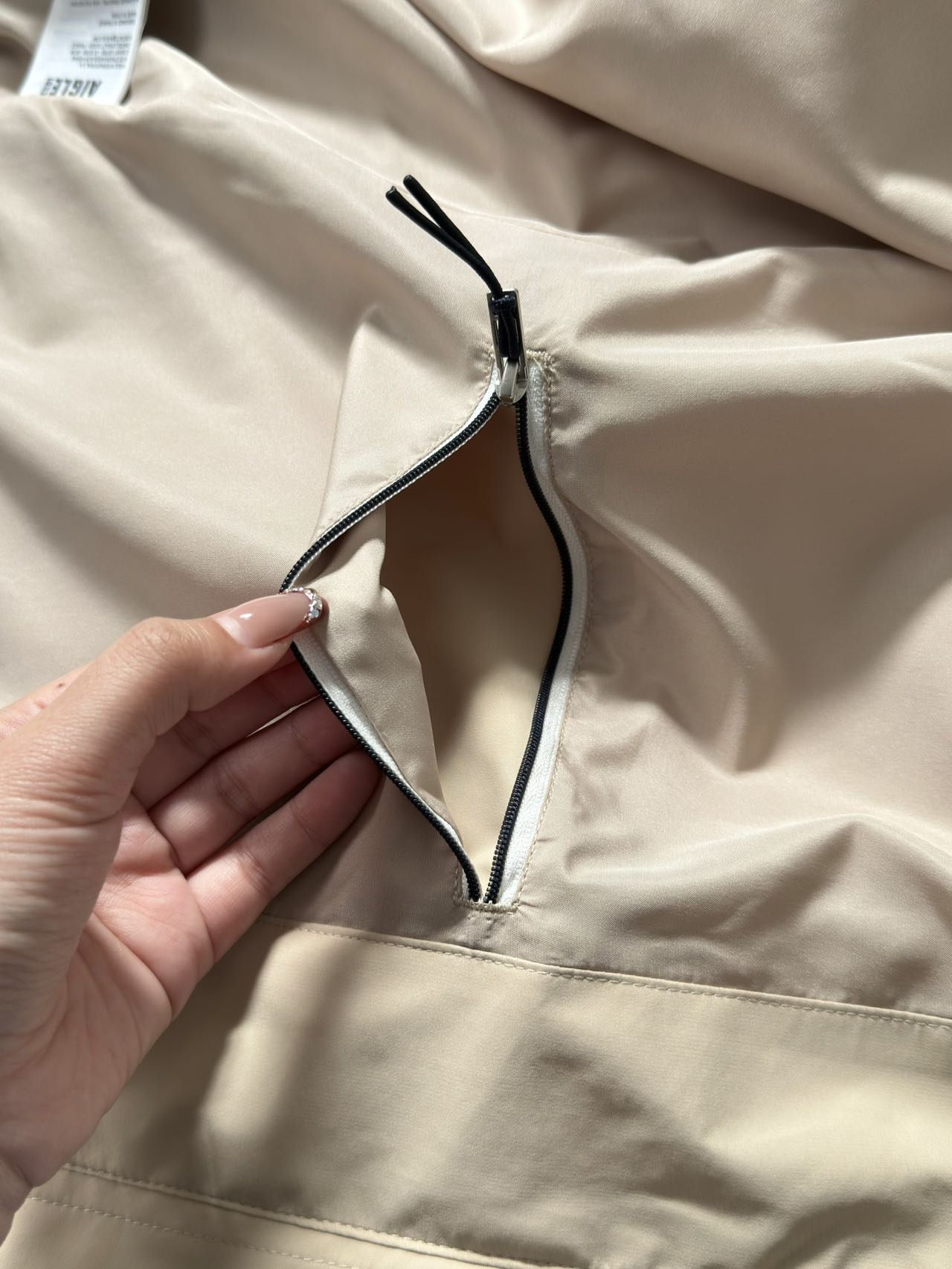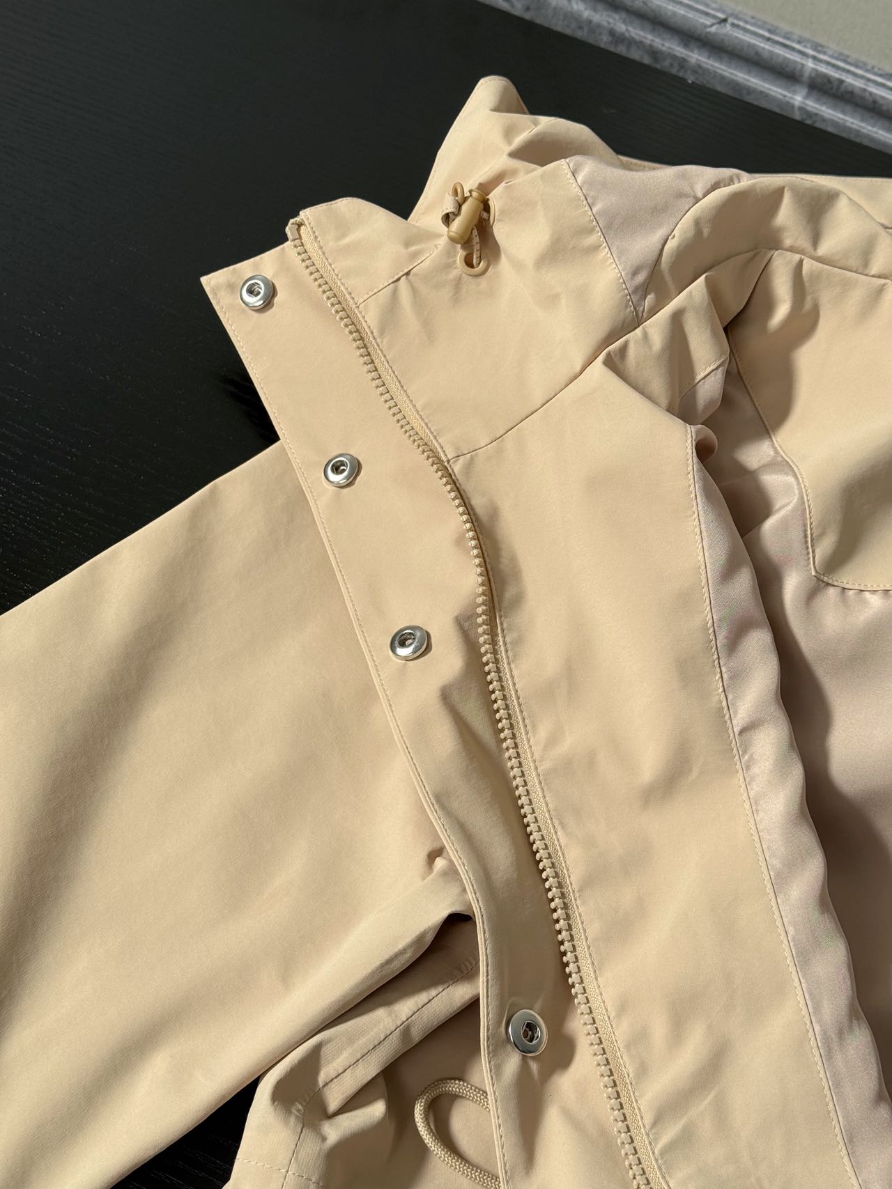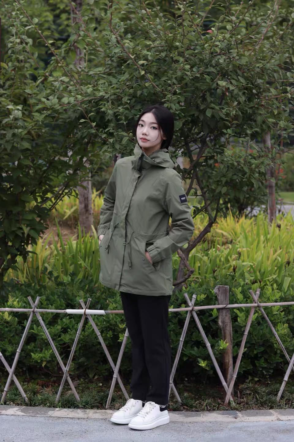 mtd面料超厉害 ,防风防水又透气, 鱼尾设计优雅灵动 活动自如 还能挡风雨 精致工艺品质超棒 让你美美的同时无惧天气变化 爱了爱了