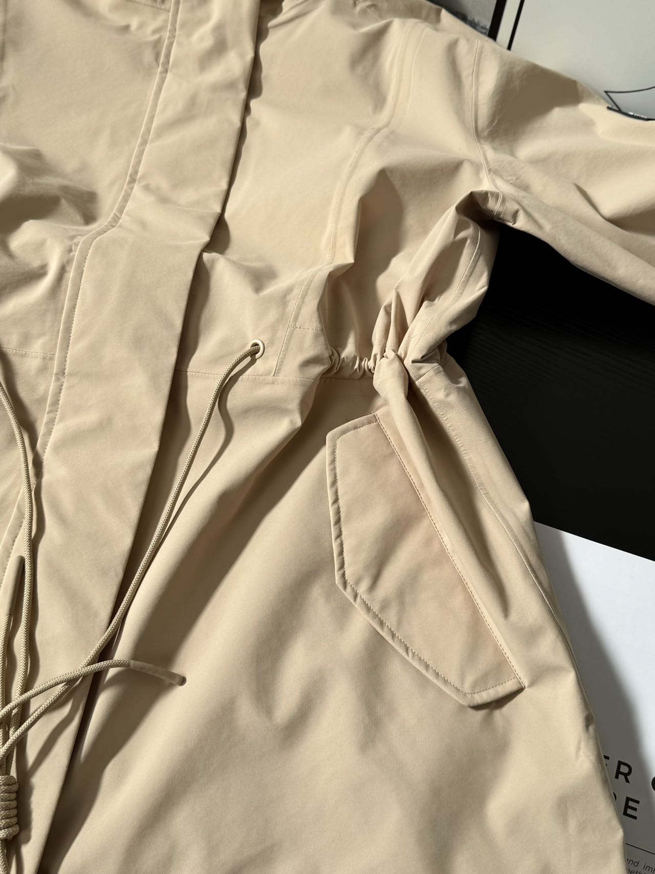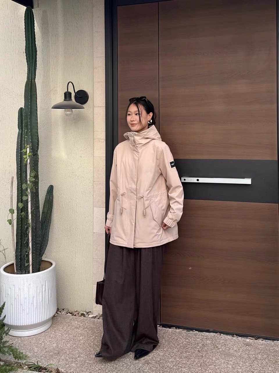 大地沙色是一个非常受欢迎的颜色。上身特别的能衬托出你高贵优雅的气质,这款风衣采用了自研的MTD面料,具有防风防雨和透气性好的特点。给人一种闲适优雅中透着复古英伦贵族气质的感觉,如同老旧胶片中缓缓流淌的时光,沉淀着故事,诉说着风情。这款风衣的版型设计为窄版正肩,抽绳后可以很合身,适合各种身形的人穿着。无论是日常通勤还是户外徒步,都能轻松驾驭,实用