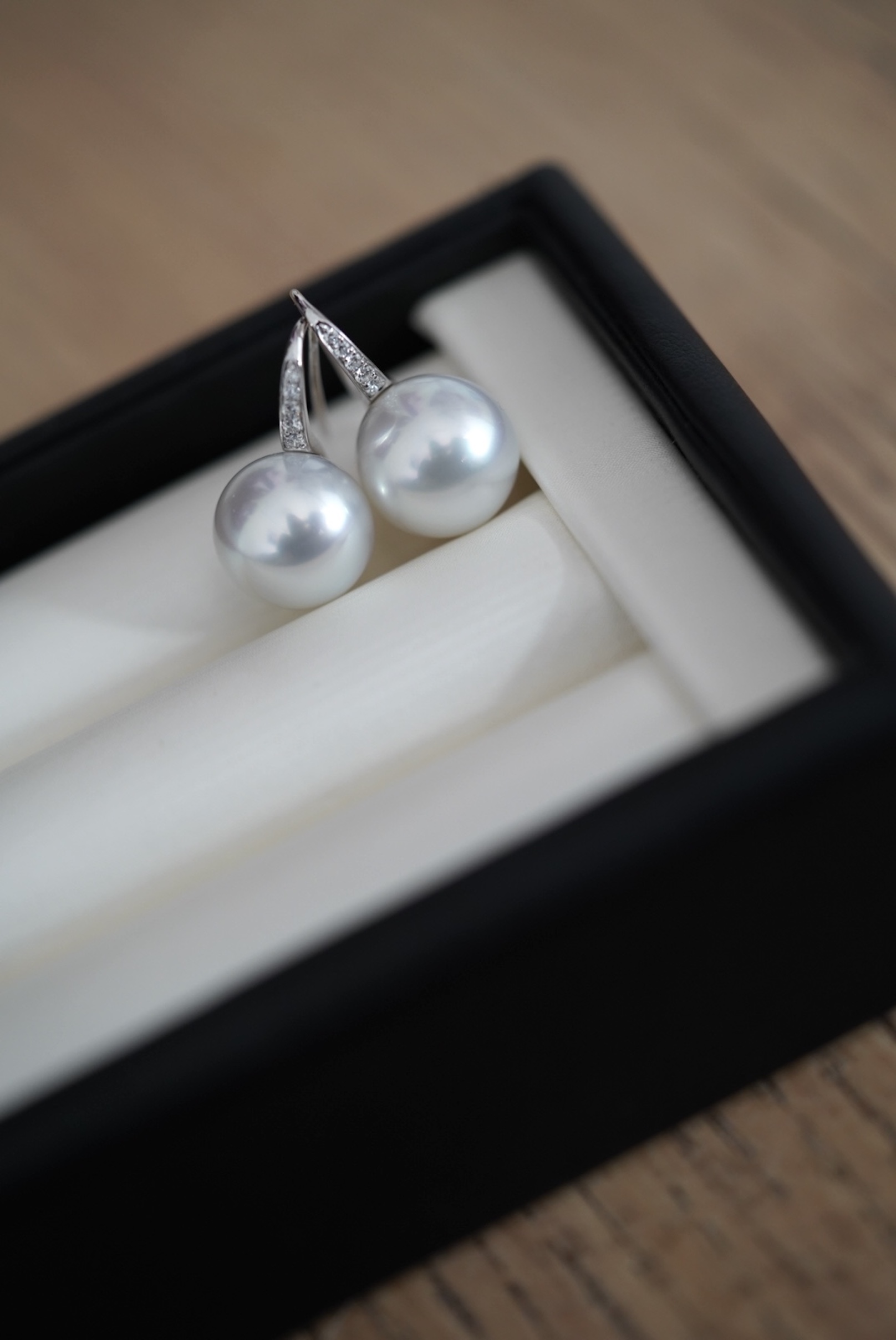 澳白耳饰「高跟鞋」这对珠是真澳白啊接近13mm 的尺寸 极强极强光近正圆!被打动的是它的光泽11999🉐