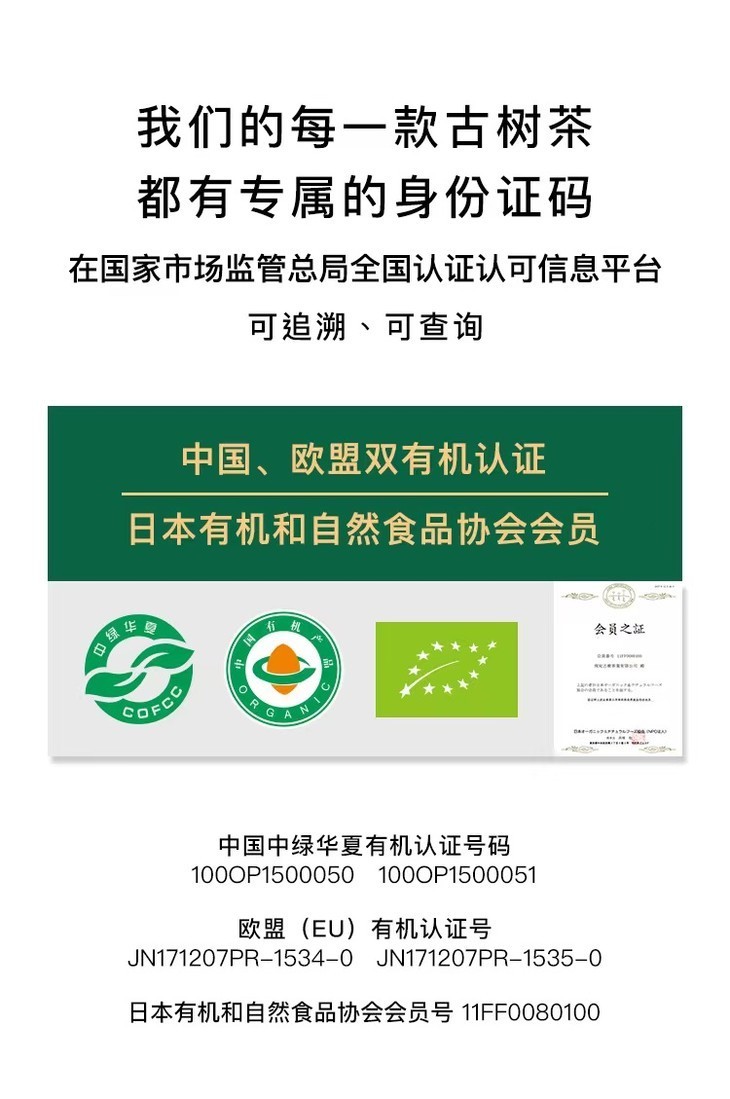 有机古树普洱熟茶、有机古树红茶两款可选。
