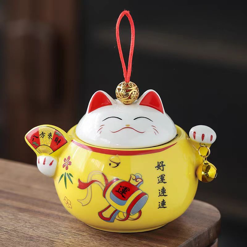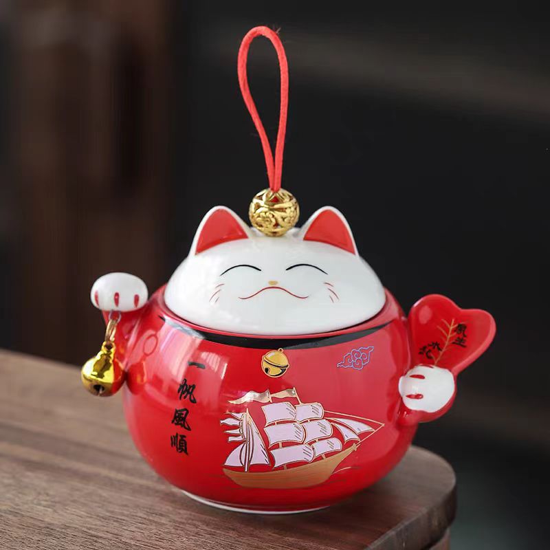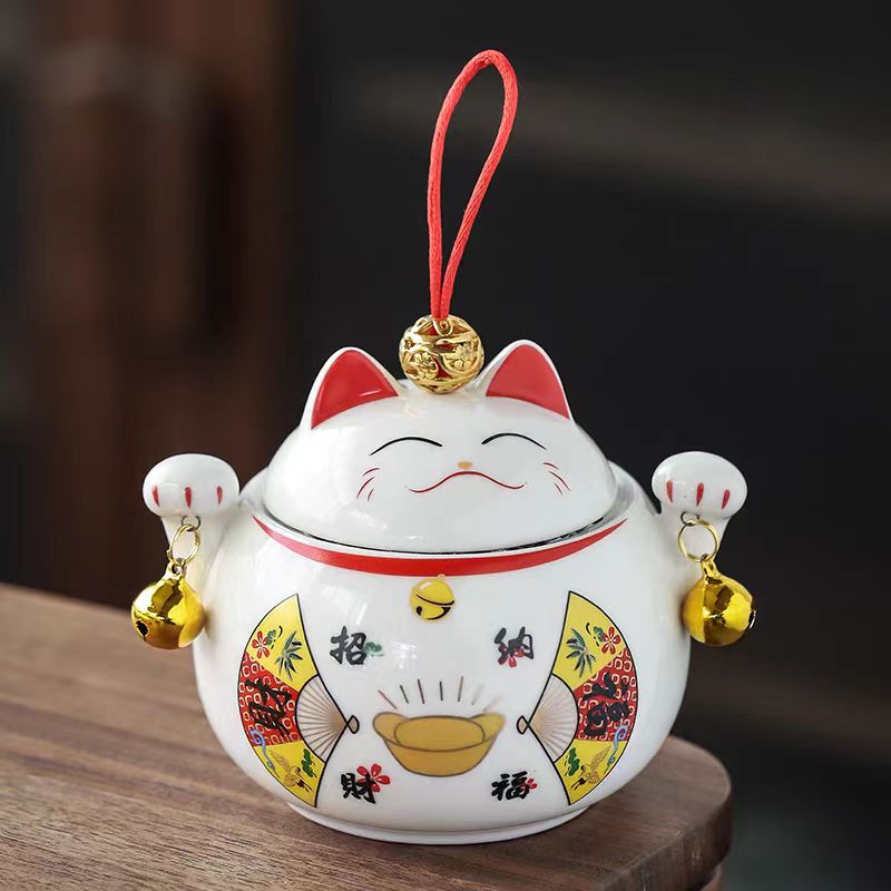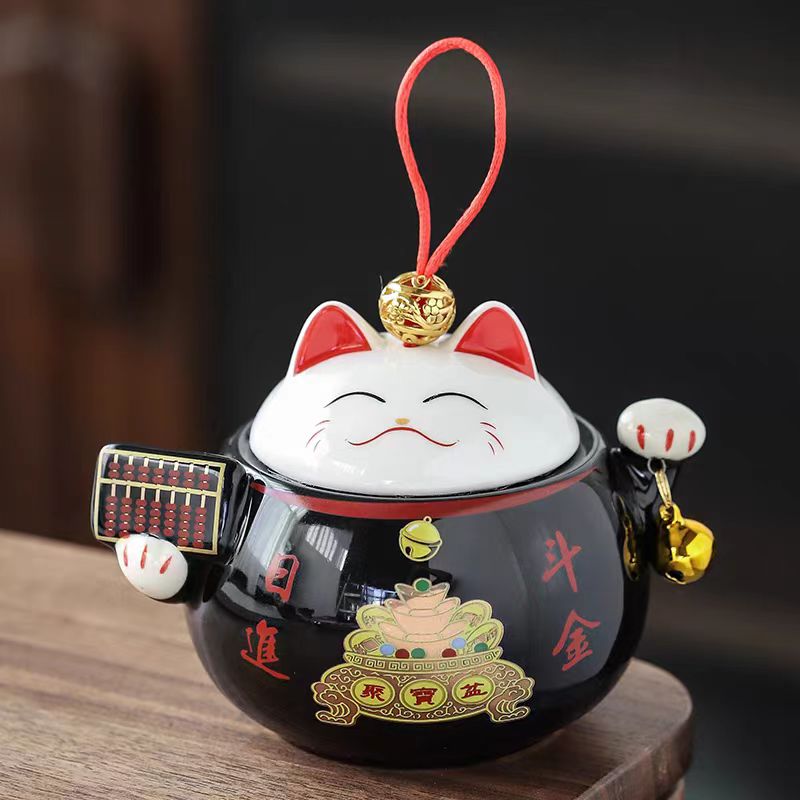 据说,最早的招财猫文字记录出自唐代段成式著《酉阳杂俎》,书中有载“猫洗面过耳则客至”,意思是猫儿洗脸时爪子举过耳朵便会有贵客到来,贵客就是珍贵的福缘和正缘。
