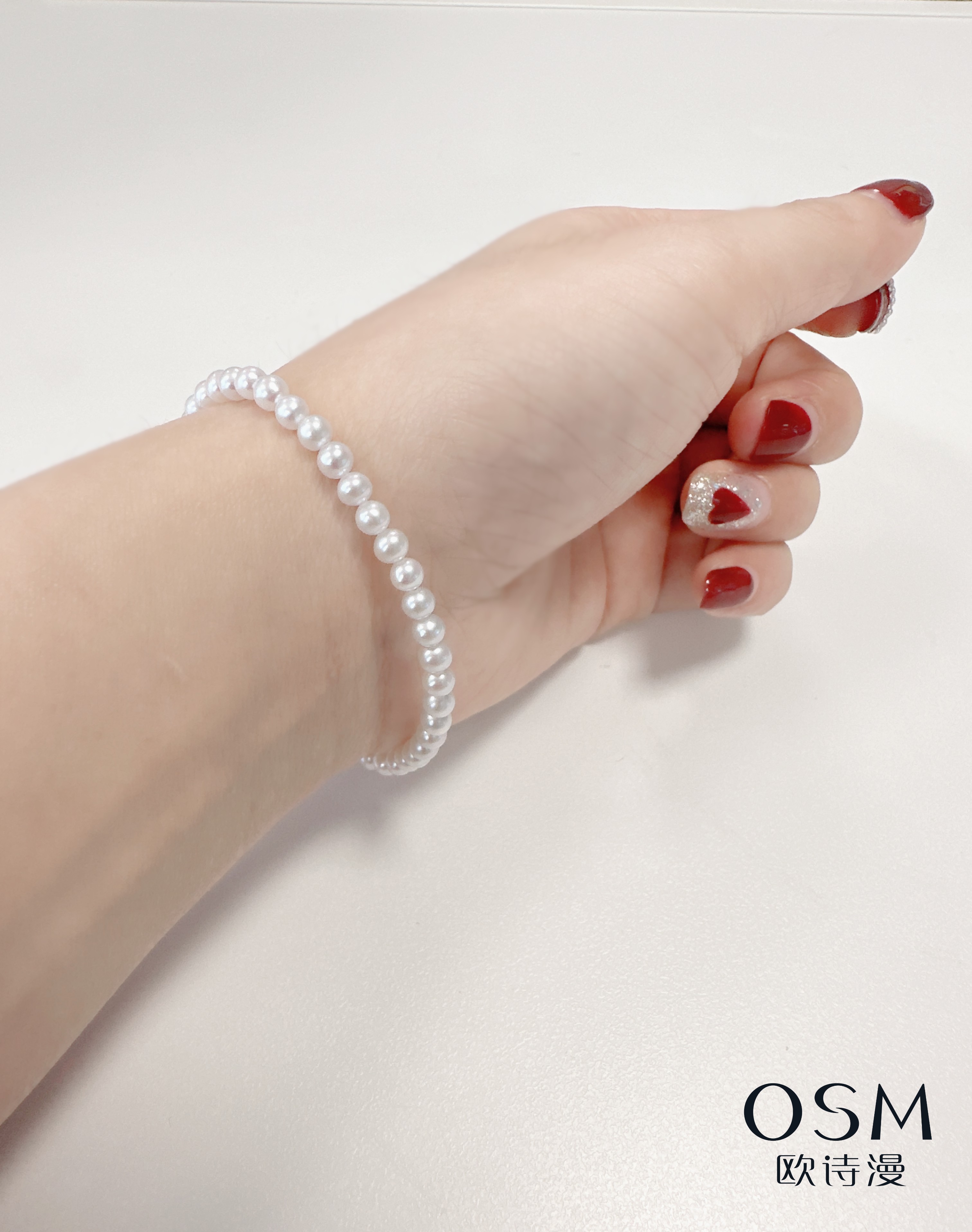 欧诗漫 珍珠手链 纯手工编织 天然淡水珍珠 尾部可调节长度