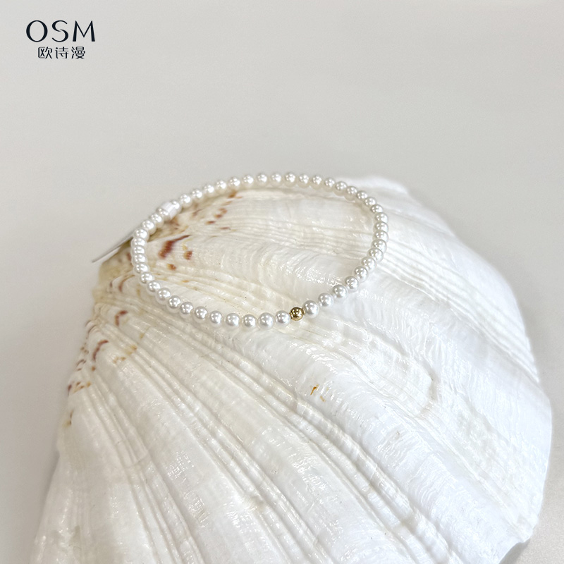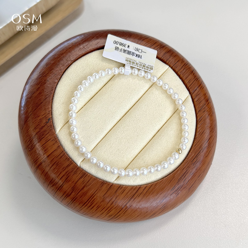 欧诗漫18K金小米珠圆满手链3-4mm正圆无暇极光 福利款