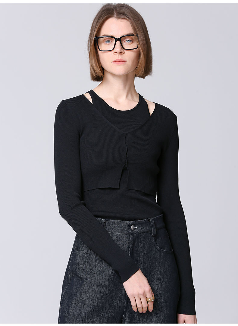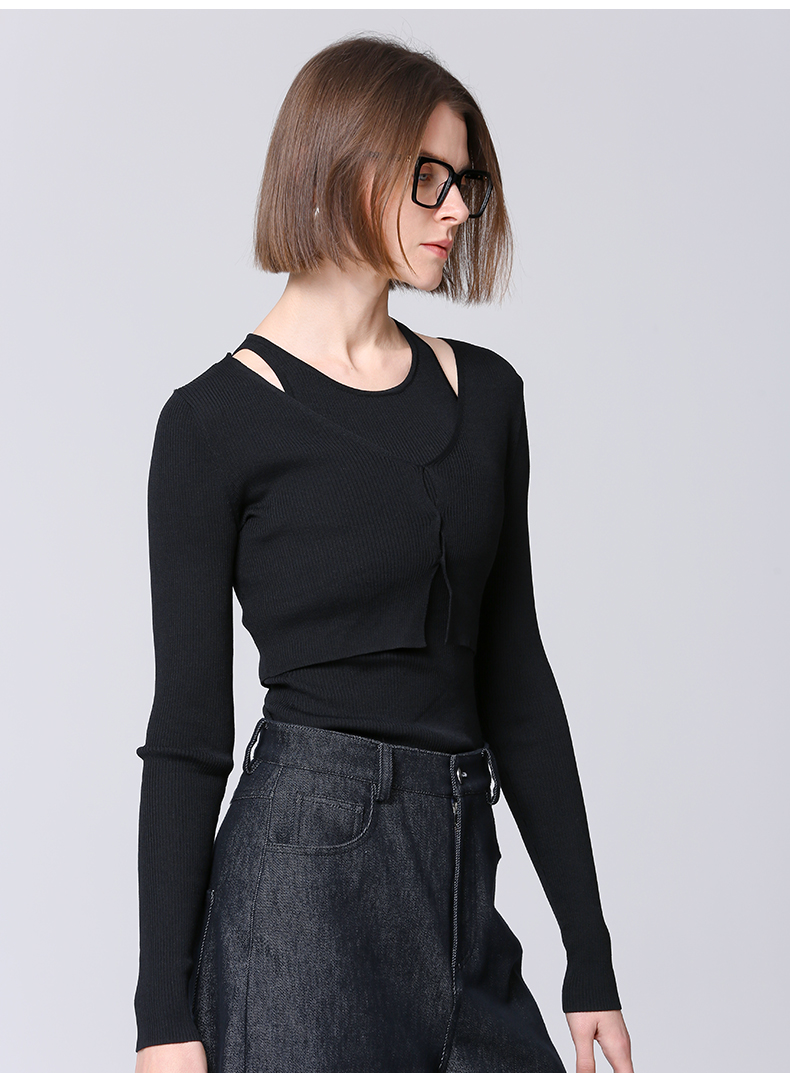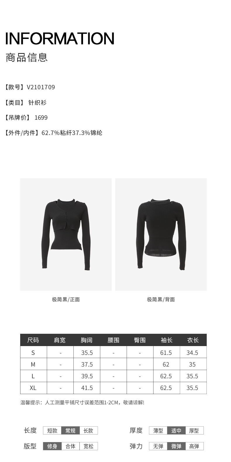 VIMAGE纬漫纪春季新款洋气修身小众设计针织衫上衣V2101709
