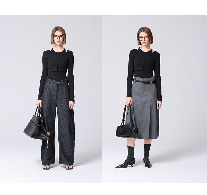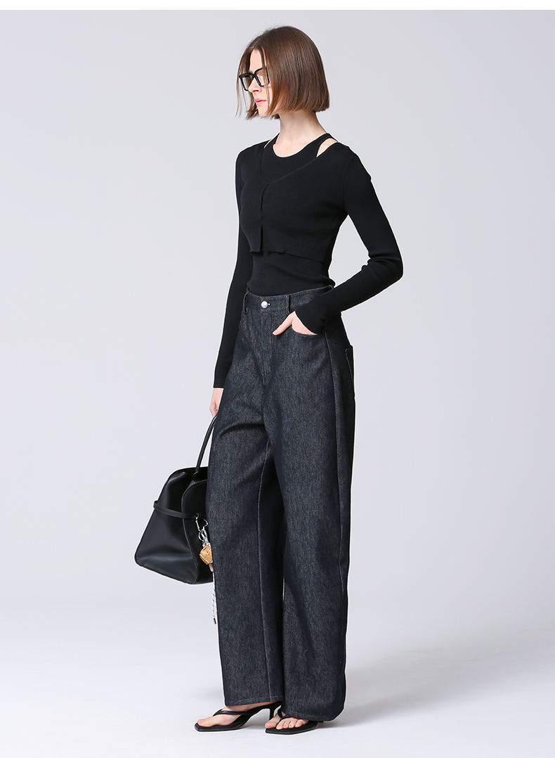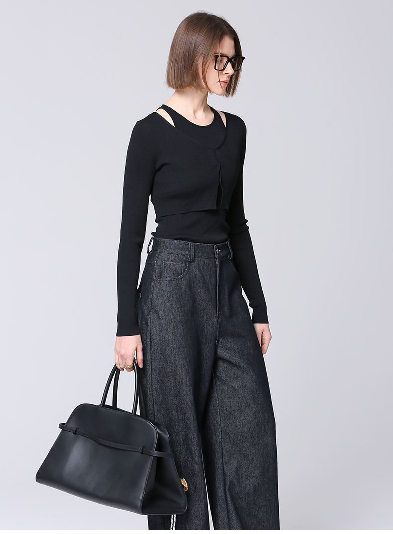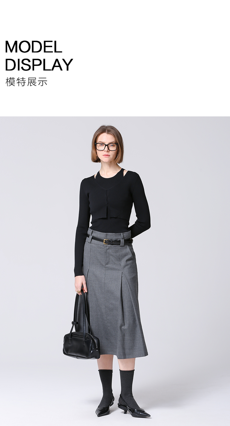 VIMAGE纬漫纪春季新款洋气修身小众设计针织衫上衣V2101709