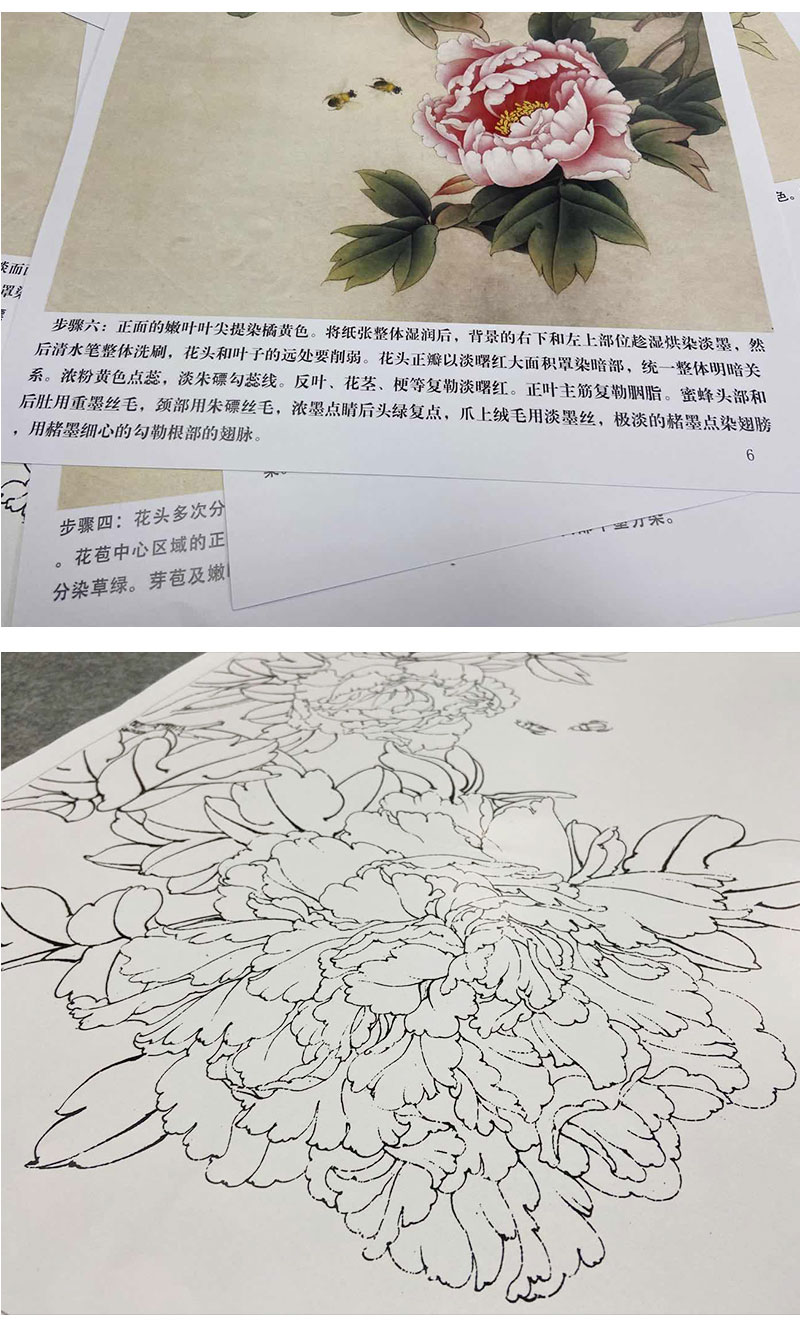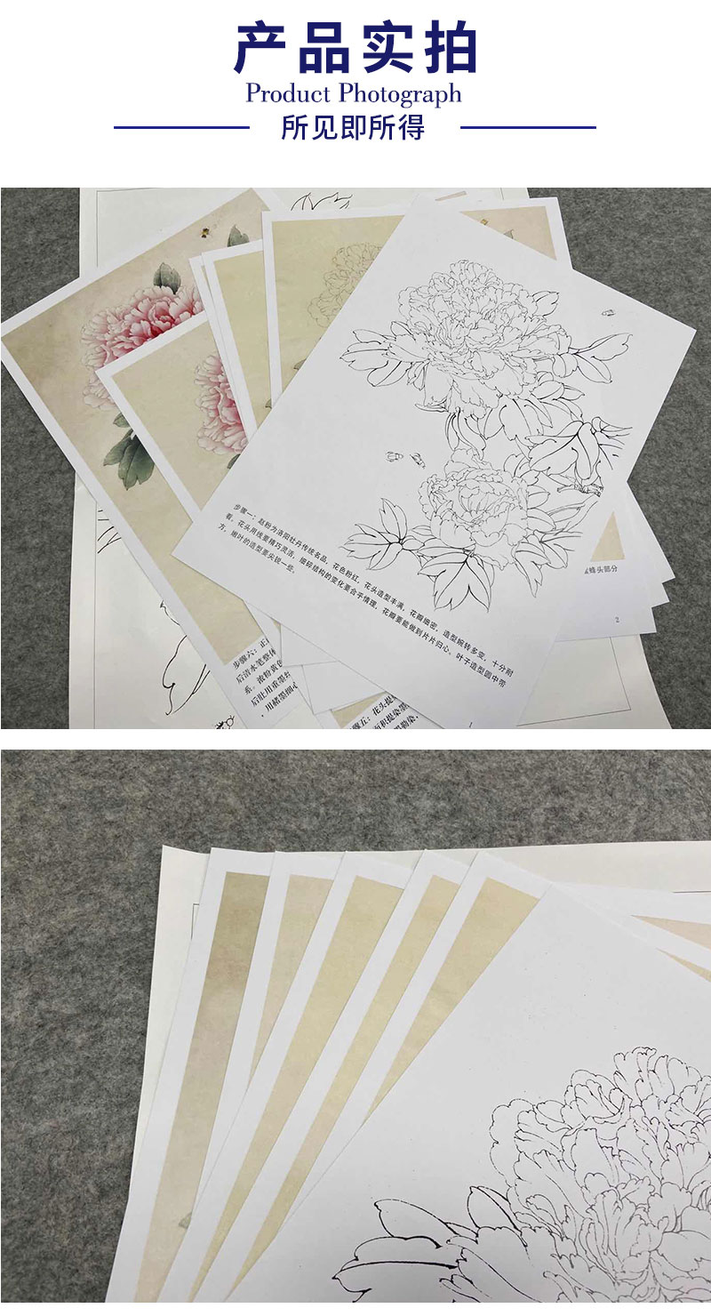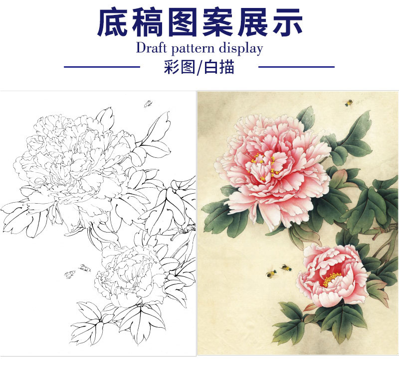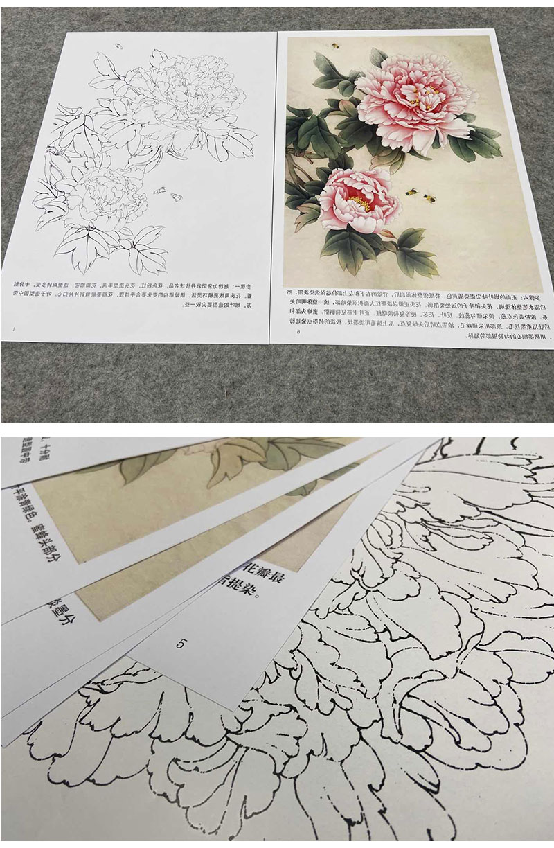 【有步骤、大彩图】李晓明工笔画白描底稿《娇娥粉黛》牡丹初学者临摹花鸟线稿KD13
