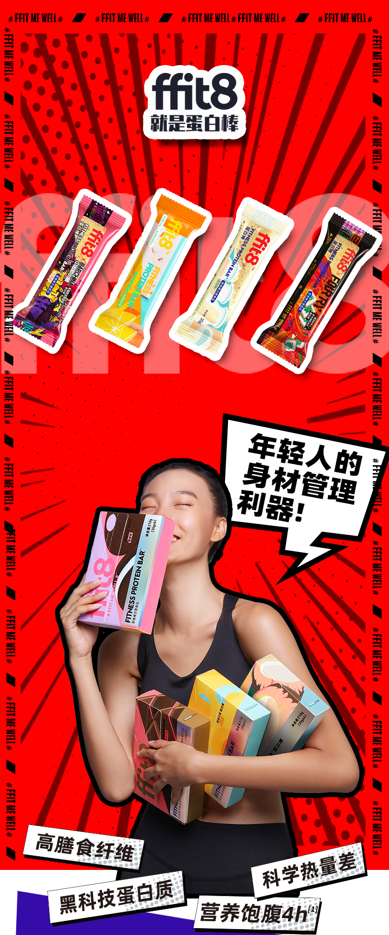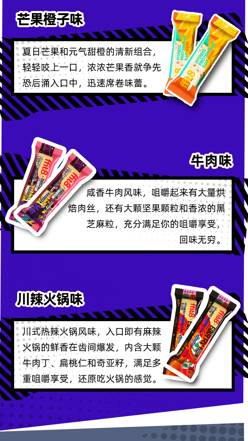 【罗永浩同款同价】FFIT8轻体蛋白代餐棒蛋白棒 WPI分离乳清蛋白 丰富膳食纤维 芒果橙子味/中国新说唱牛肉味/豆乳味/川辣火锅味 1盒7根 1根120Kcal