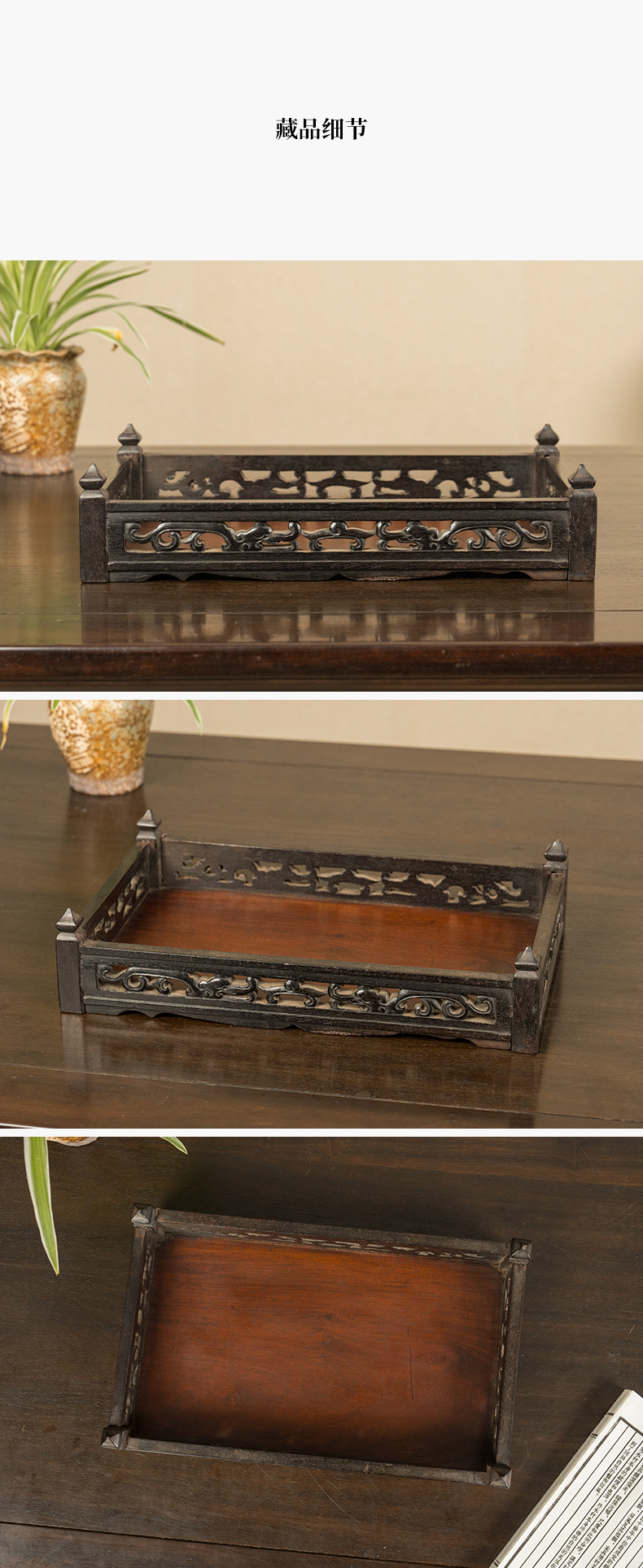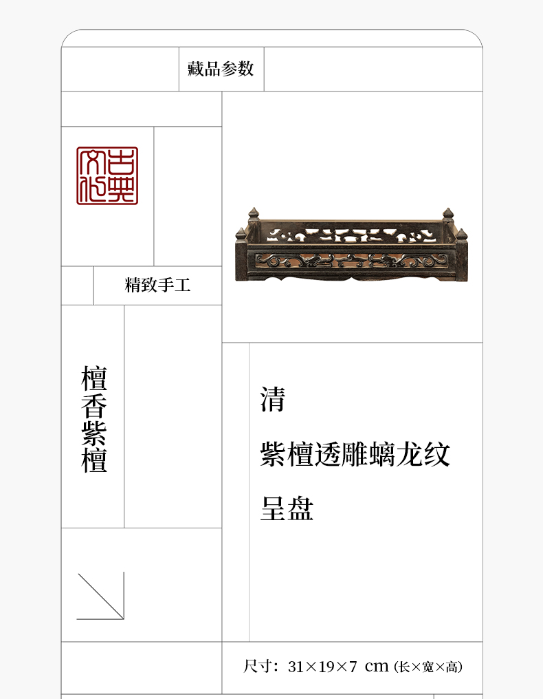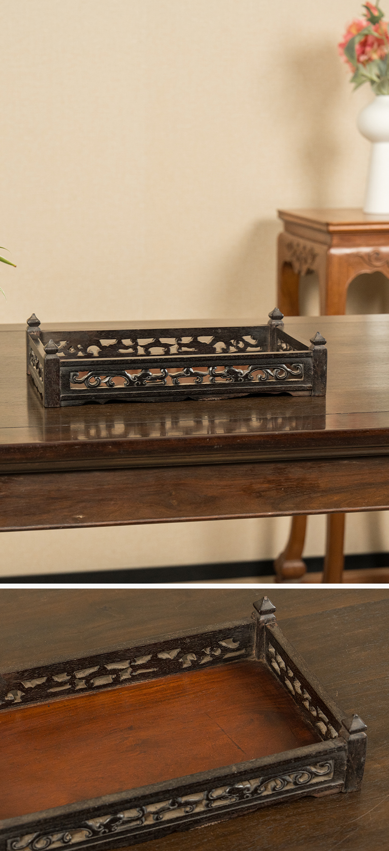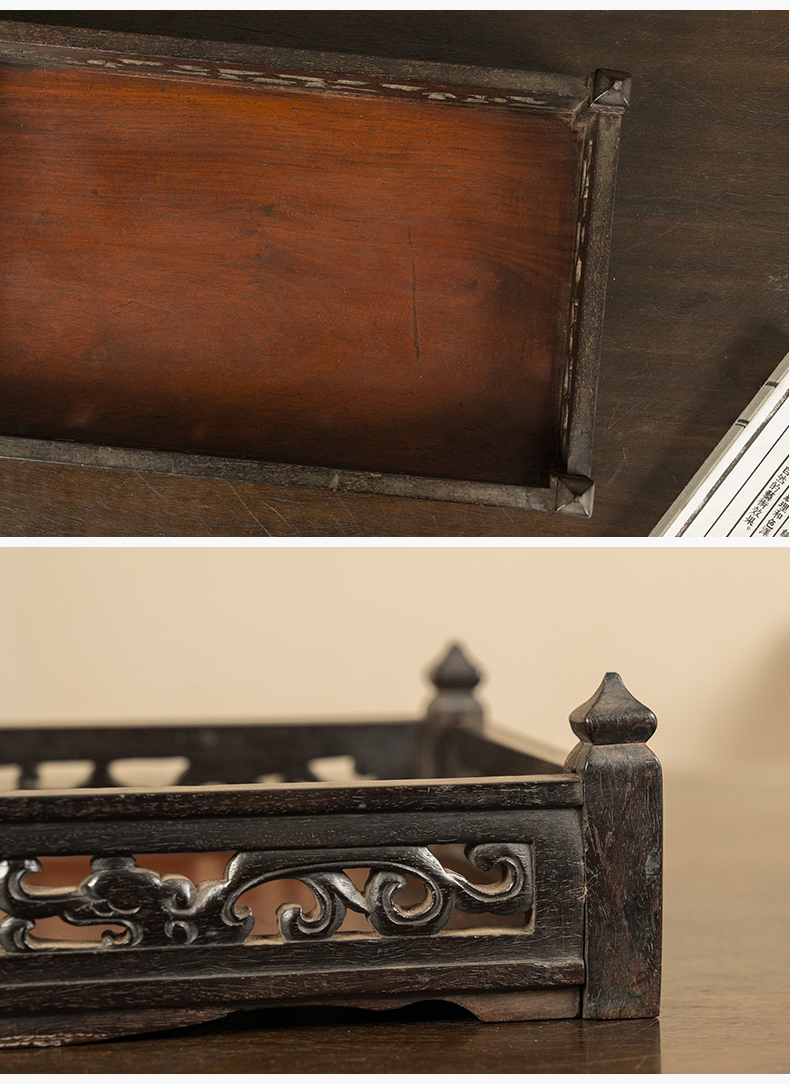 清 黄花梨镶绿石透雕螭龙纹大插屏