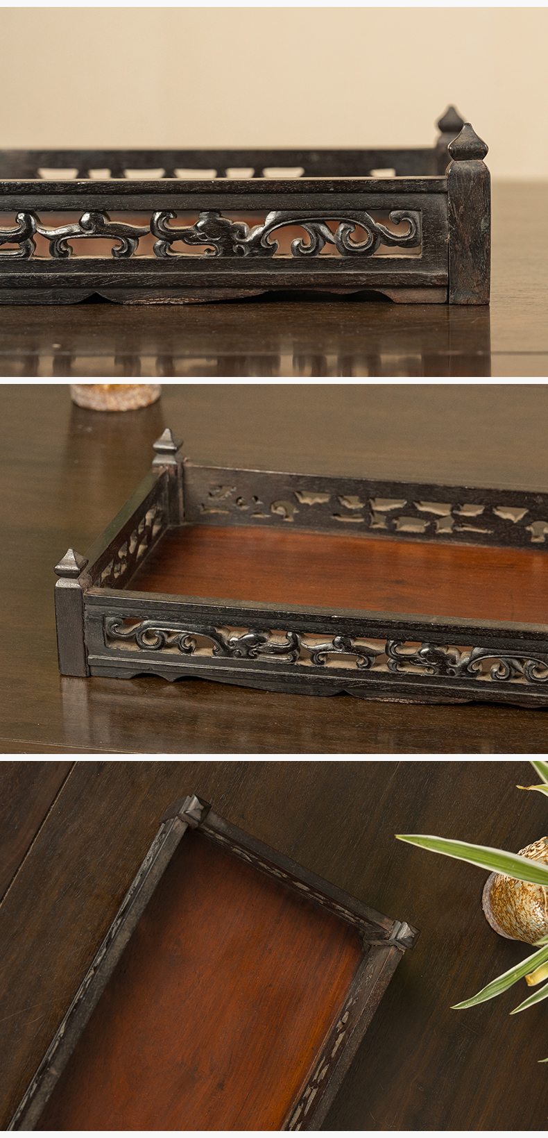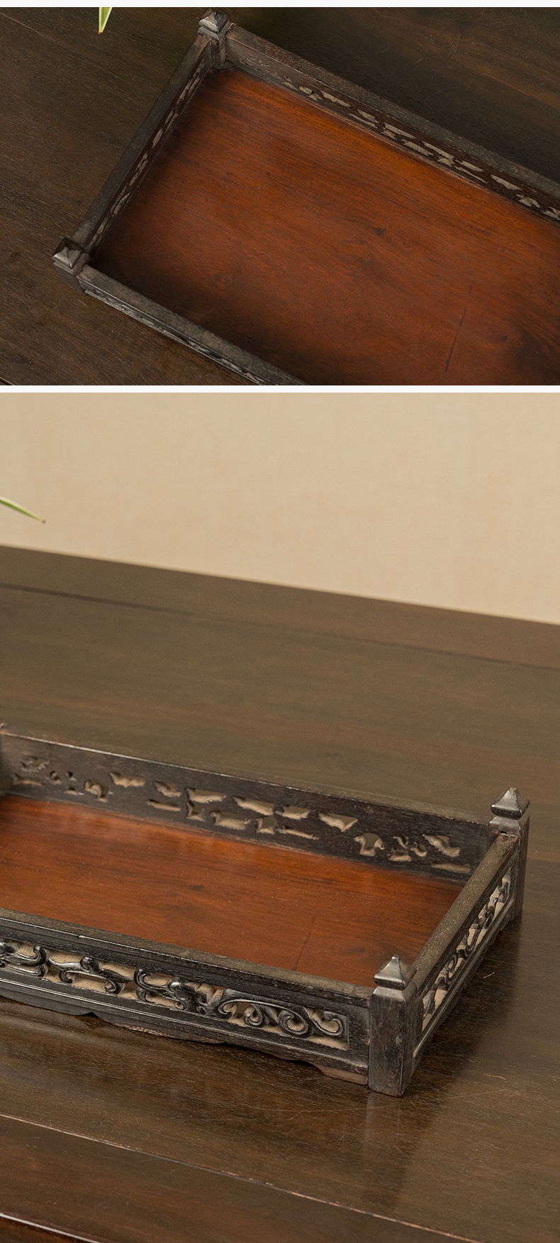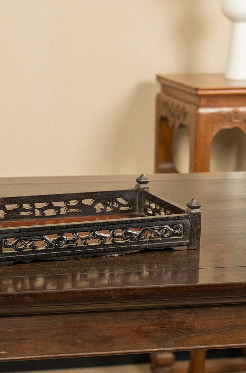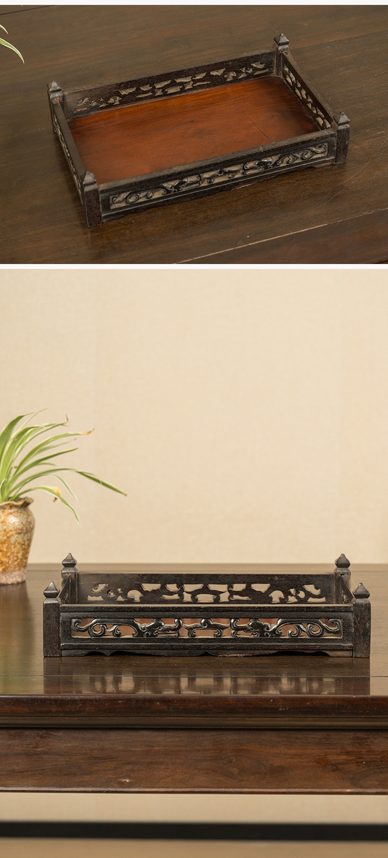 清 黄花梨镶绿石透雕螭龙纹大插屏