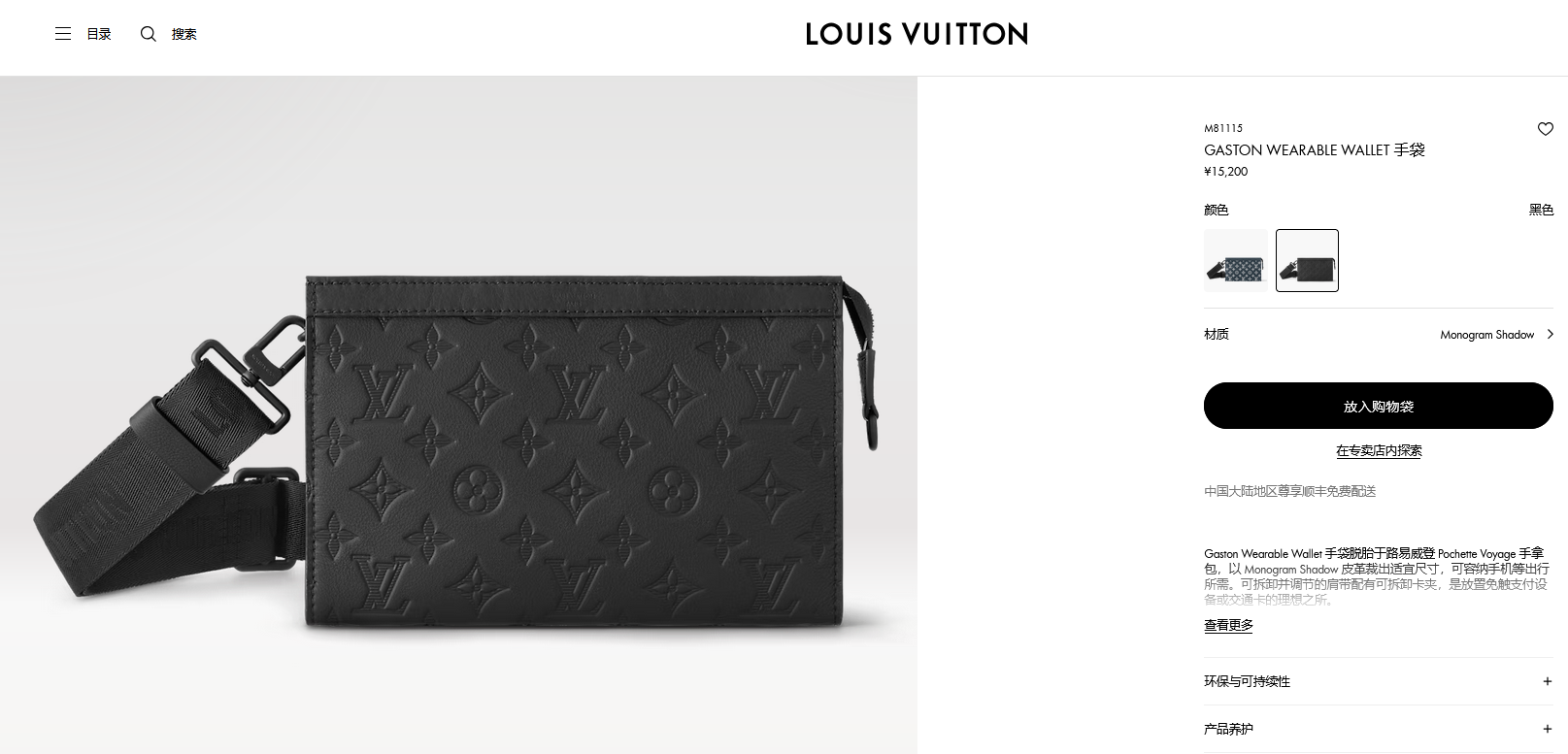 官网的一个新款手拿包斜挎包,甚至背带上还附赠了一个卡包,一包三用的款式