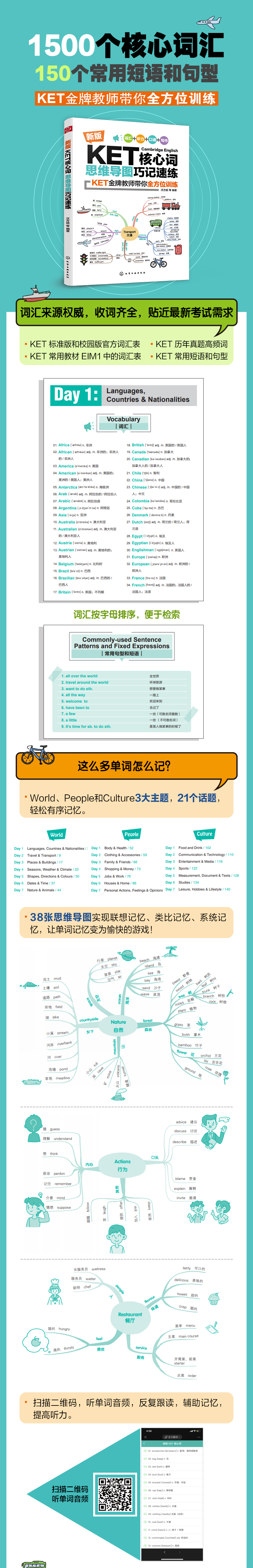 用思维导图速记巧练1500个KET核心词汇和短语,三大主题、21个话题,轻松搞定KET! |