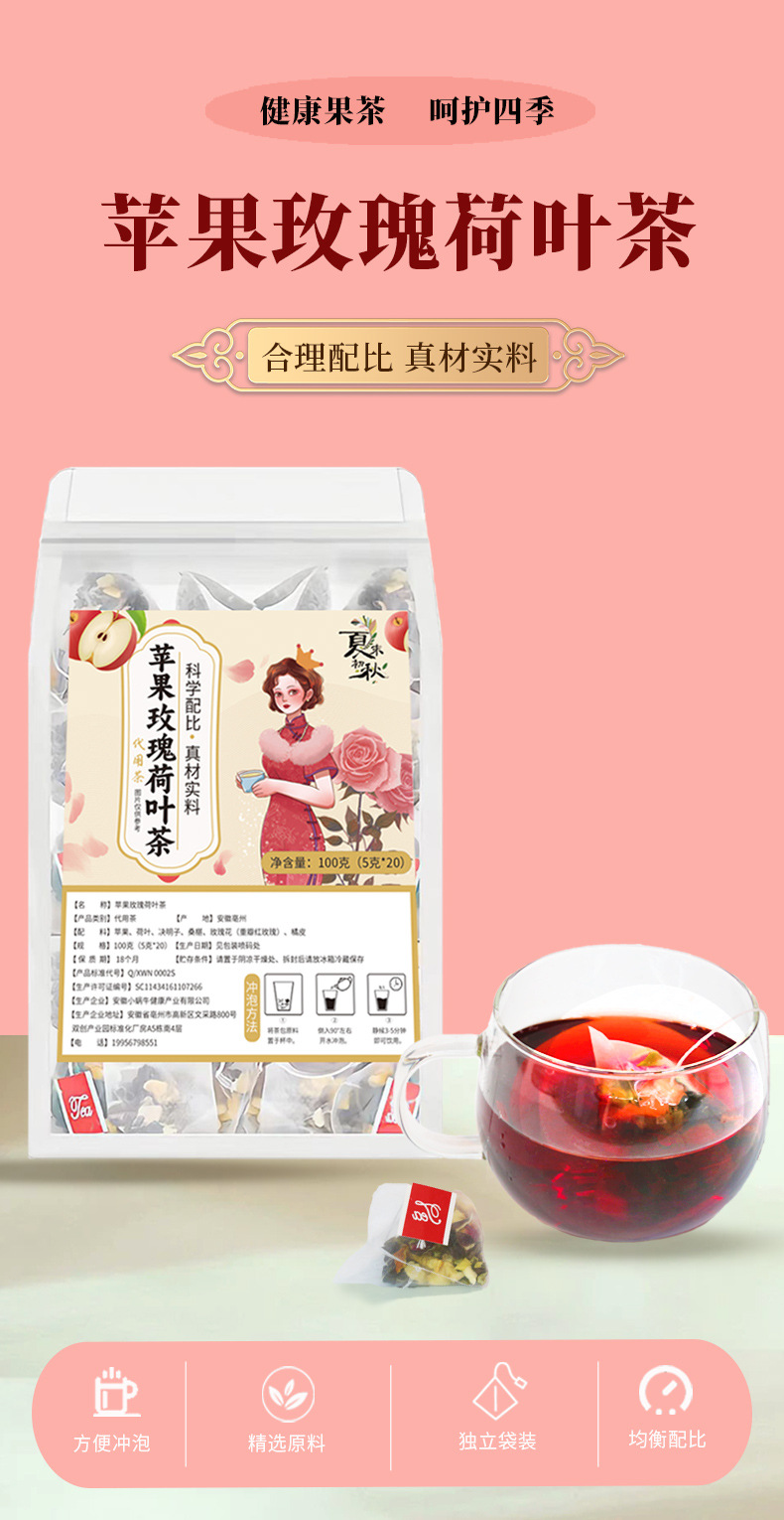 【苹果玫瑰荷叶茶】水果茶养生茶玫瑰花茶组合桑葚荷叶玫瑰茶,独立包装 携带方便。ry