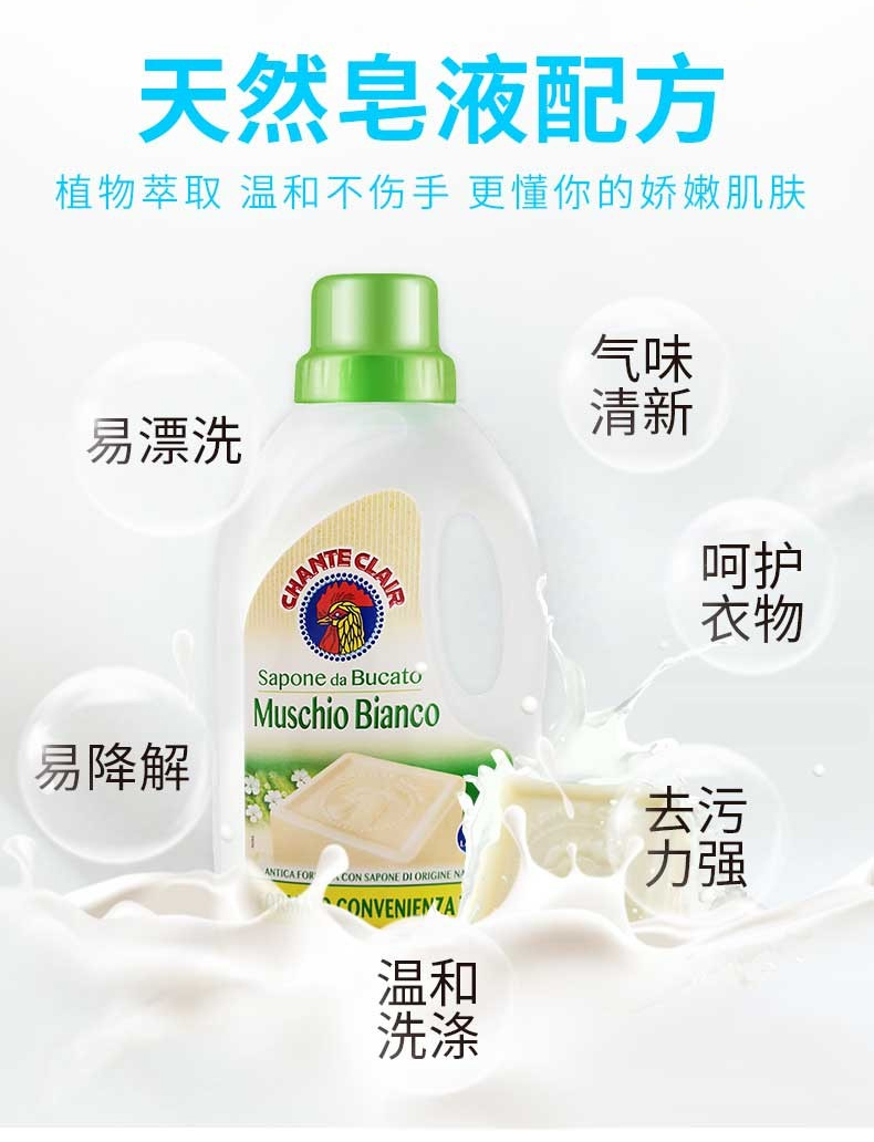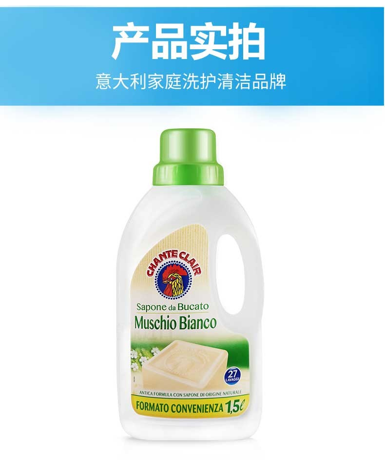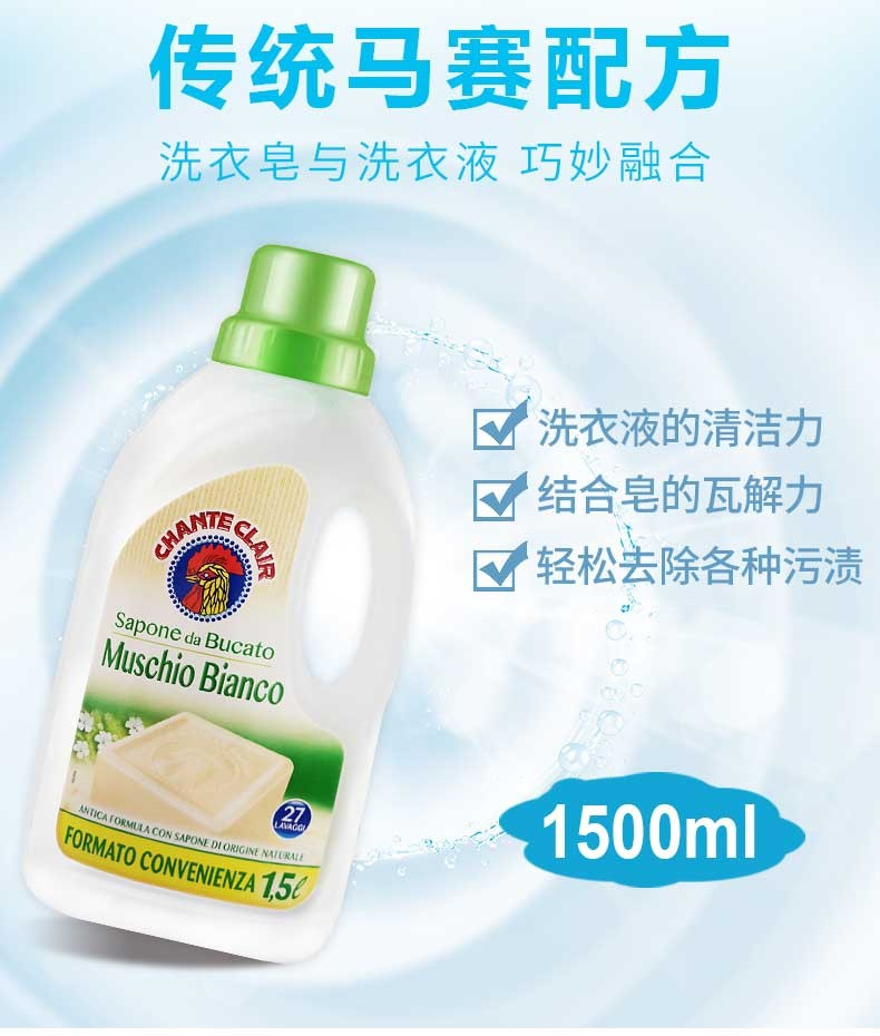 【预售-12月22日配送】意大利大公鸡管家液态洗衣皂(白苔香)/1瓶(1500ml)限用日期:30年9月