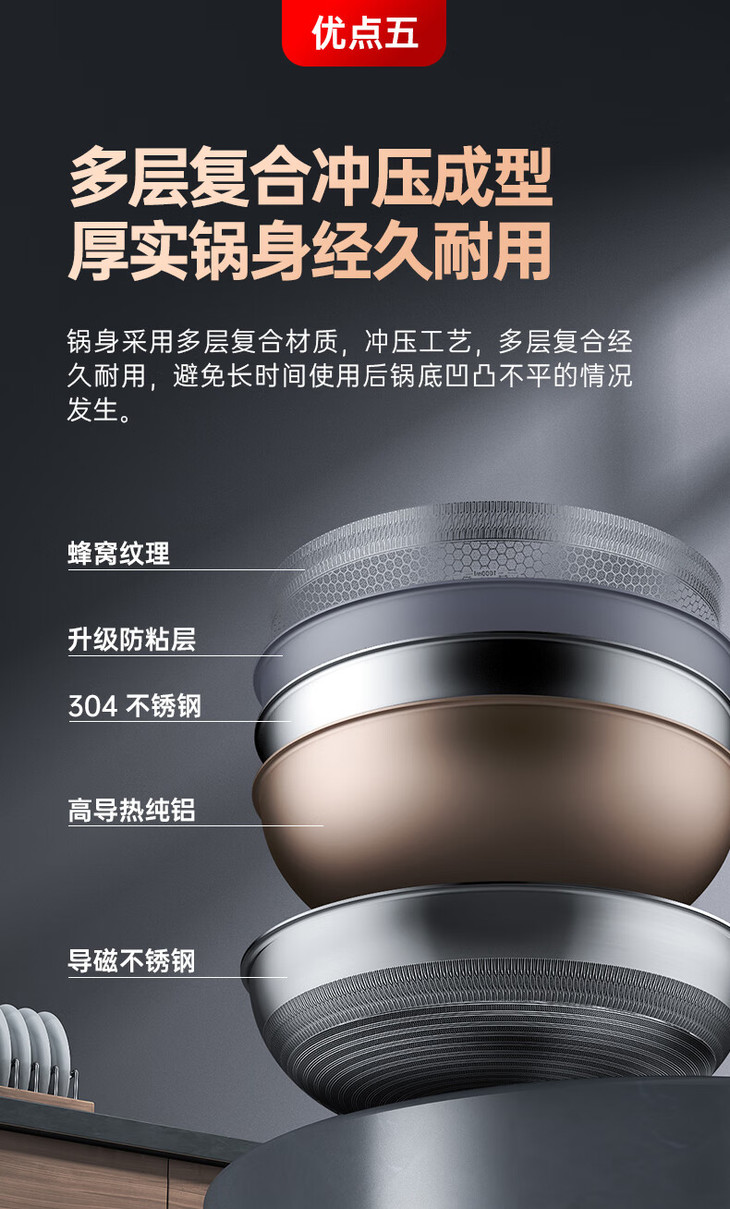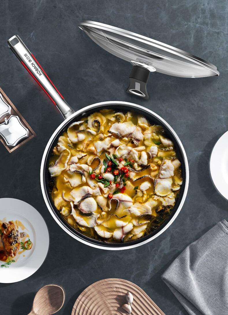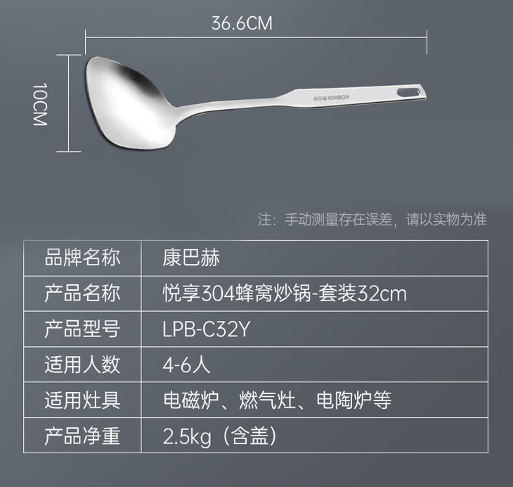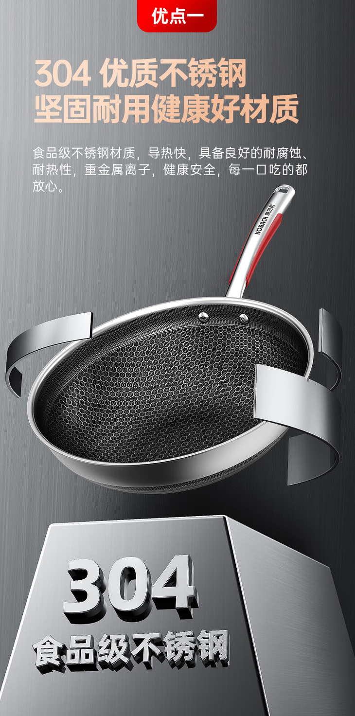康巴赫-悦享双面屏304不锈钢炒锅32cm-LPB-C32Y(双面屏) 燃气天然气电磁炉通用 可立锅盖 适用3-4人