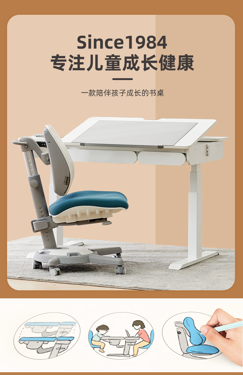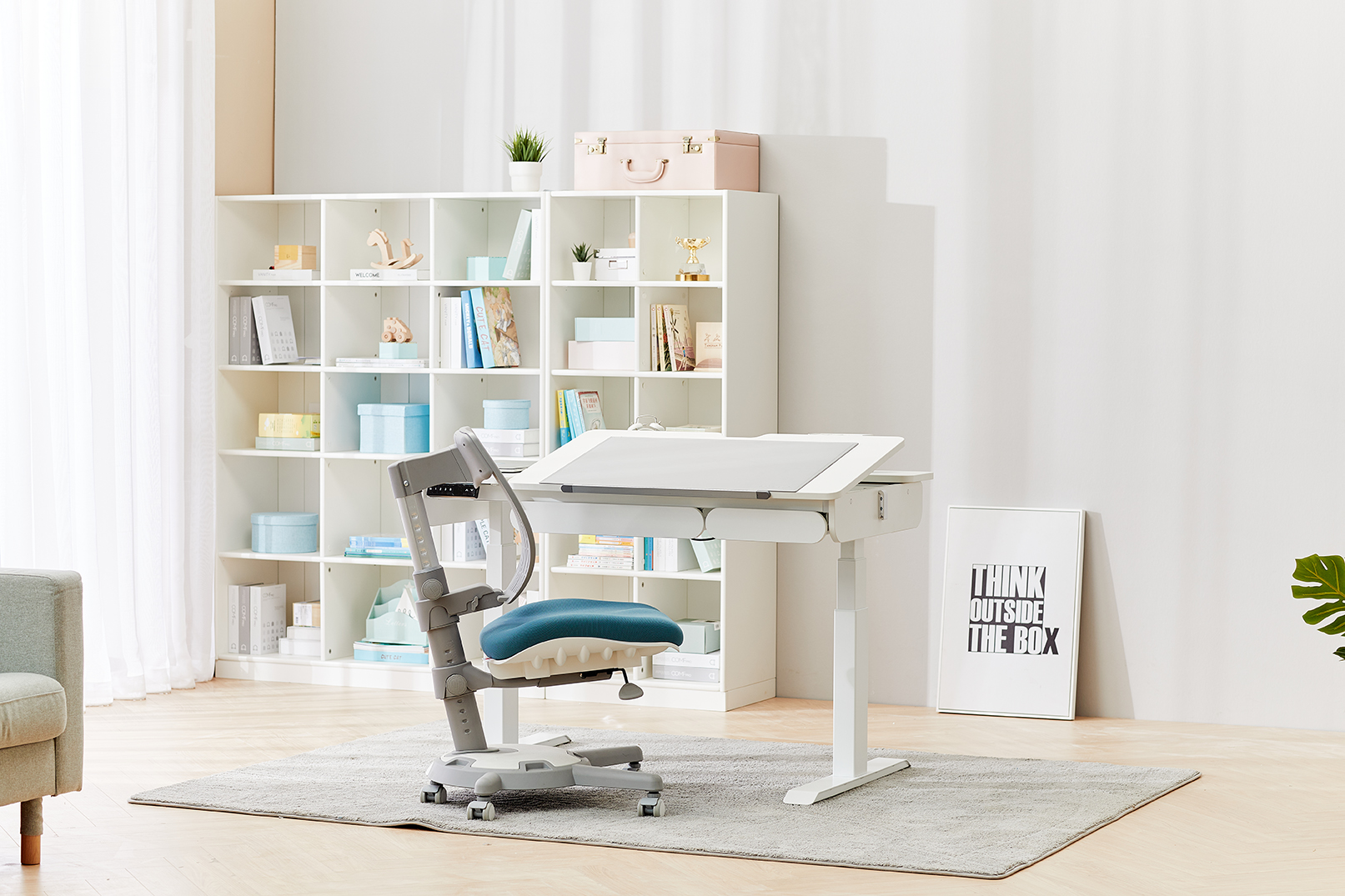 3岁+ 电动学习桌 | 康朴乐爱丁堡电动桌+柏拉图Pro椅 套装 (120*70)左L 送椅套+阅读架