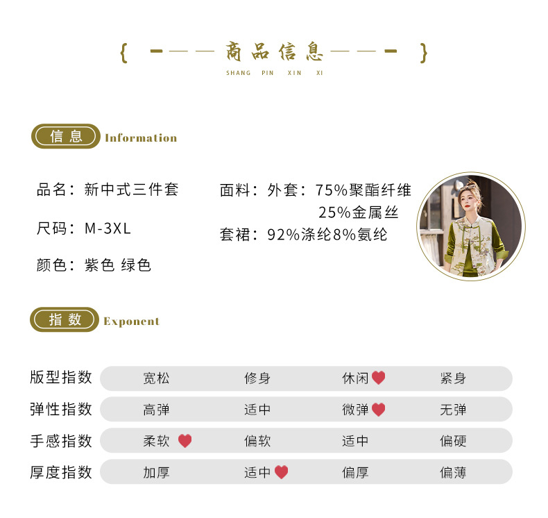 新中式国风职业套装裙,减龄穿搭一整套时尚三件套HR-GJC2502
