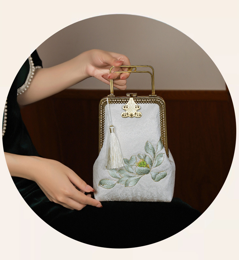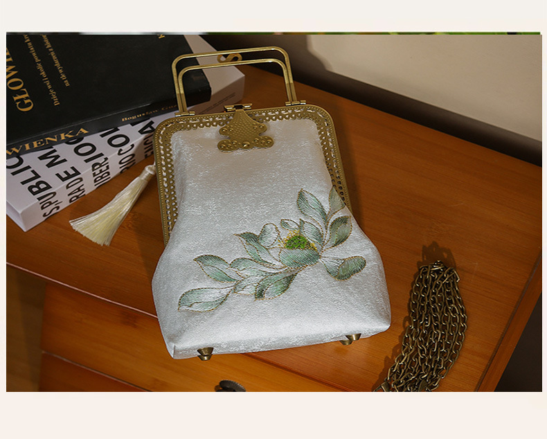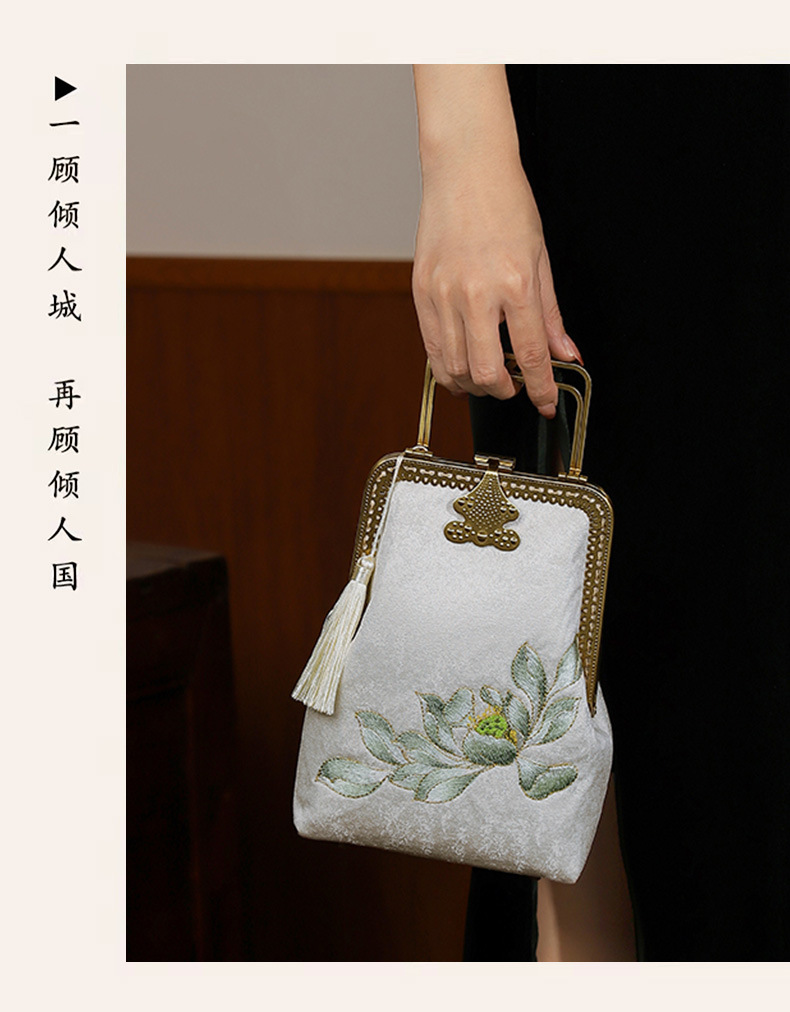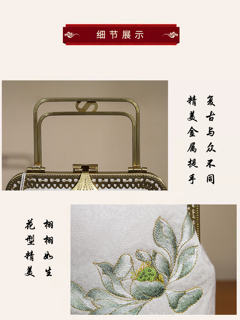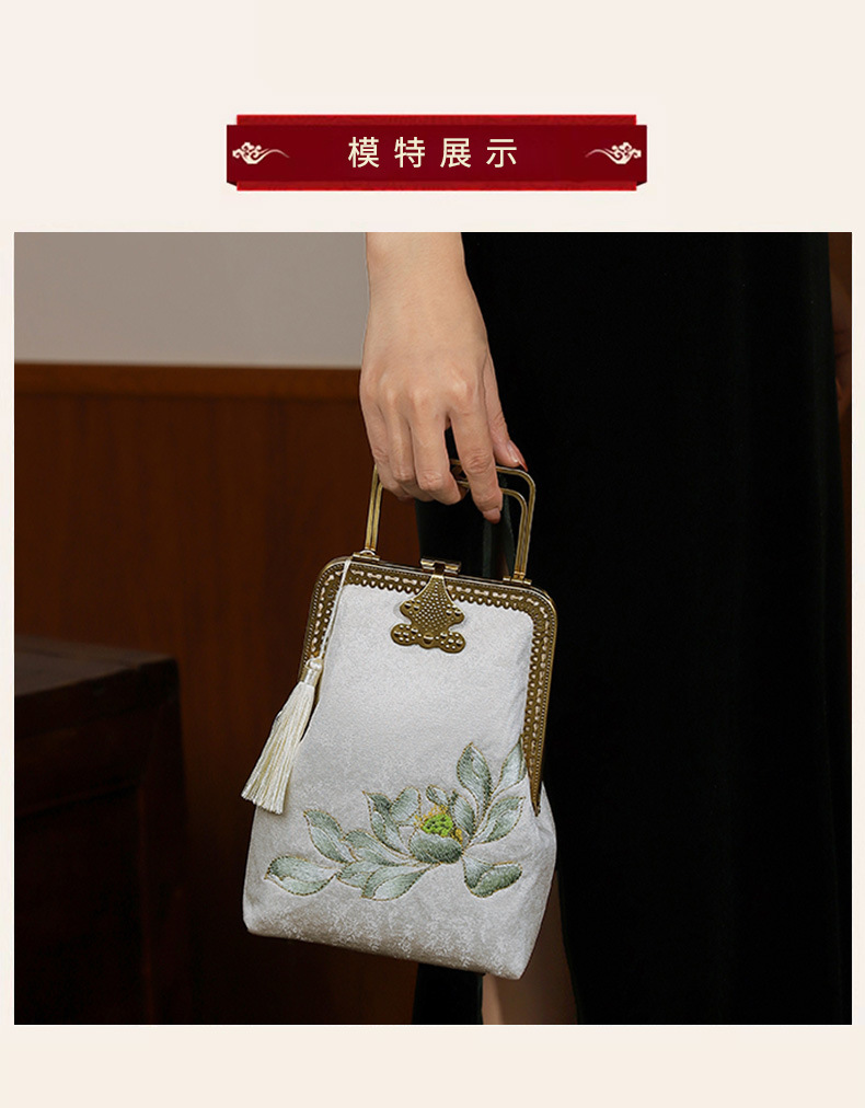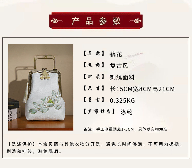 古风包旗袍绣花金口手拎包,复古民刺绣手提包JX-藕花