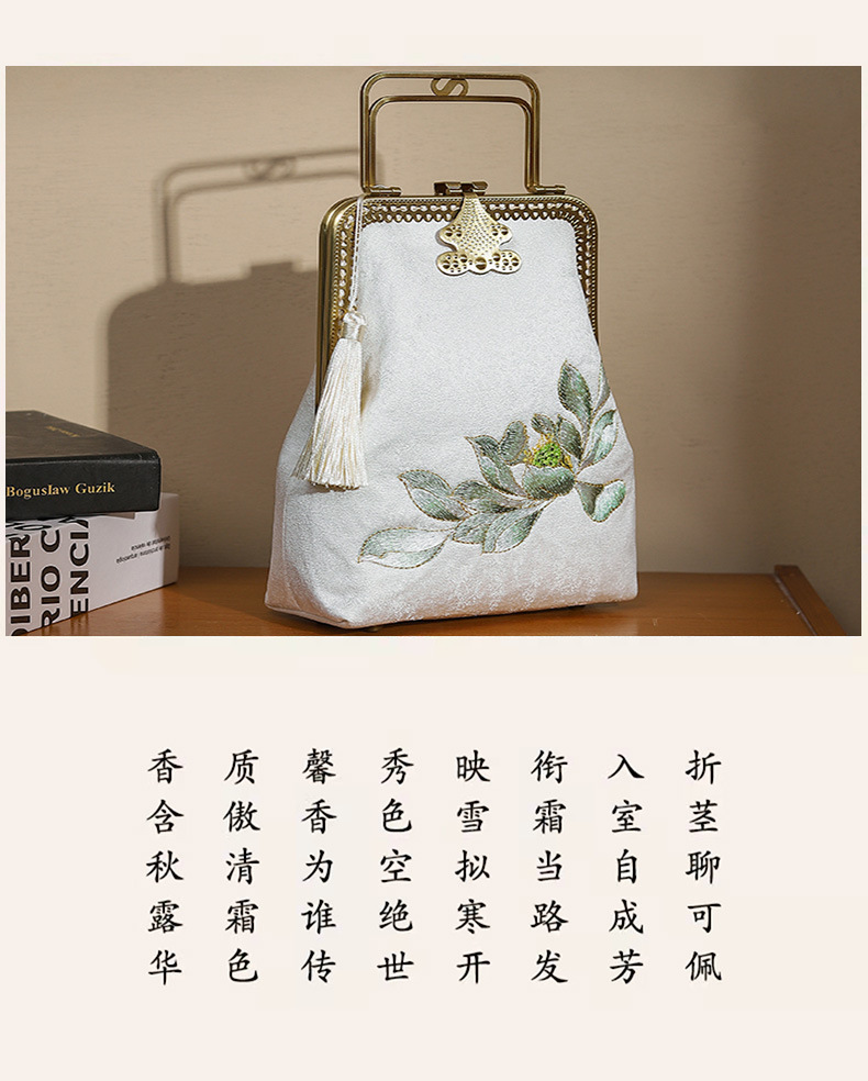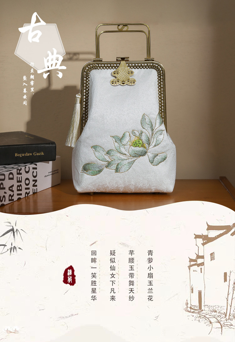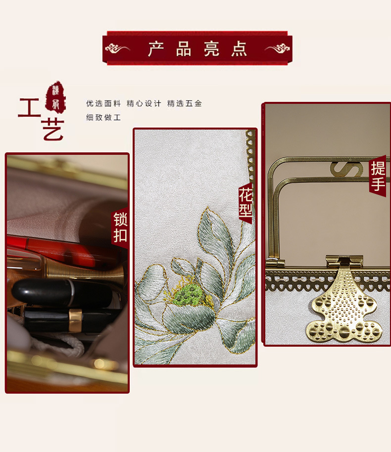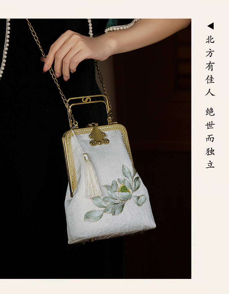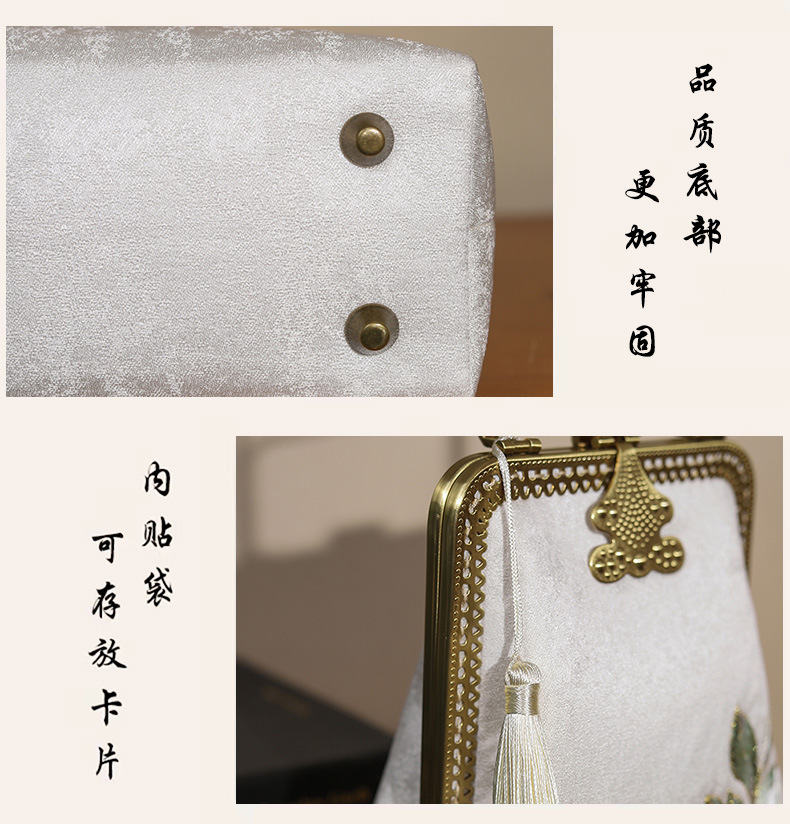 古风包旗袍绣花金口手拎包,复古民刺绣手提包JX-藕花