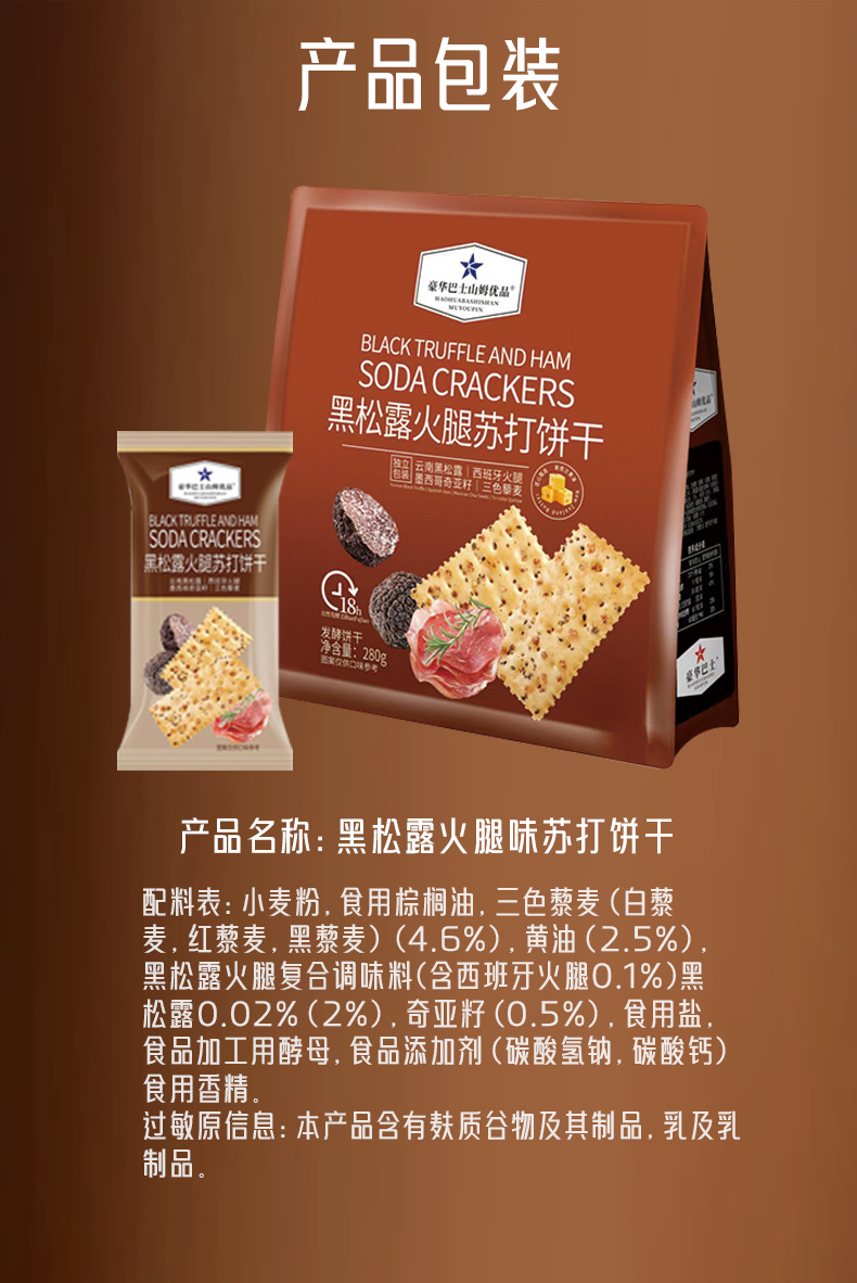 山姆同款豪华巴士黑松露火腿苏打饼干280g/2袋