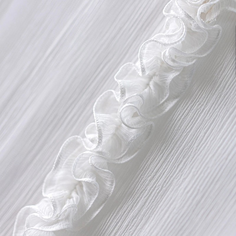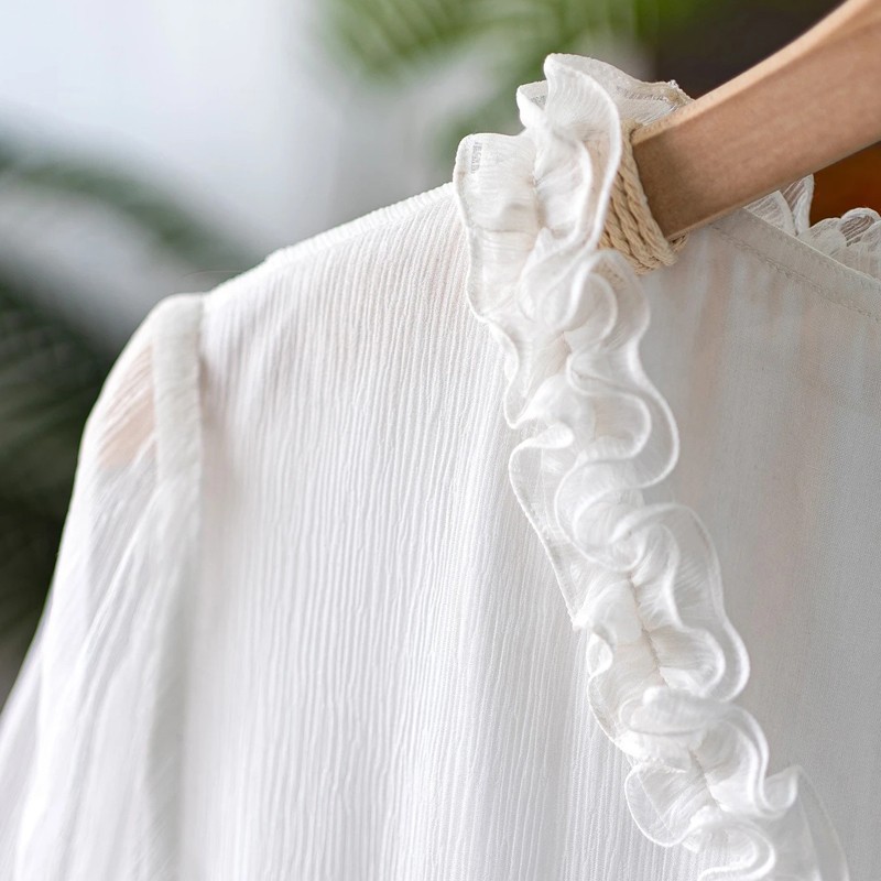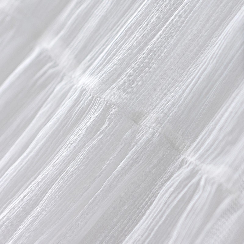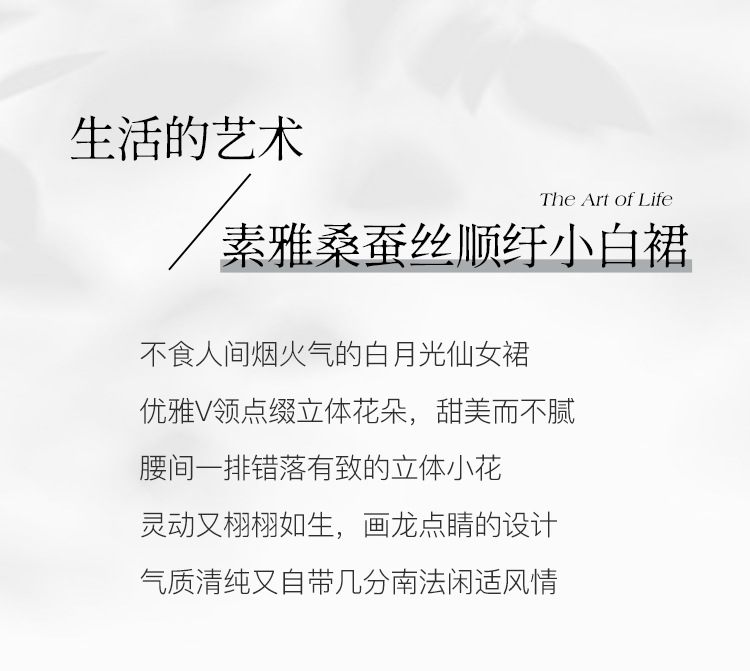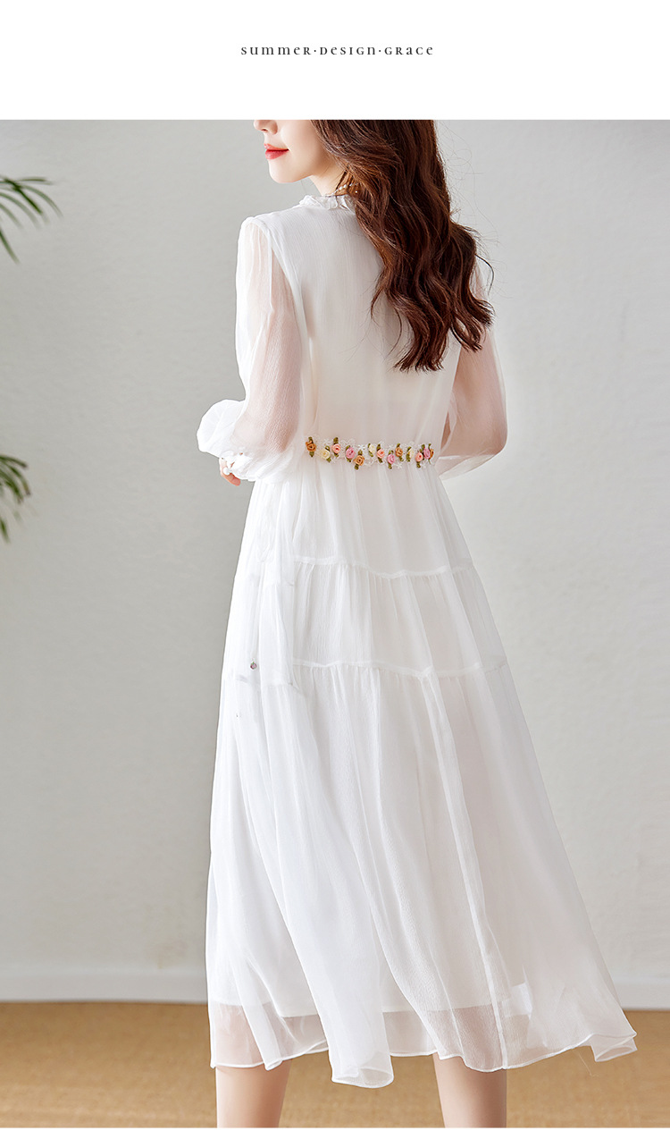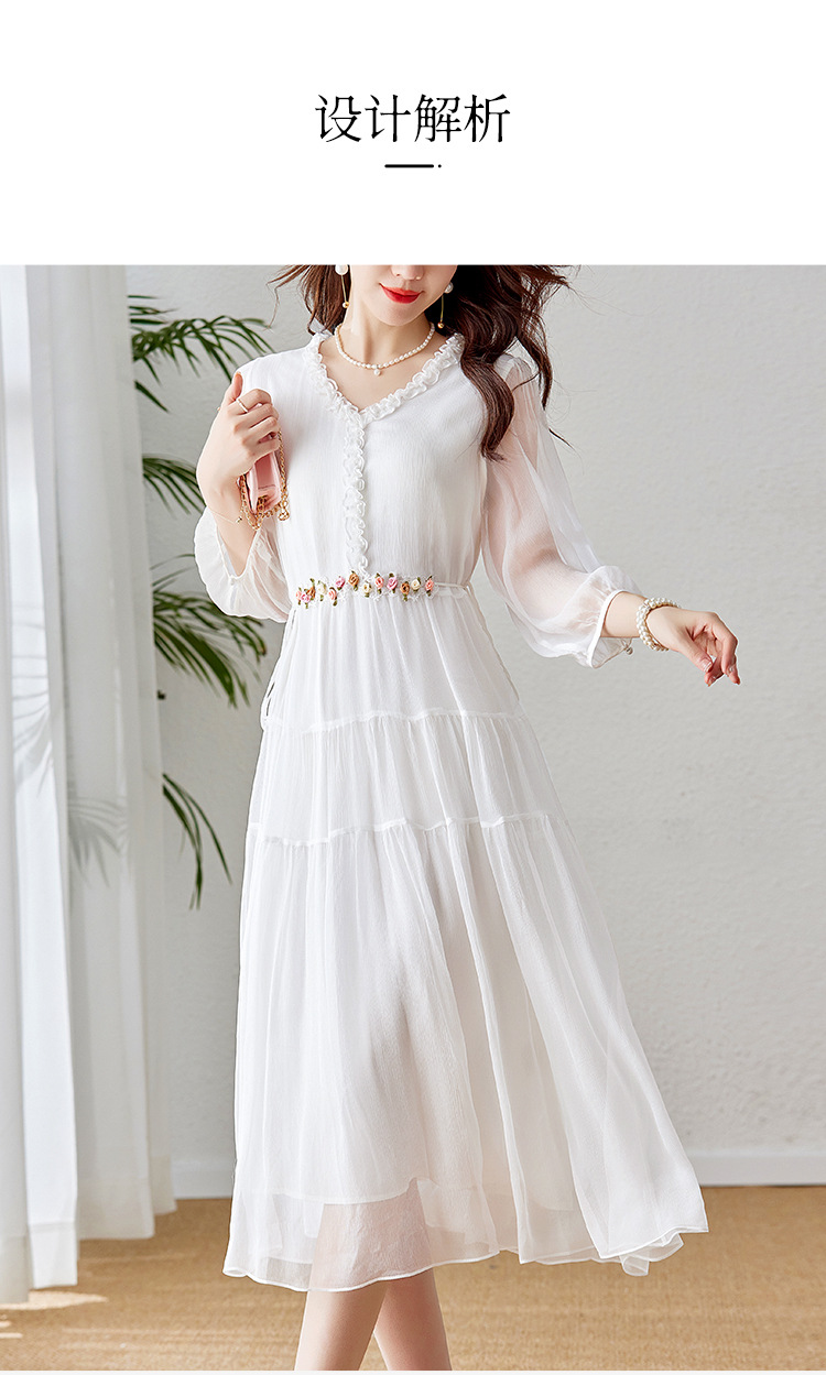 七分袖V领抽绳收腰,白色桑蚕丝真丝连衣裙SM-82393516