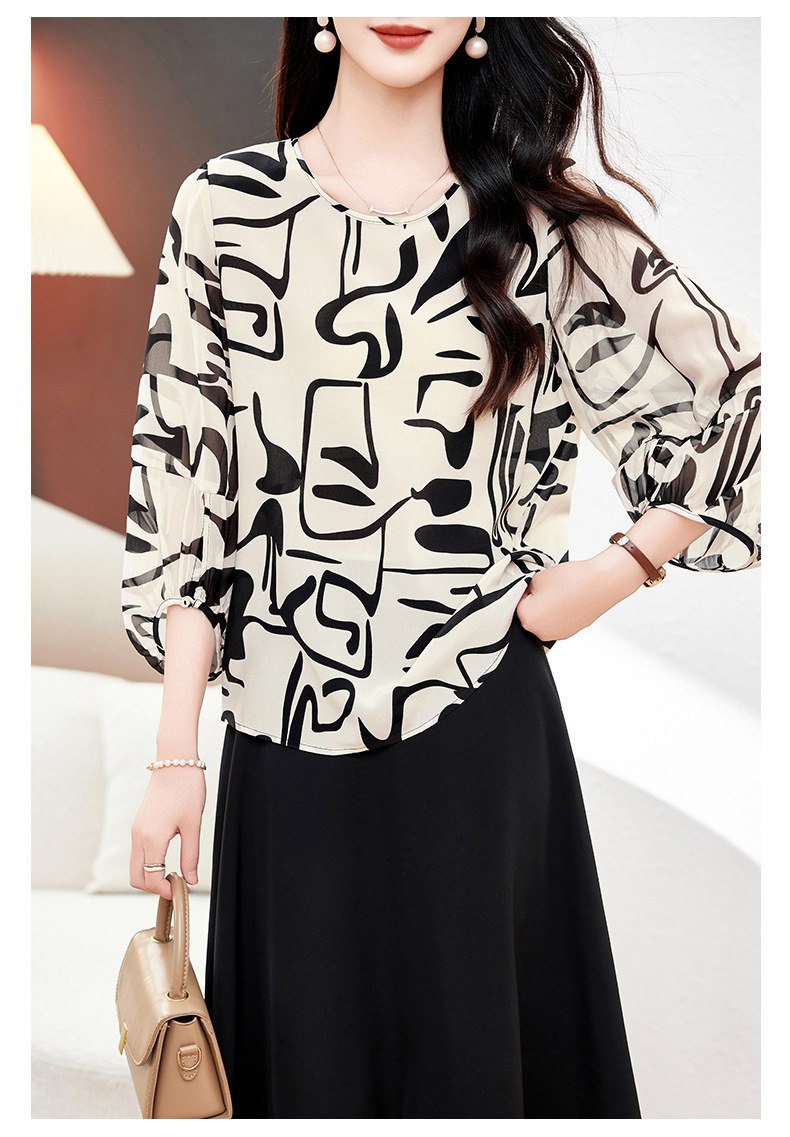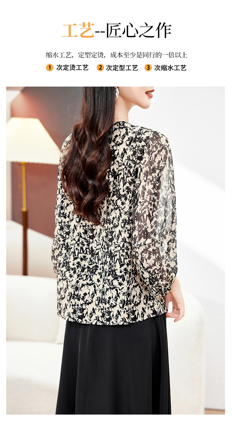 丁摩 双绉真丝衬衫印花桑蚕丝上衣0350
