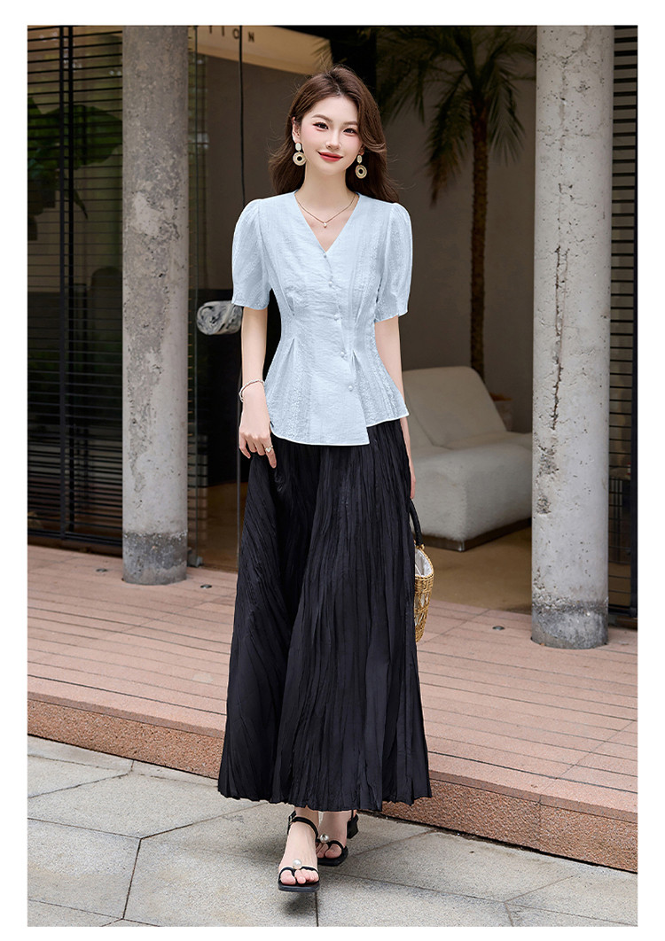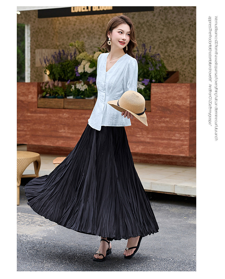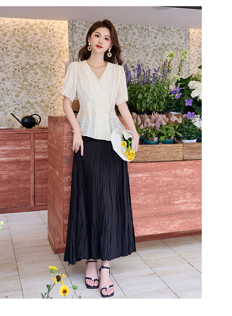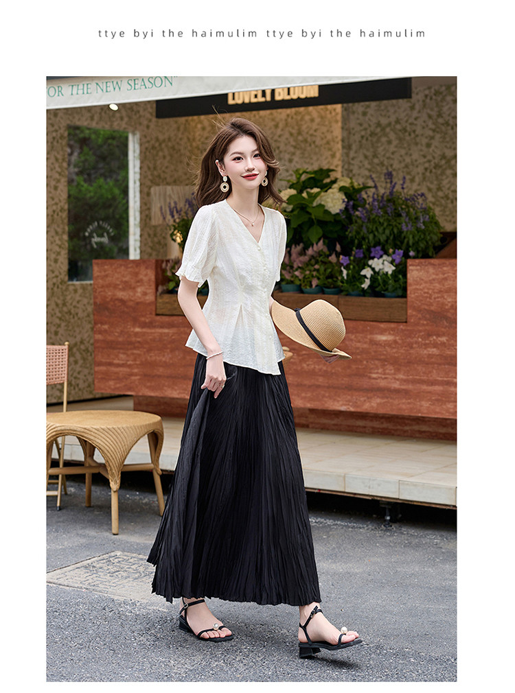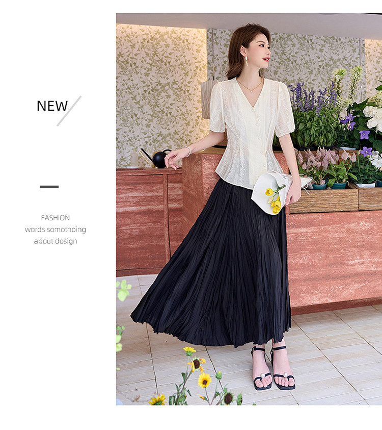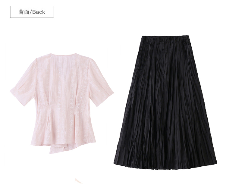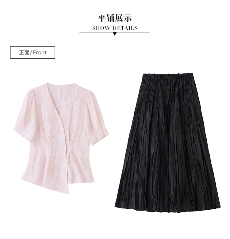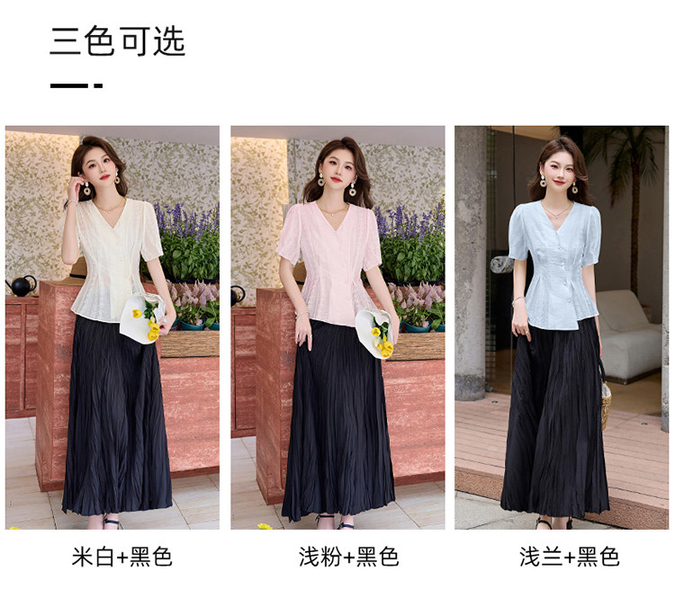 女神范V领衬衫+百褶群两件套 HR-HBLJRA1146-6