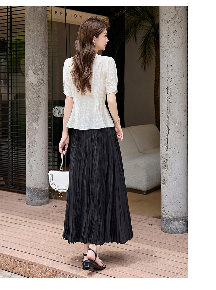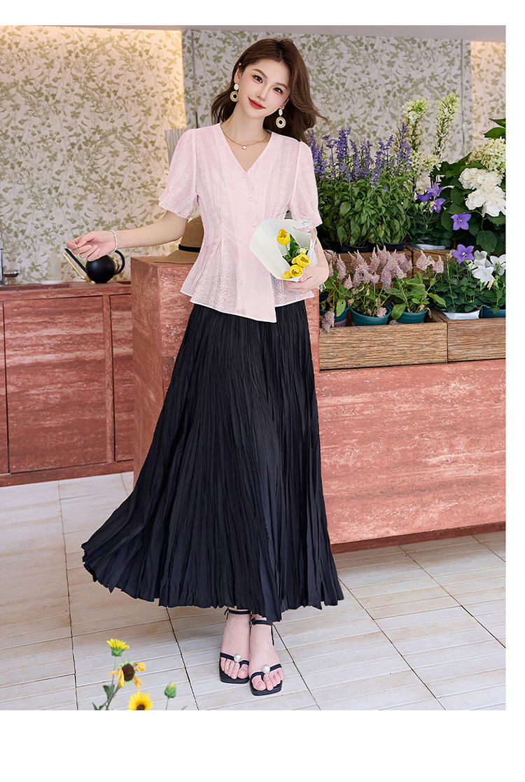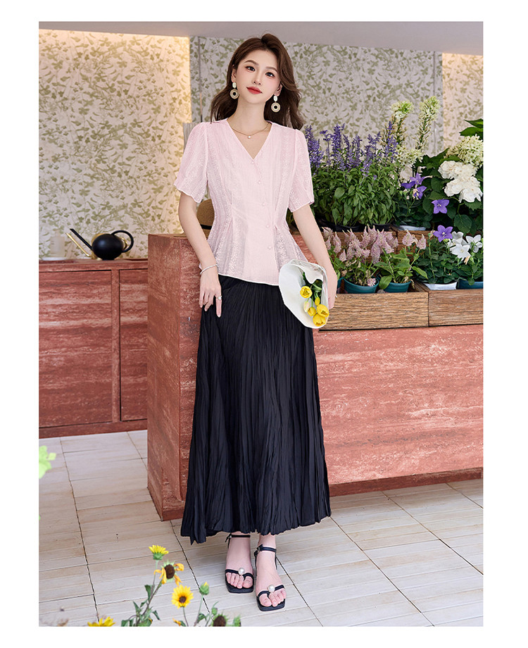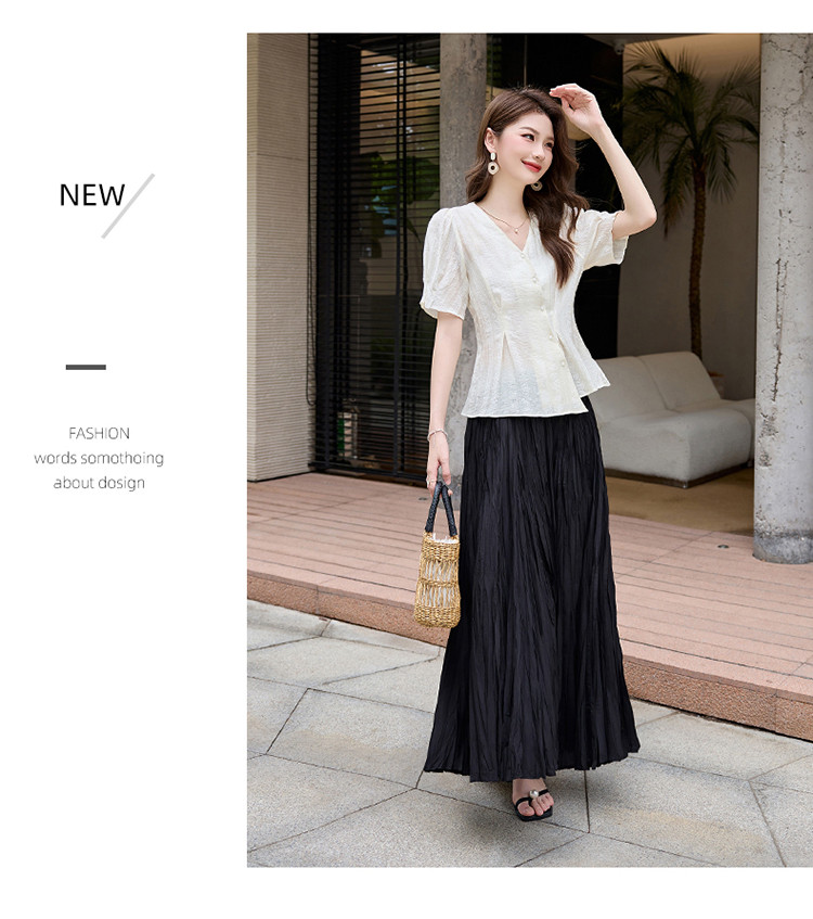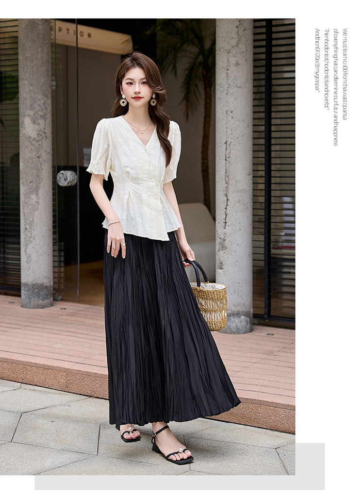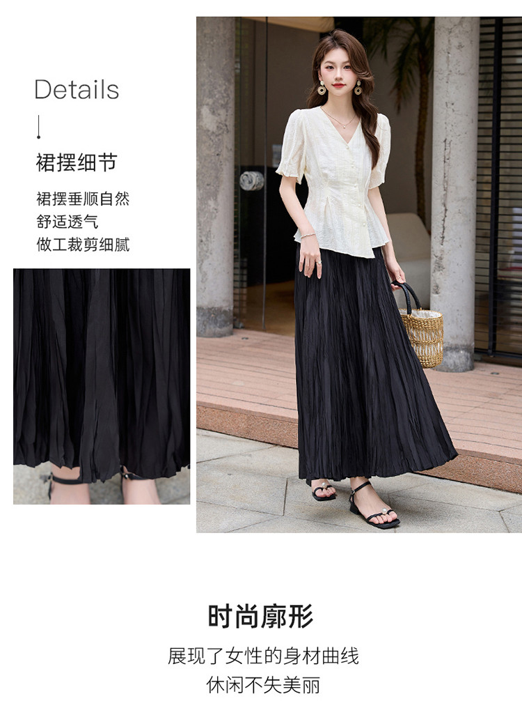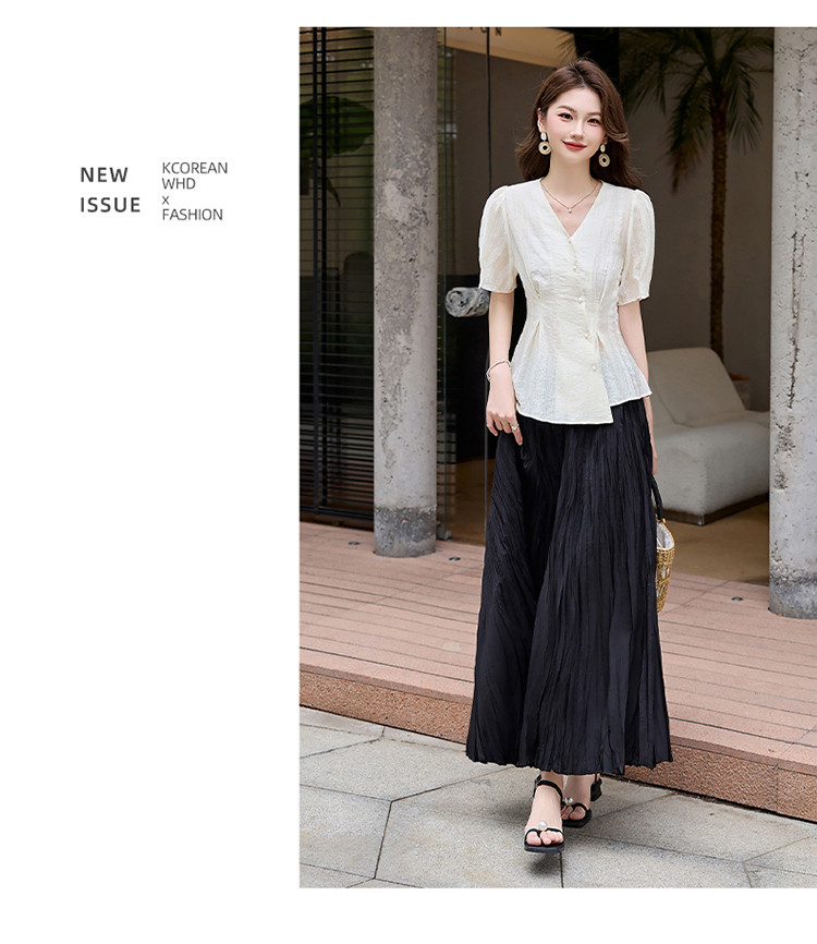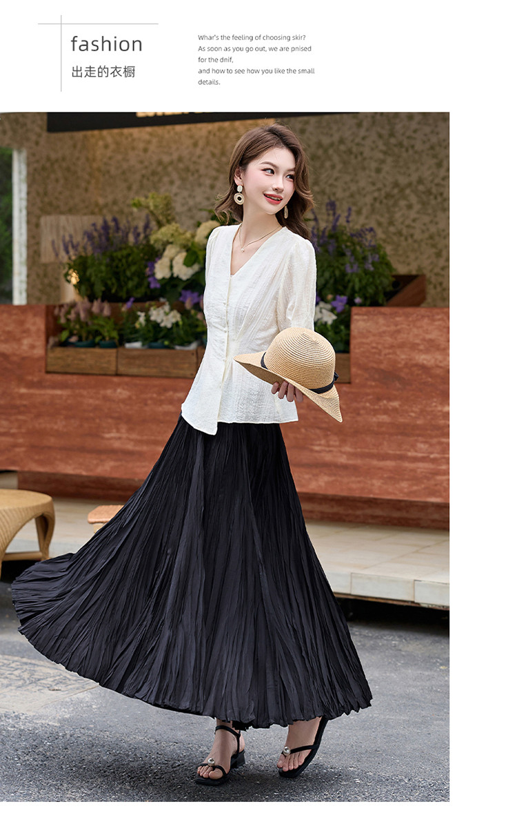 女神范V领衬衫+百褶群两件套 HR-HBLJRA1146-6