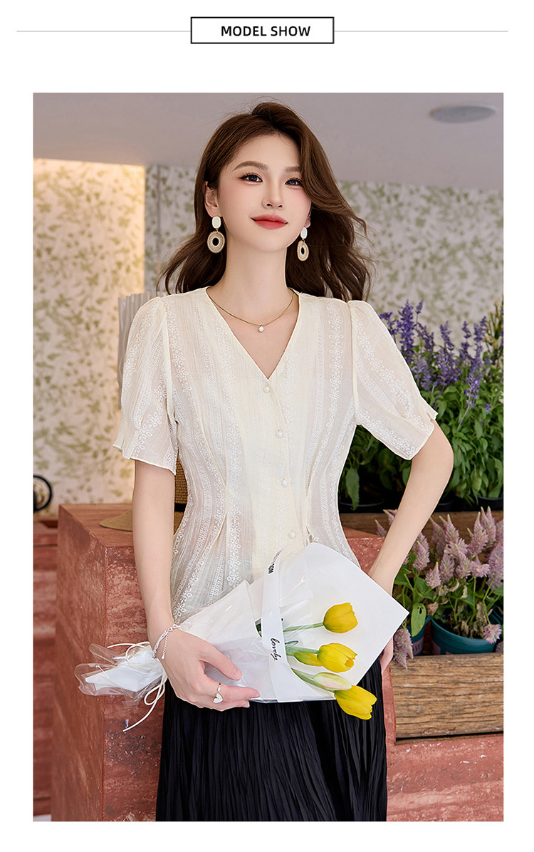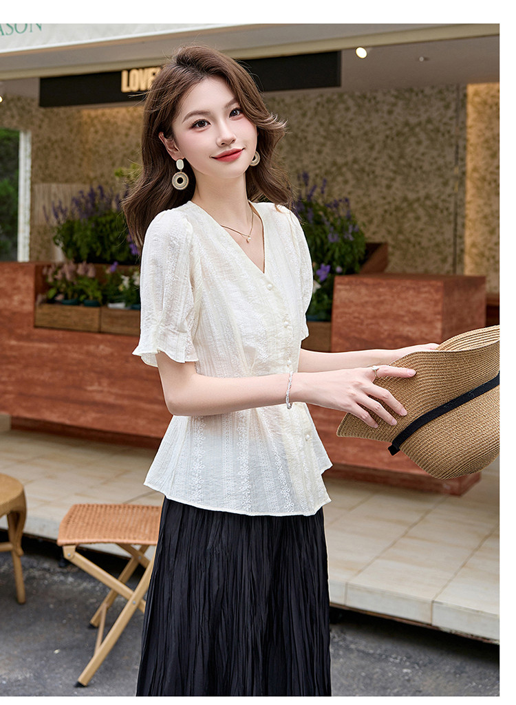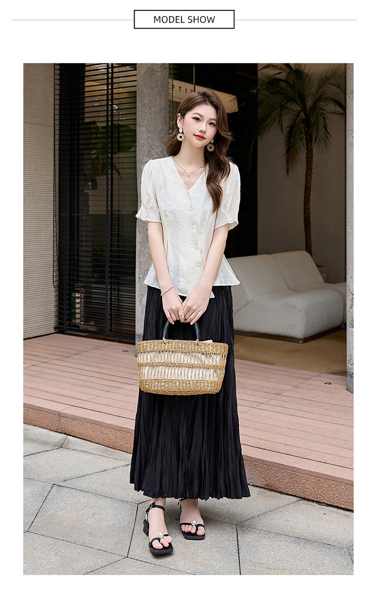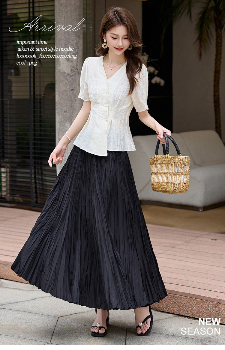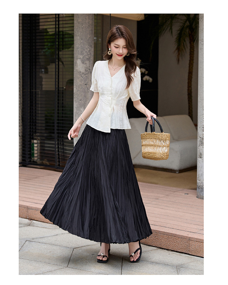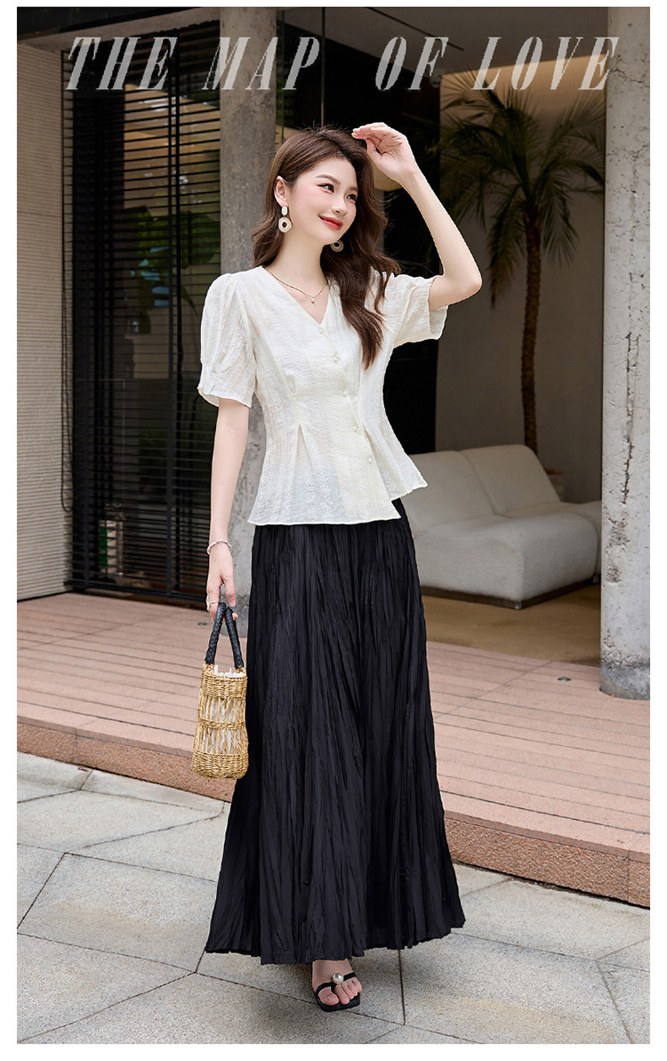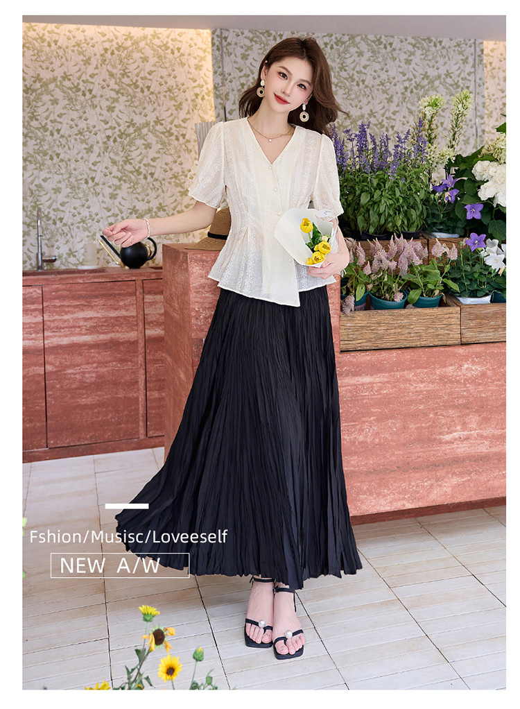 女神范V领衬衫+百褶群两件套 HR-HBLJRA1146-6