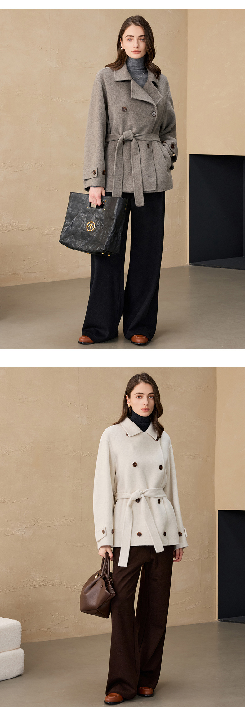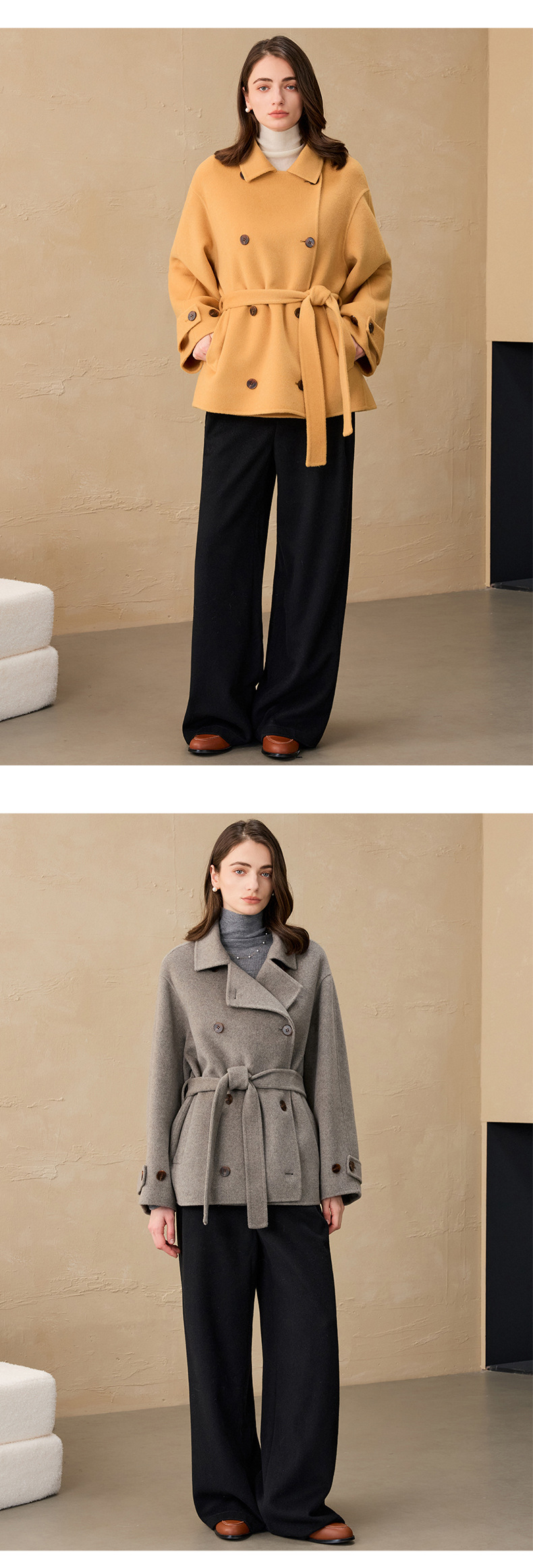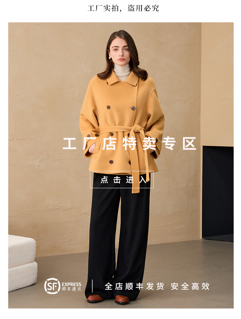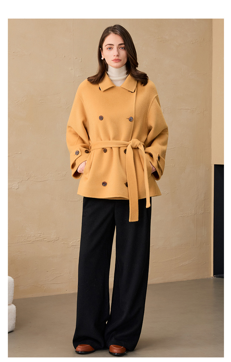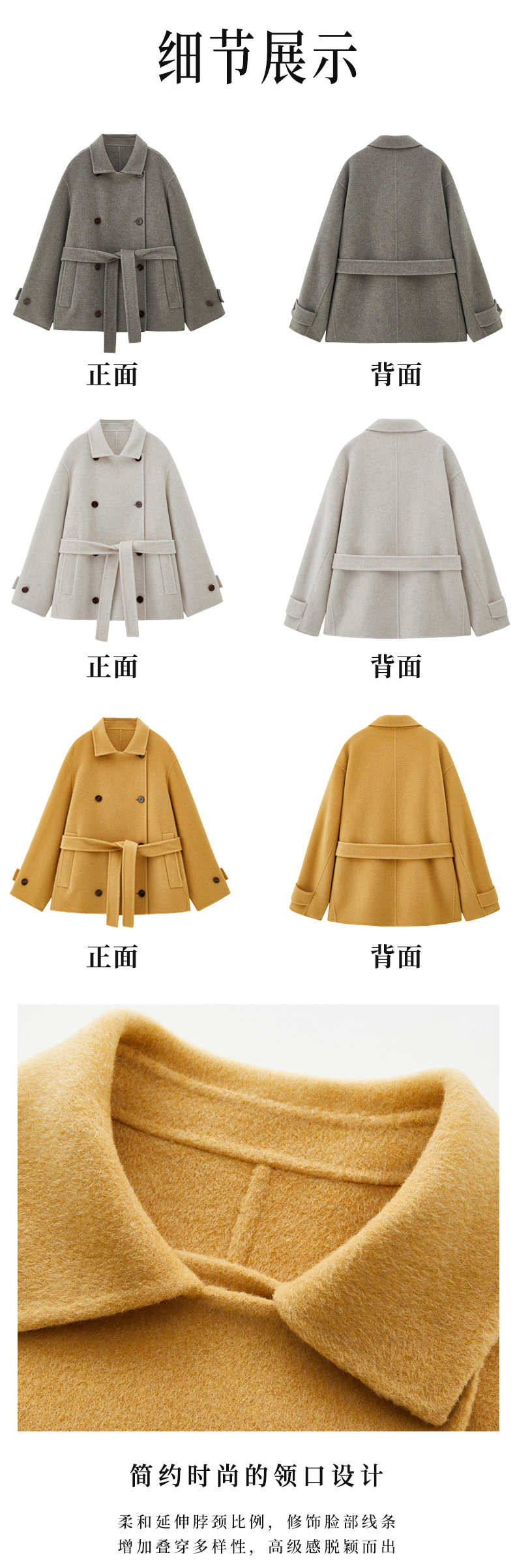 GZ241062 2025秋冬韩系小个子大衣休闲毛呢大衣短款外套羊毛双面毛呢大衣女