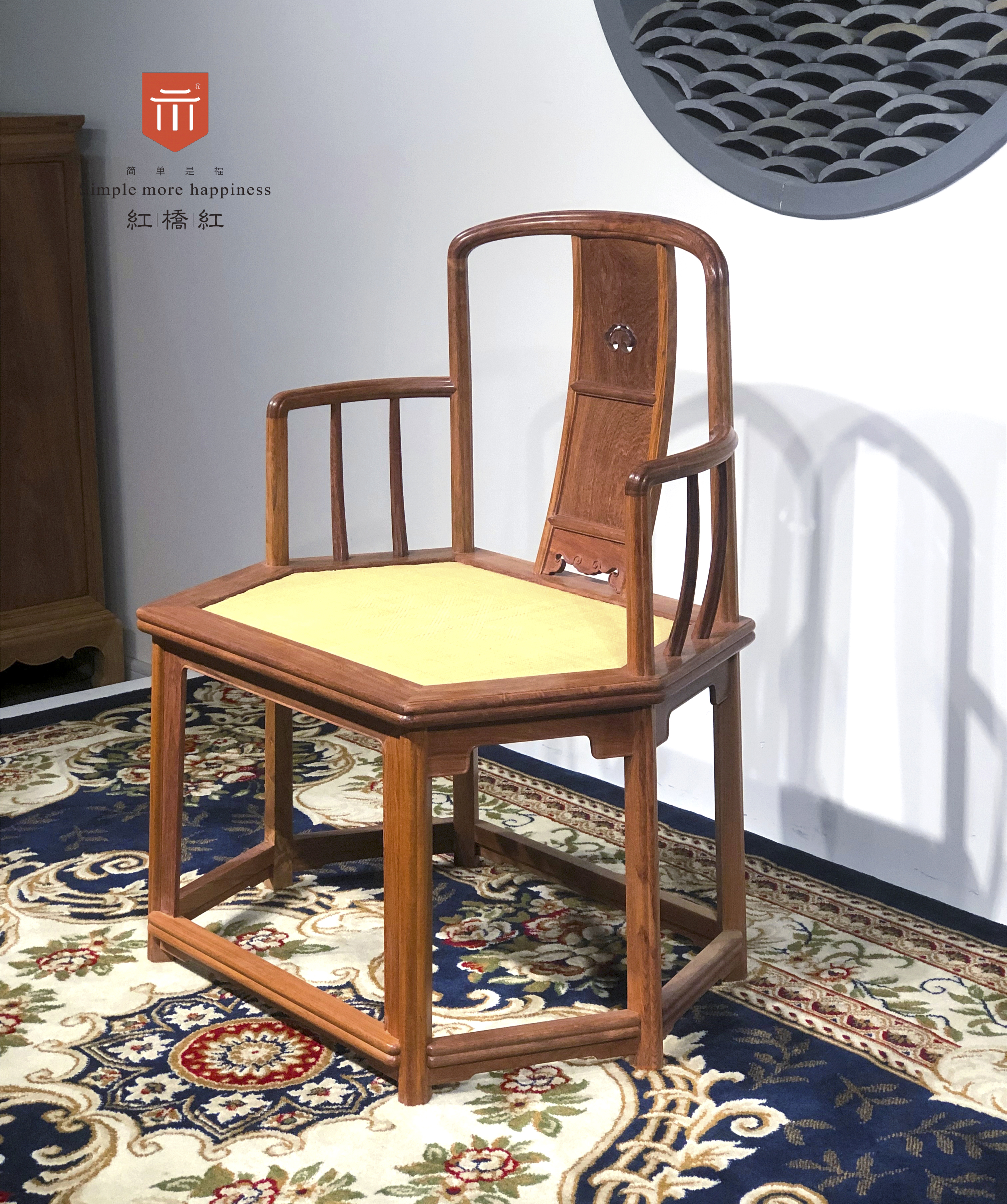此椅子六方形,六足,是官帽椅中的变体,原型现藏于故宫博物院,王世襄集《明式家具研究》一书中也有记载。