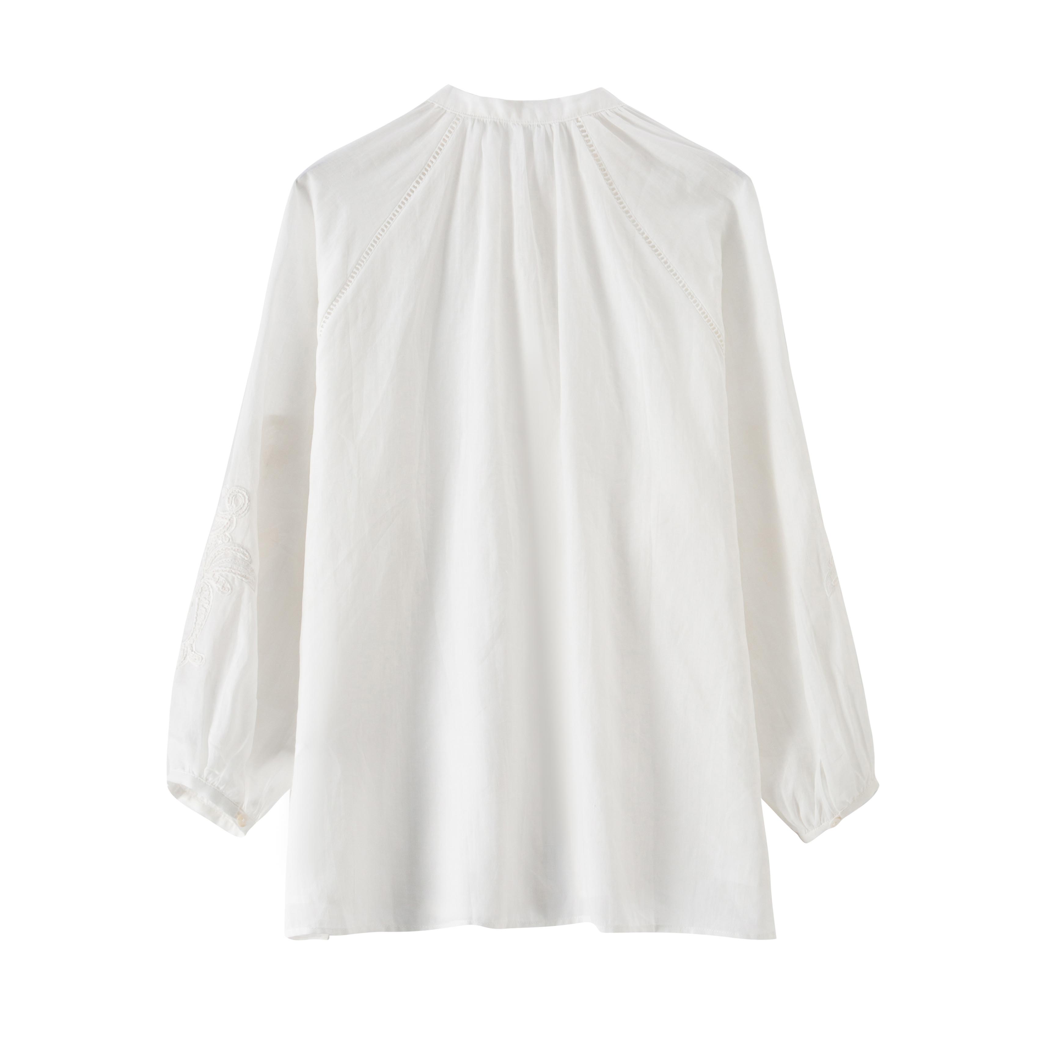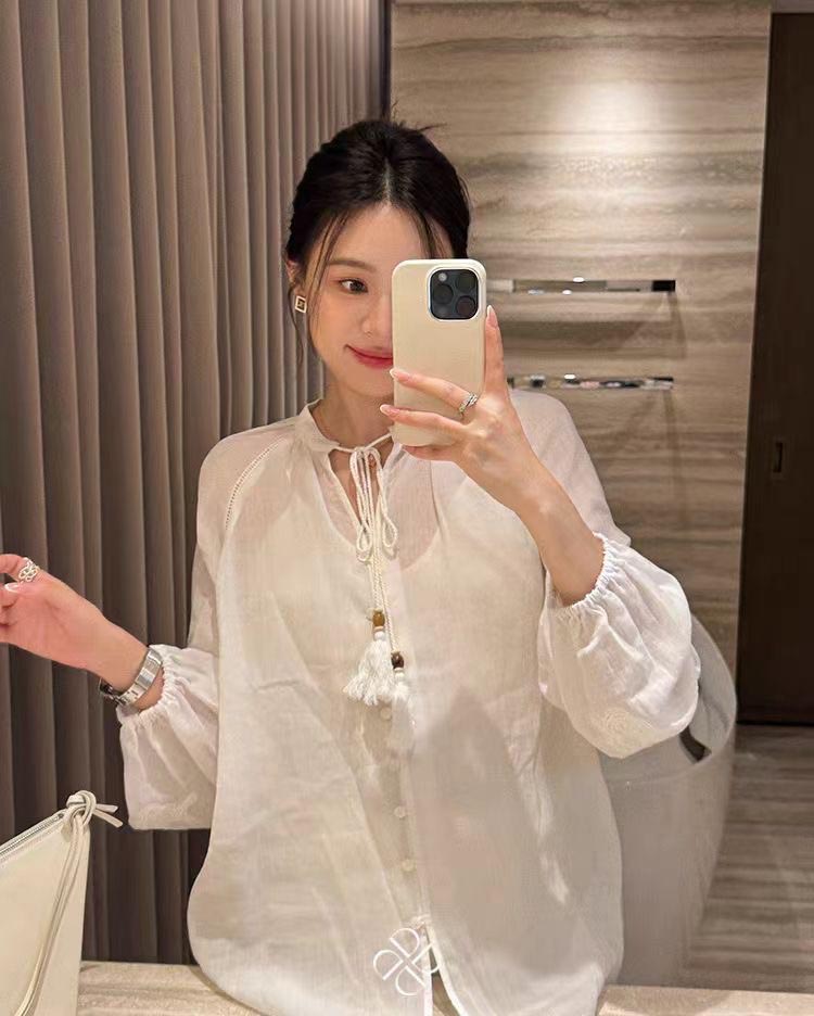 「K」洛诗琳01855法式系带衬衫2025夏季苎麻刺绣灯笼袖衬衫10344