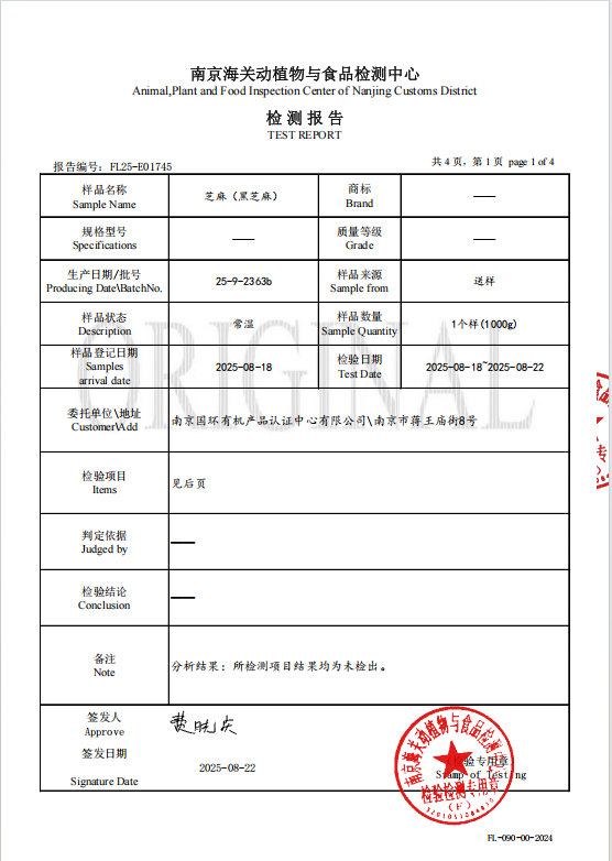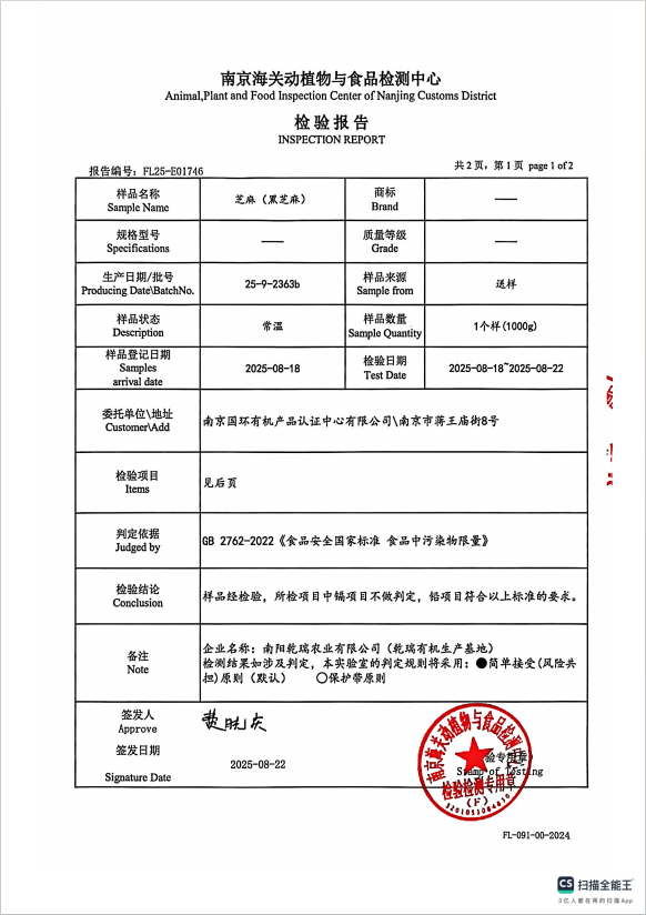 黑芝麻农残及重金属报告