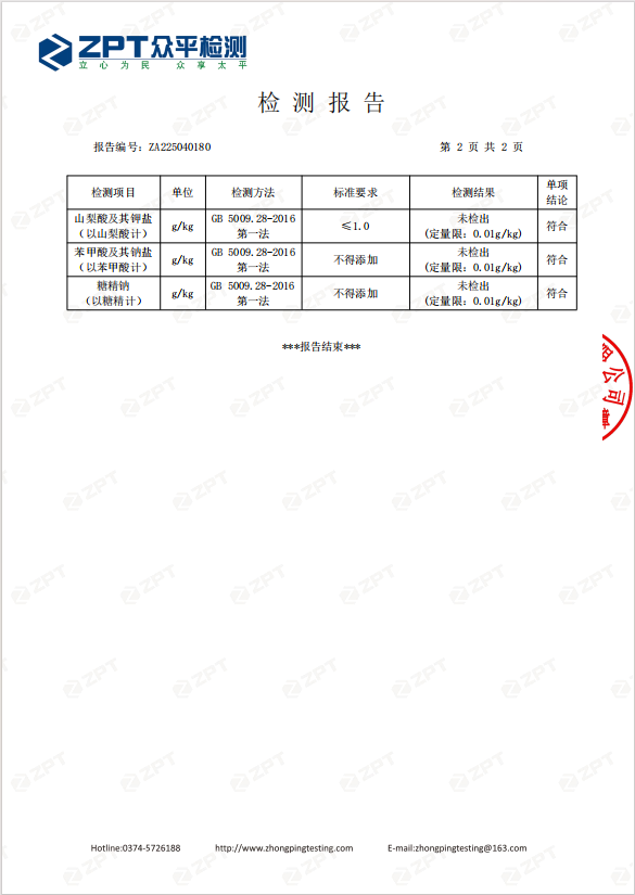 茶酥饼也做了山梨酸钾、苯甲酸钠等检测,均符合要求。