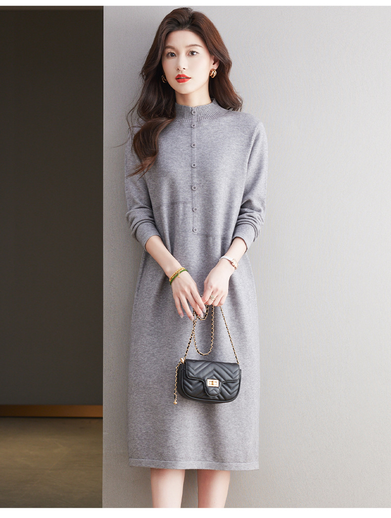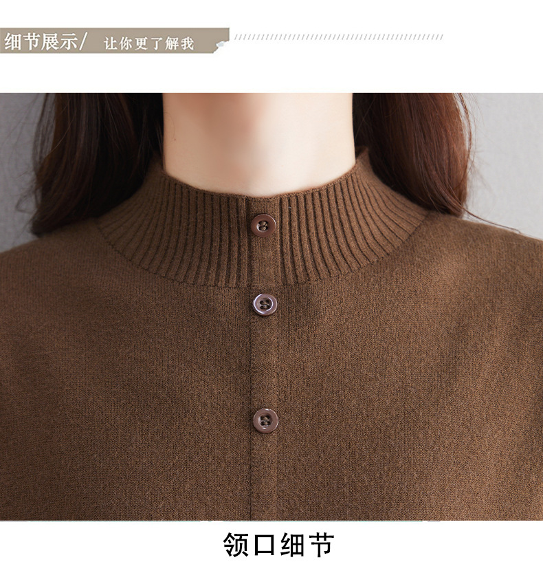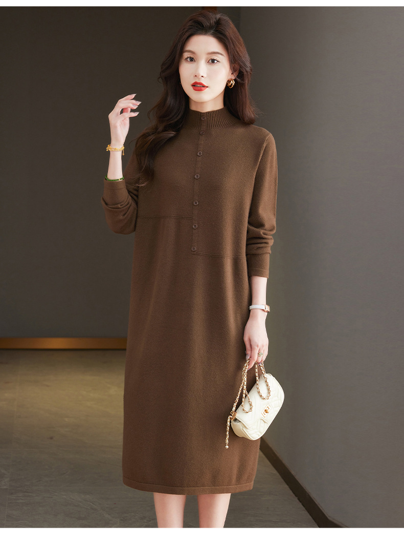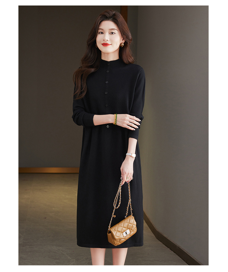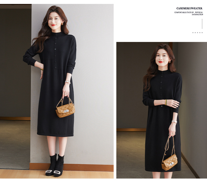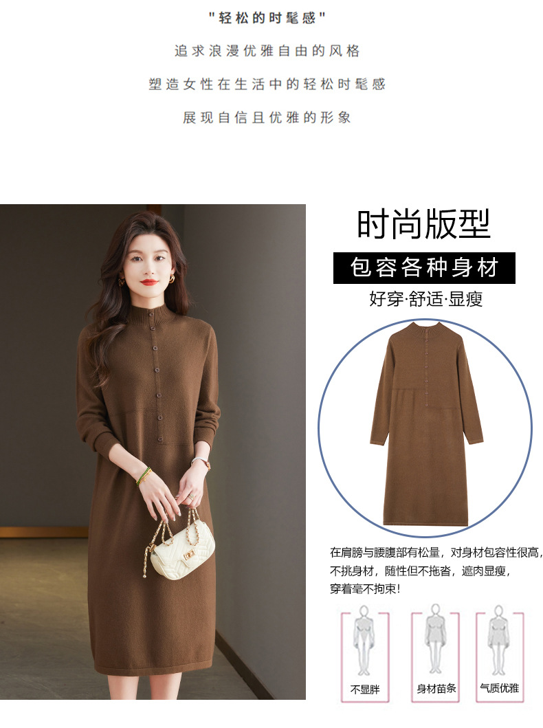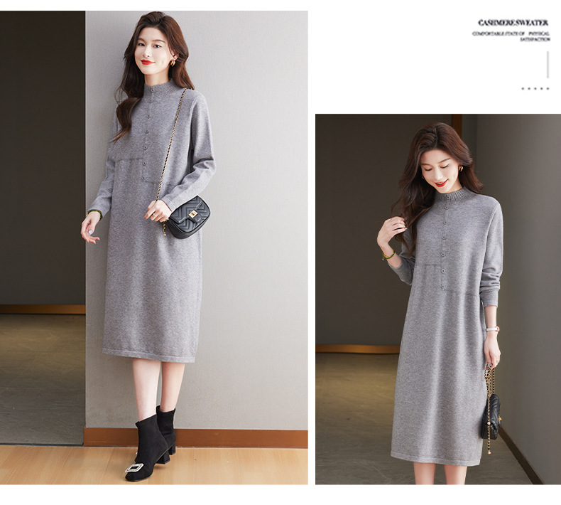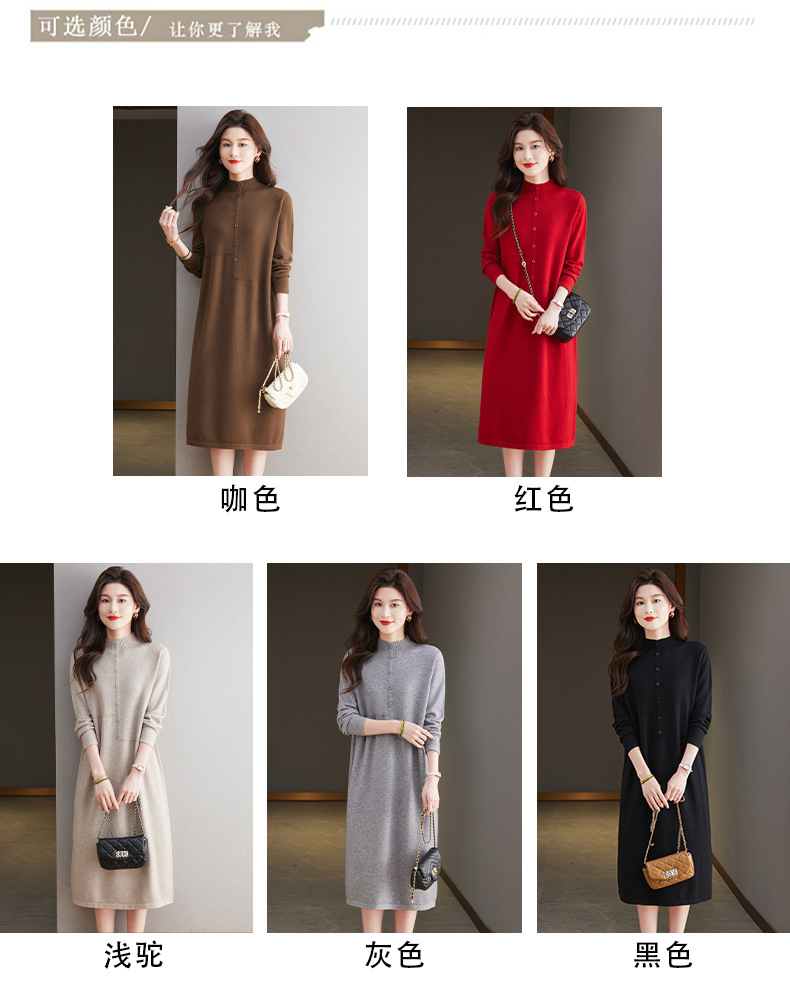 CC-13-6375韩版半高领套头针织衫毛衣女过膝开叉打底衫中长款宽松大码连衣裙
