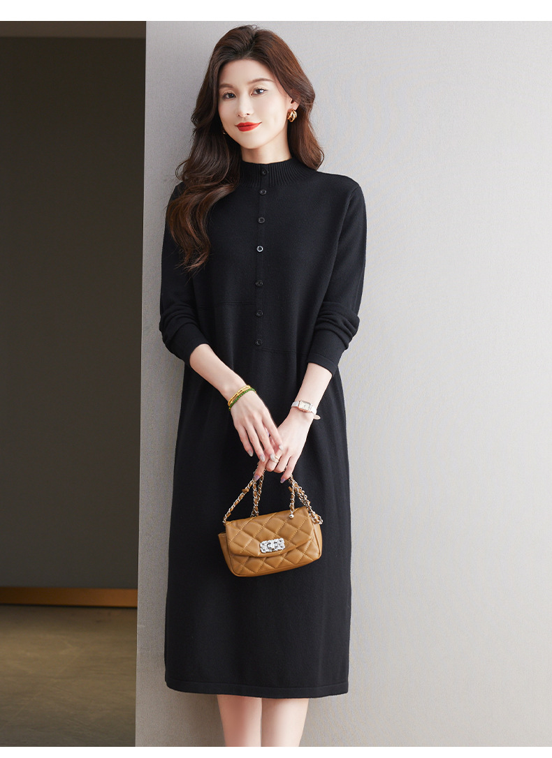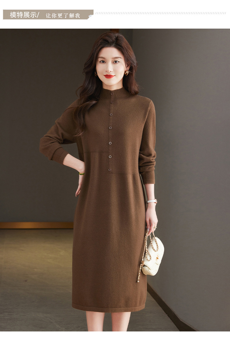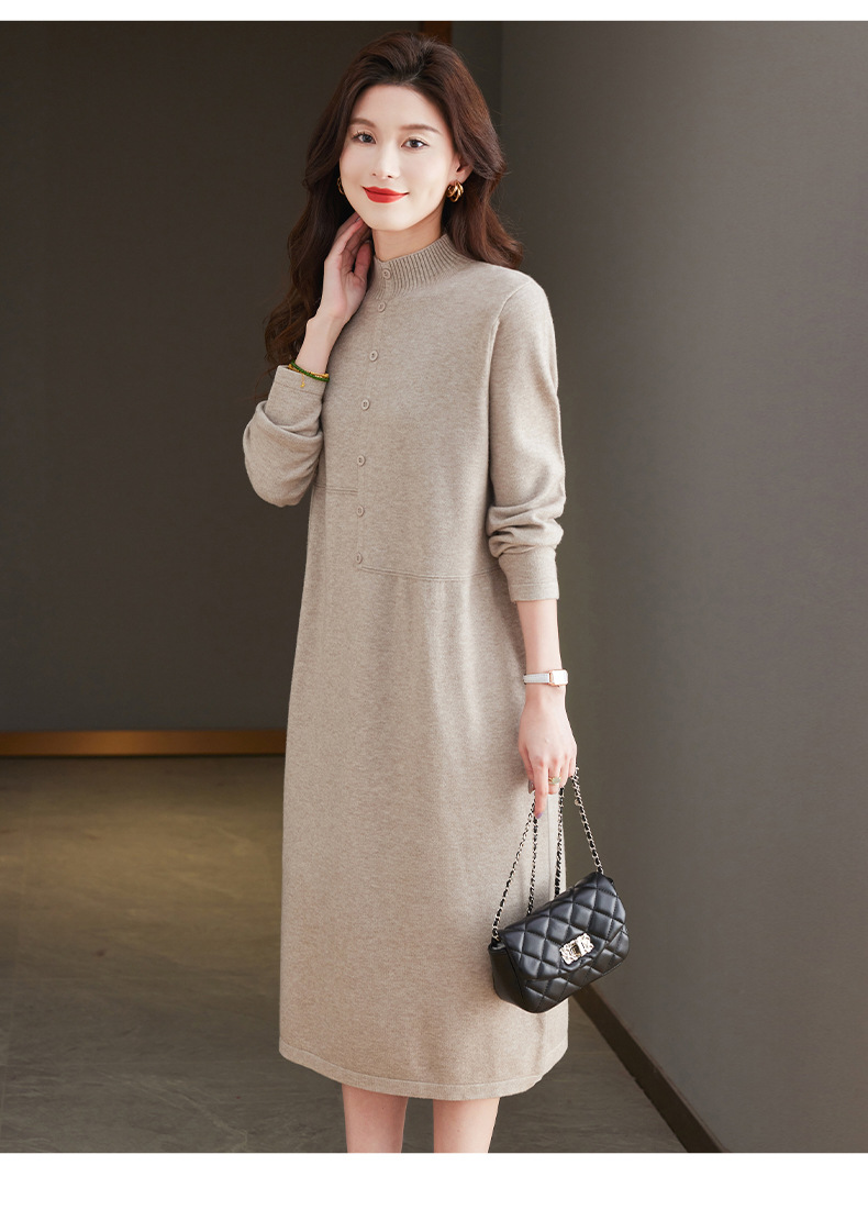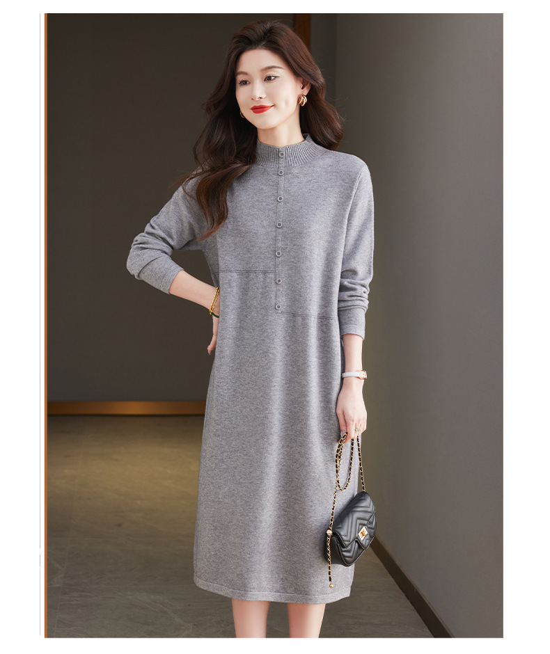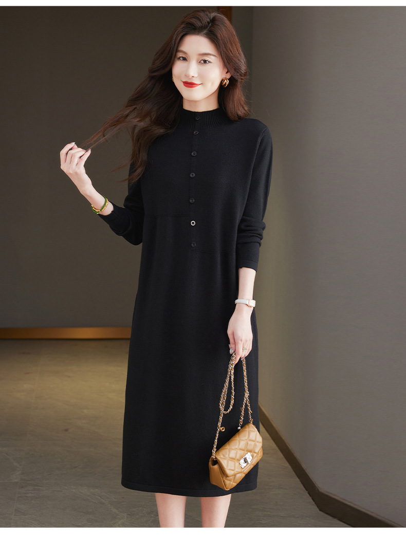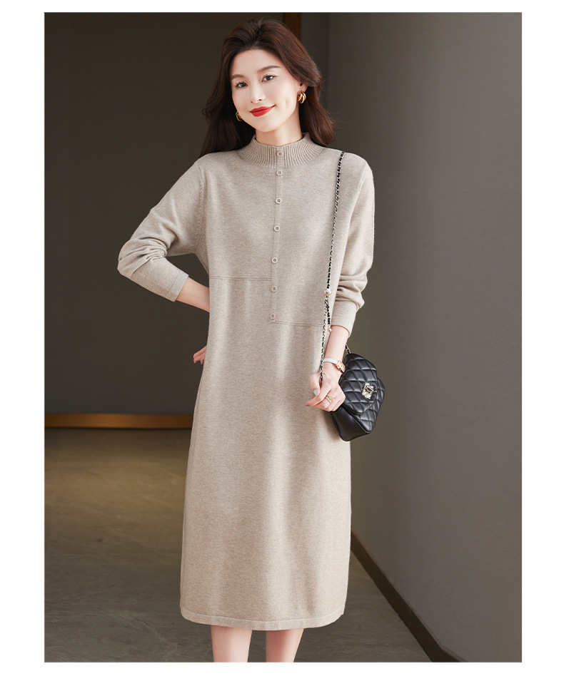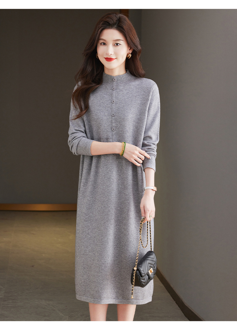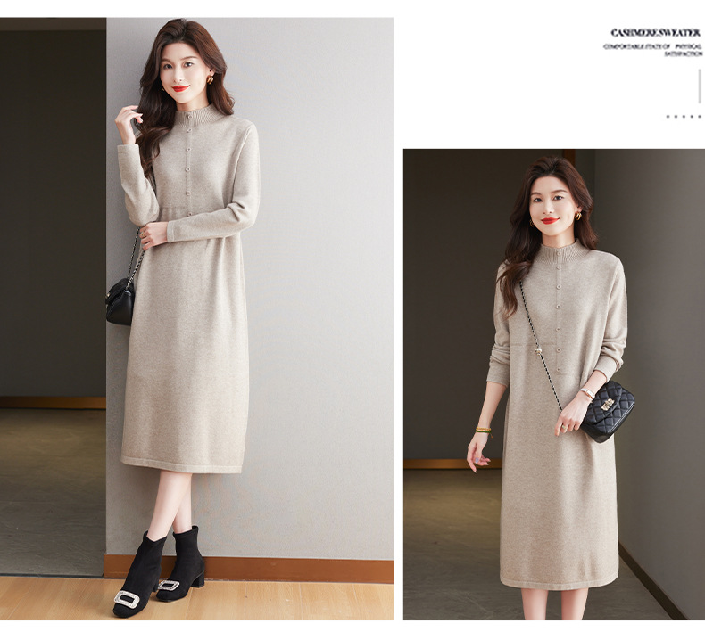 CC-13-6375韩版半高领套头针织衫毛衣女过膝开叉打底衫中长款宽松大码连衣裙